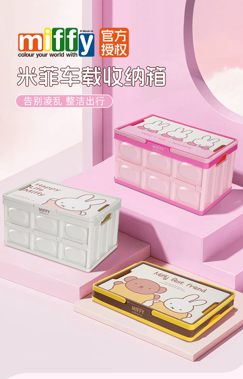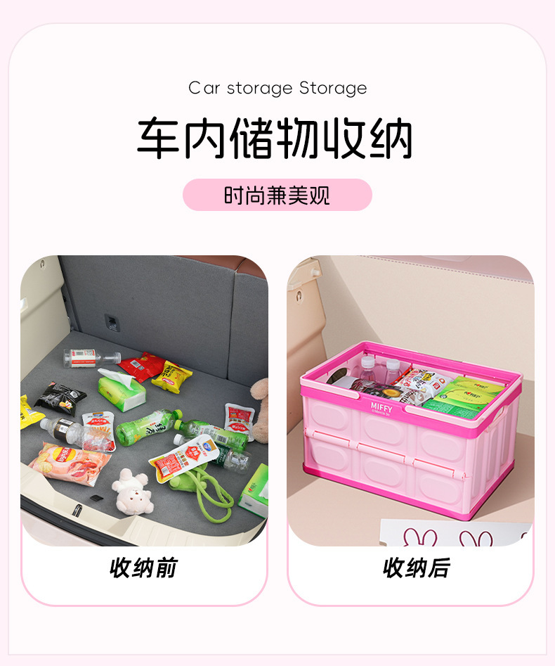 跨境贴标2025年爆款正版汽车后备箱收纳箱卡通可爱户外置物箱可折