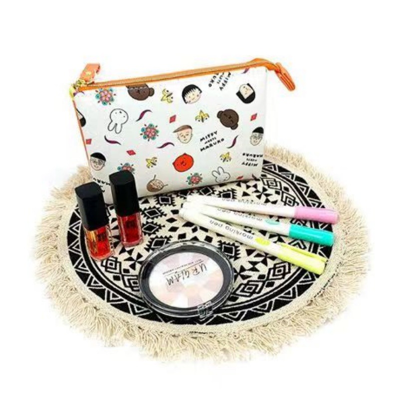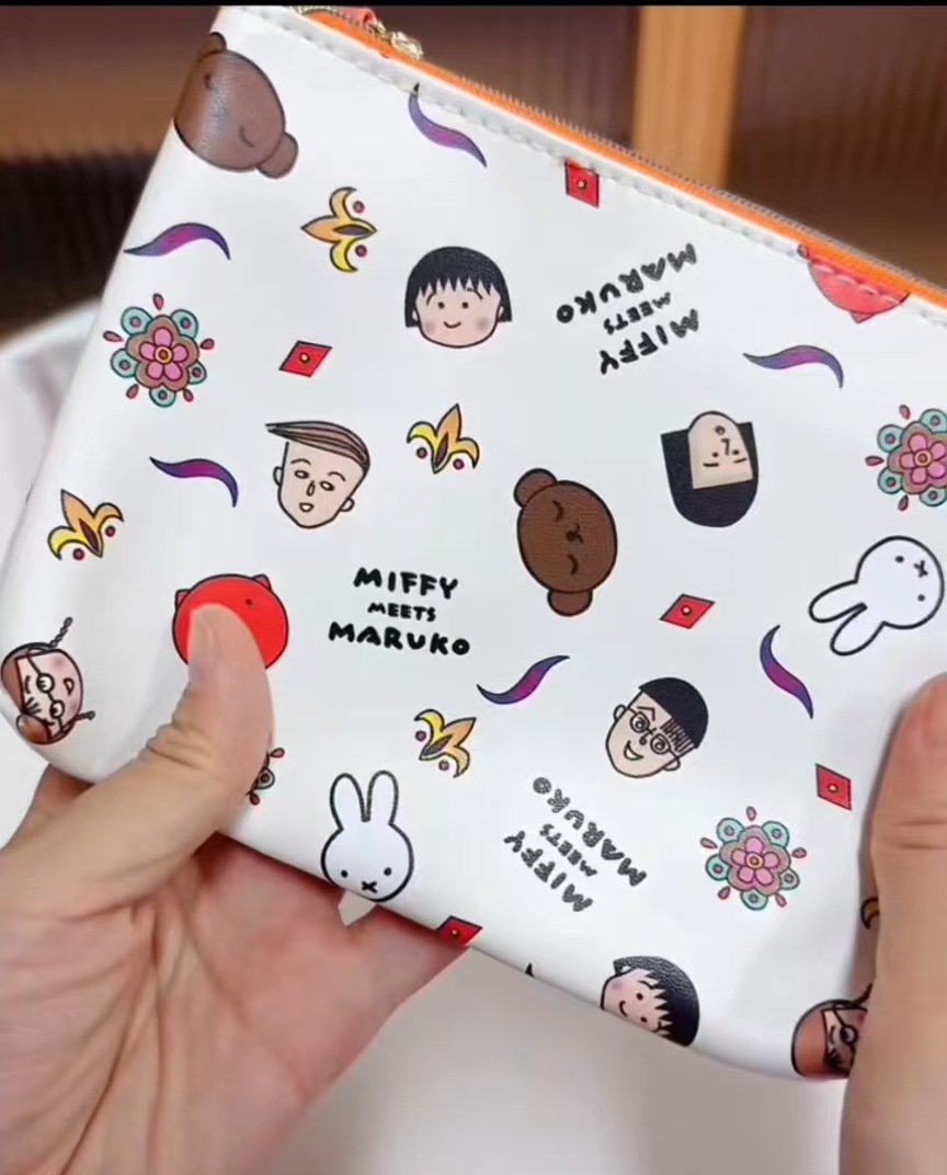 Barang Tersedia, Bakso Cherry Miffy Lucu, Tas Penyimpanan Ritsleting Lapisan Ganda Kapasitas Besar, Tas Kosmetik, Kotak Kacamata