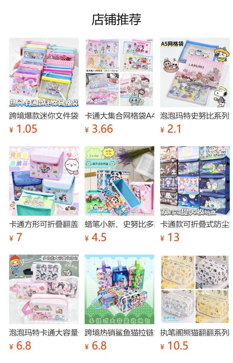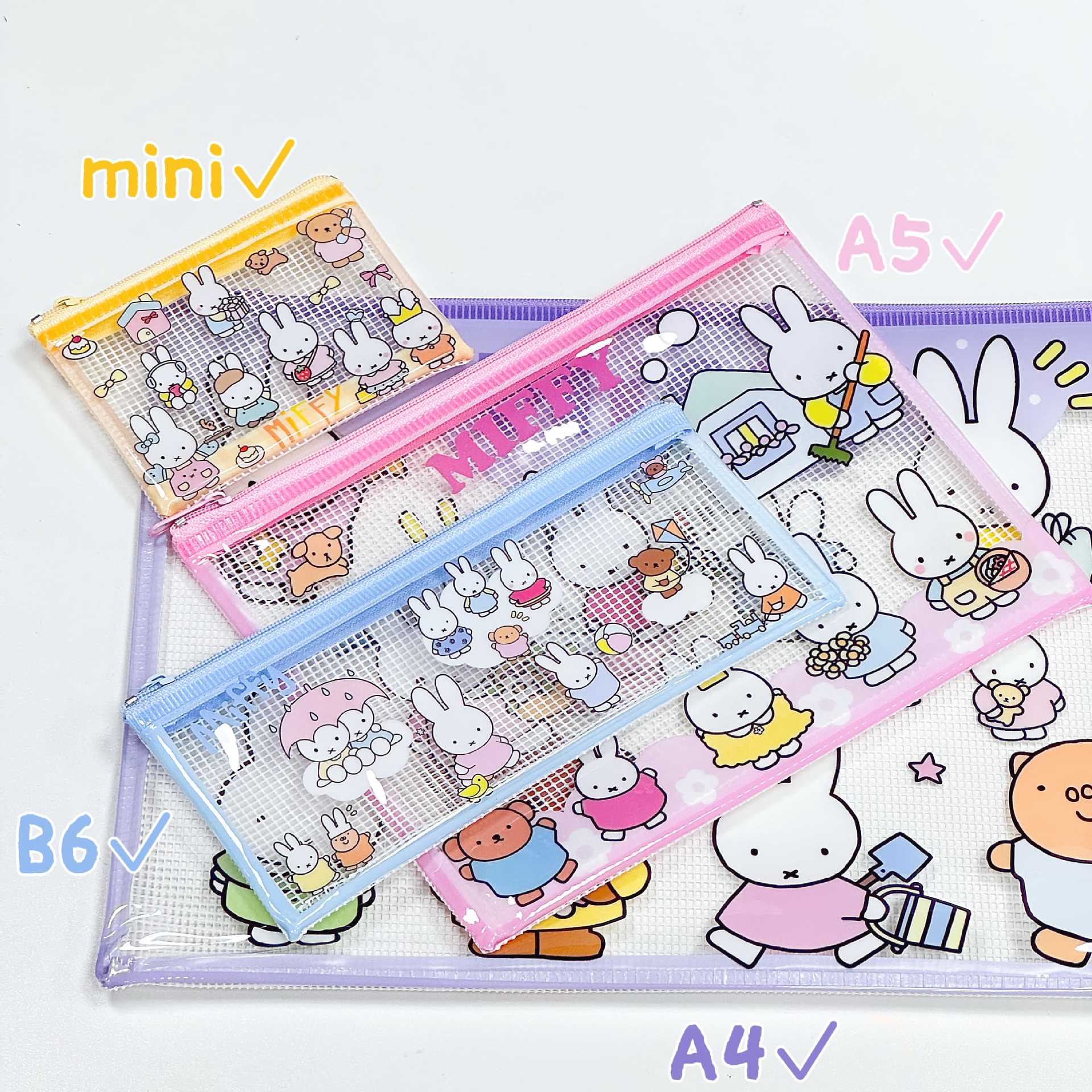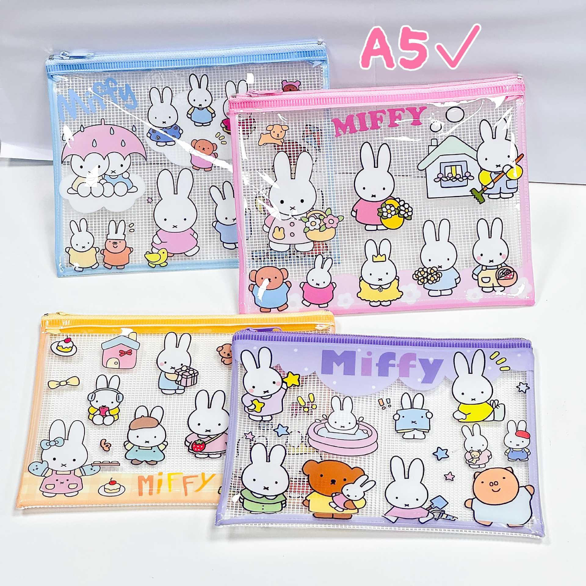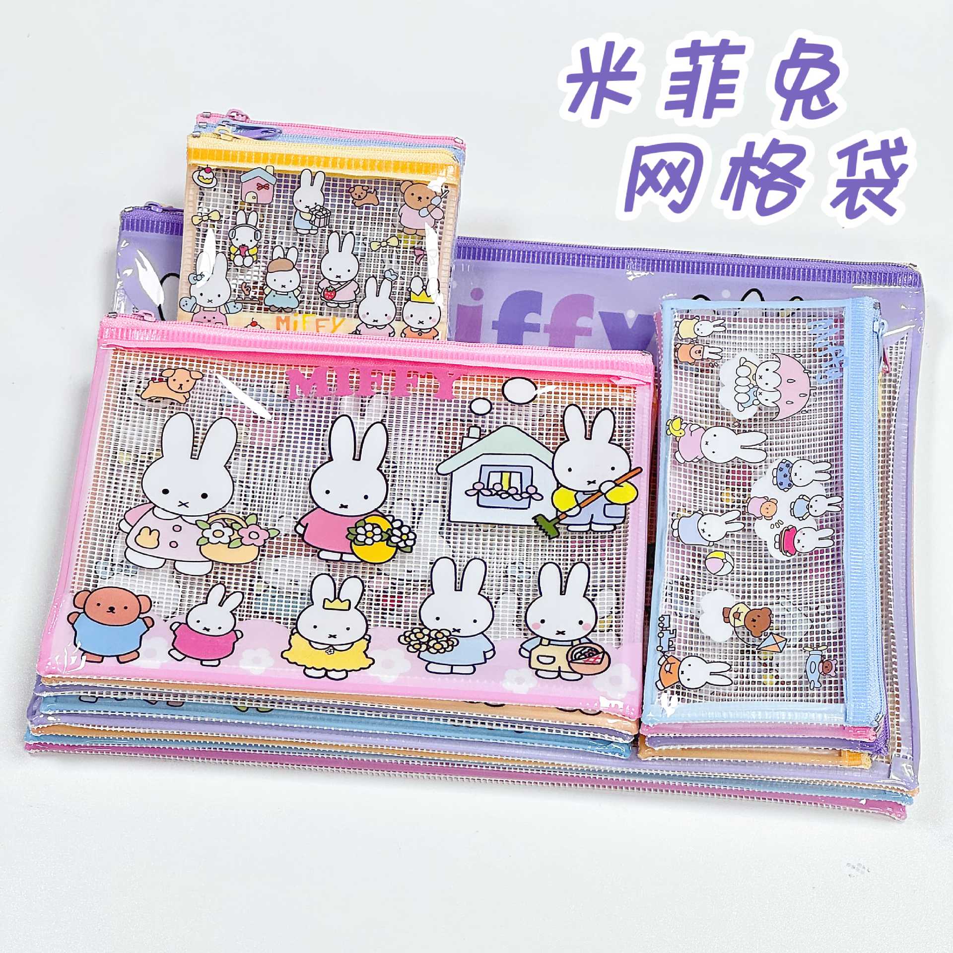 米菲兔系列网格袋高颜值动漫文件袋学生方便收纳校园卡零钱包
