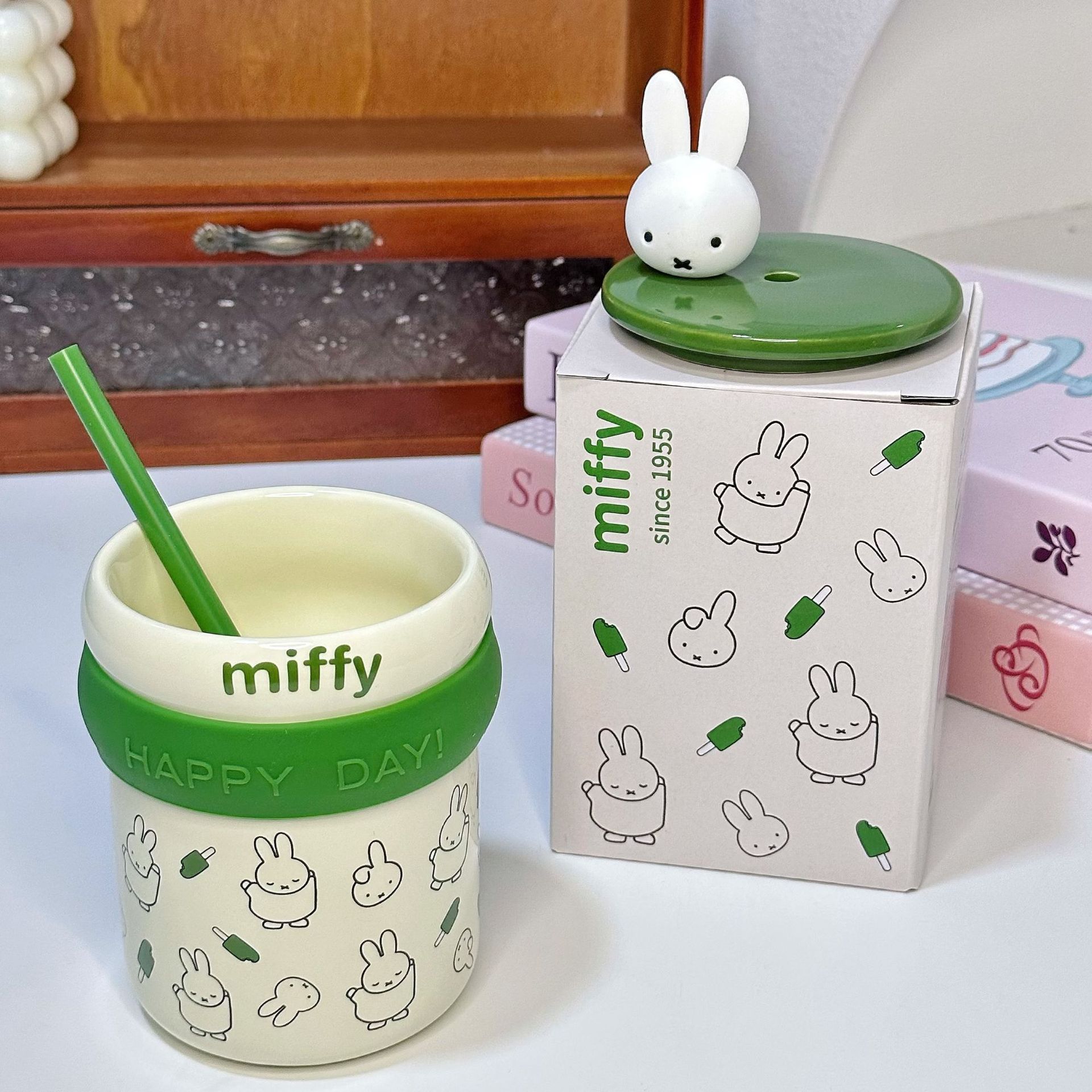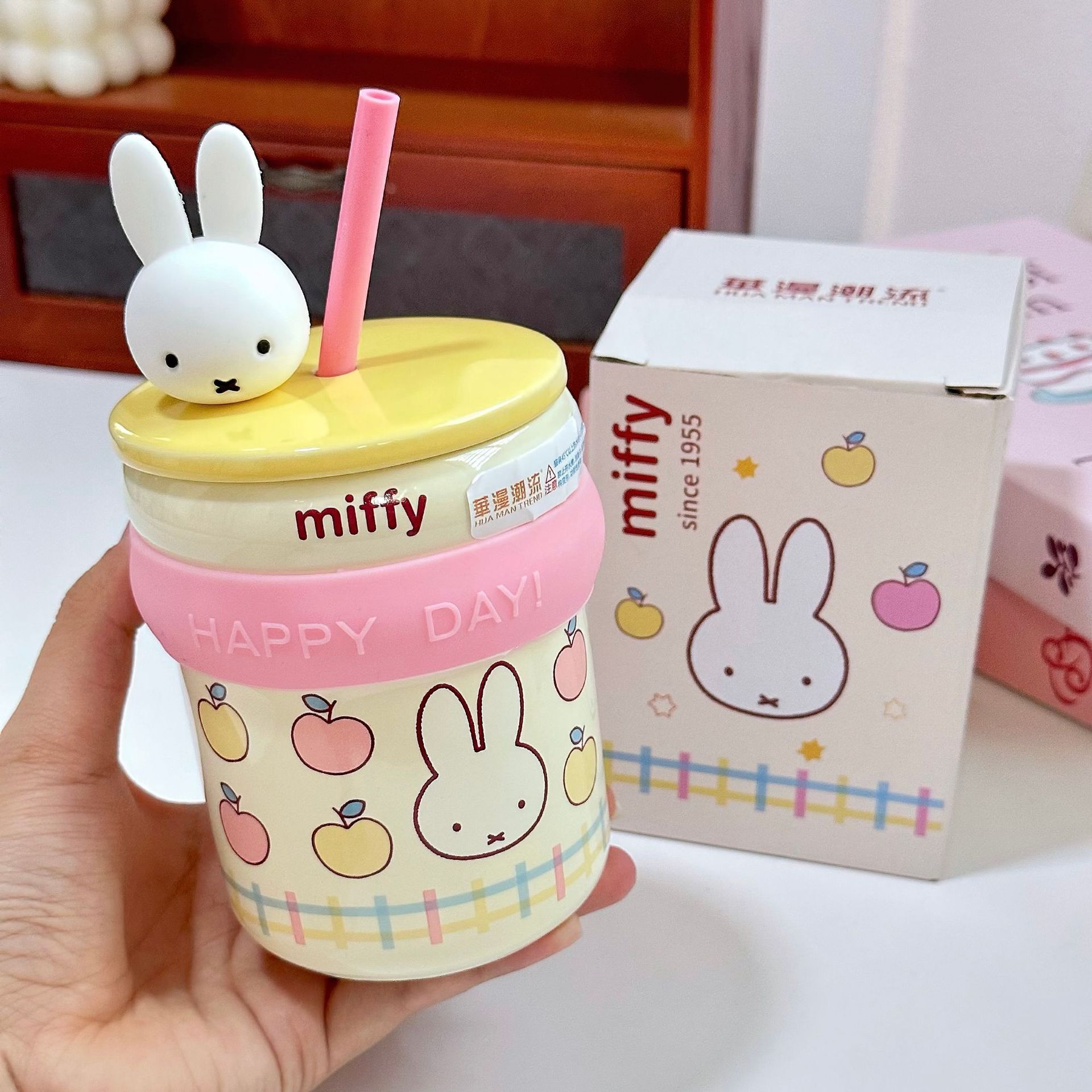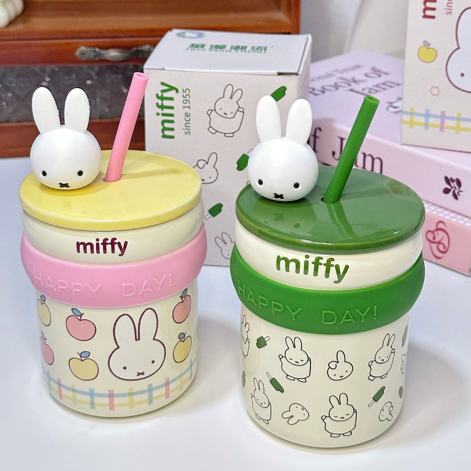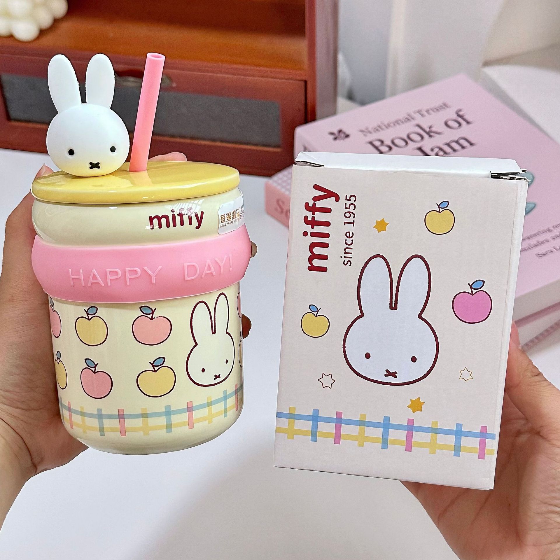 Miffy Kelinci Asli Gelas Air Resmi Pasangan Lucu Cangkir Sedotan Keramik Nilai Tinggi Cangkir Kantor Kapasitas Besar
