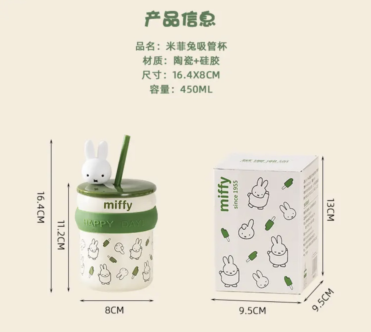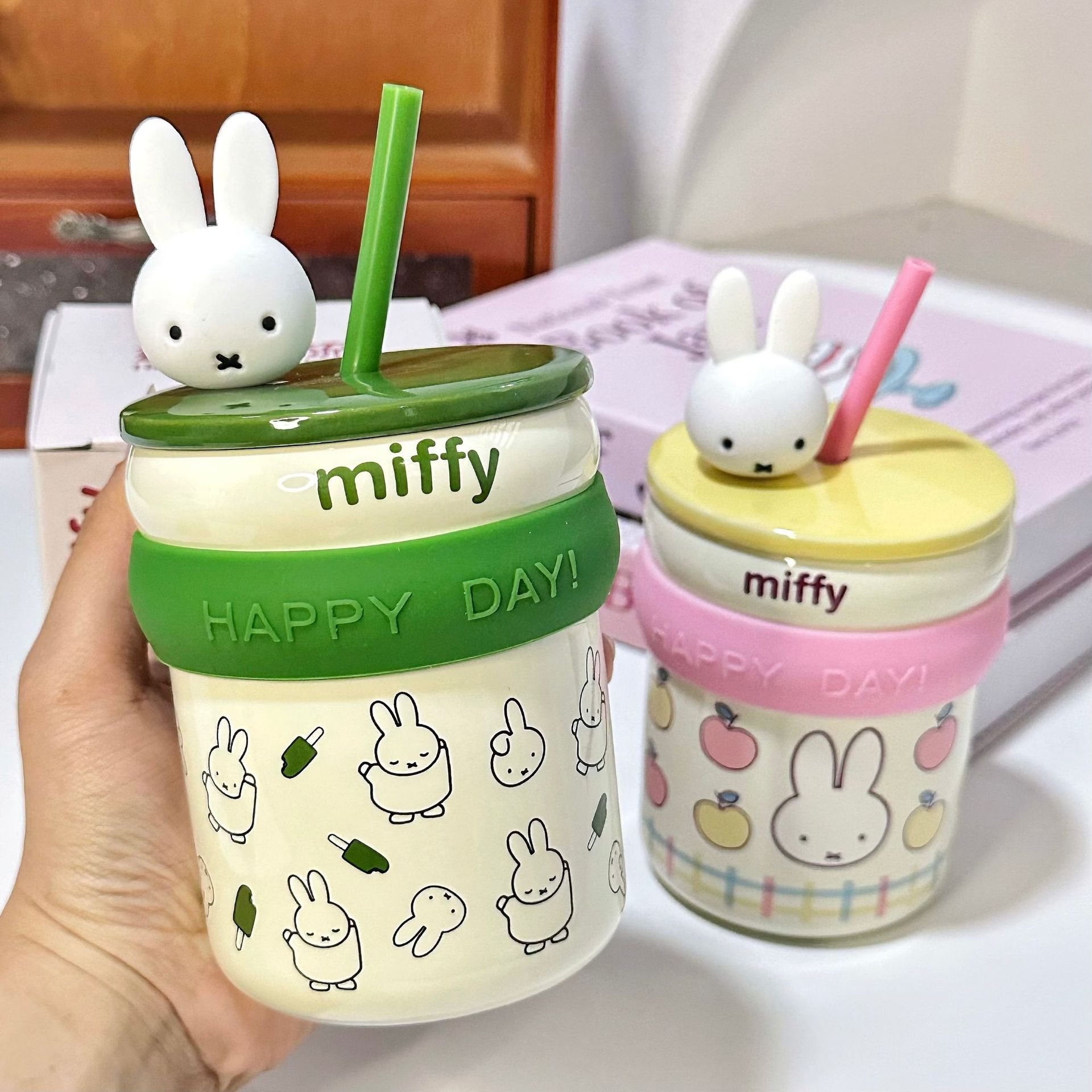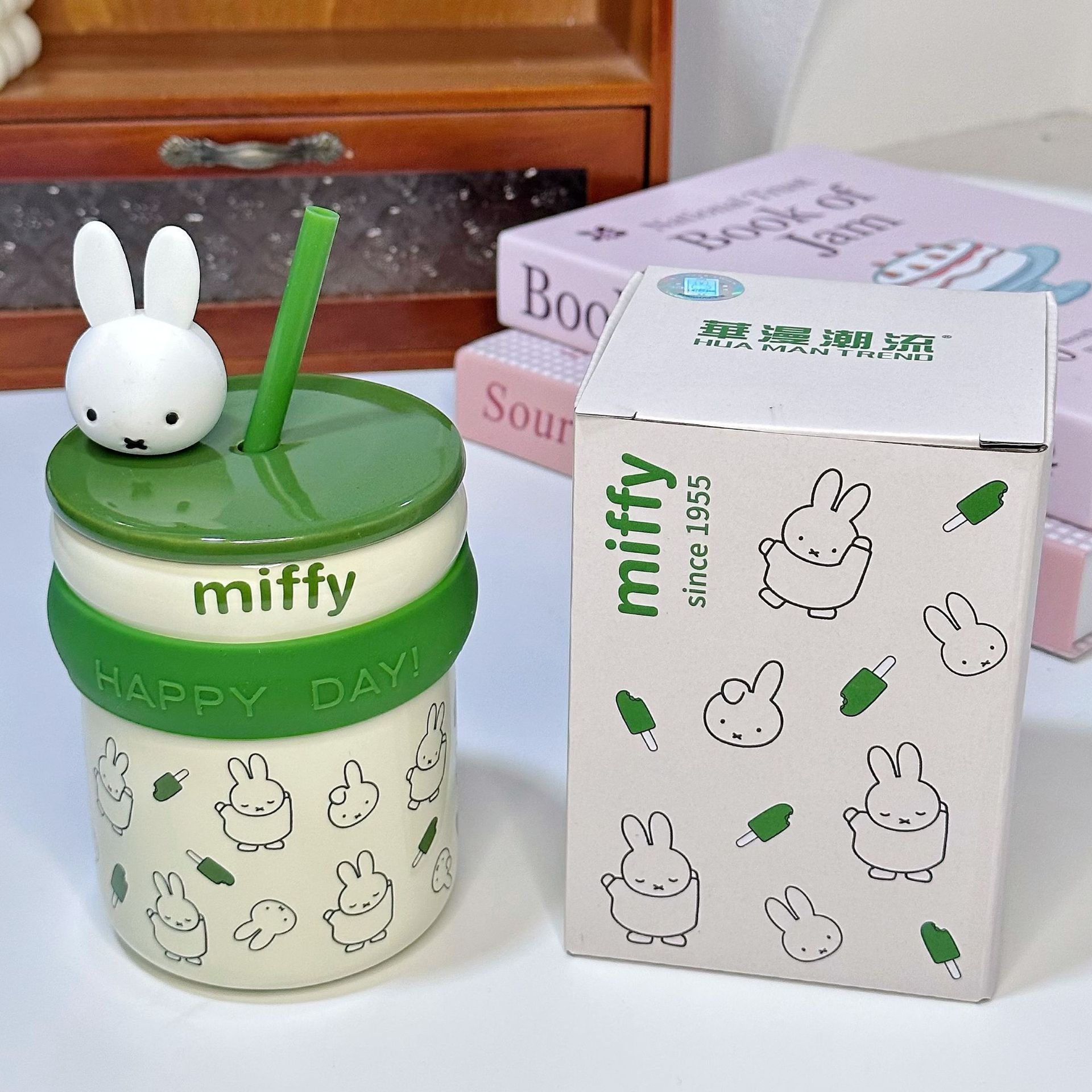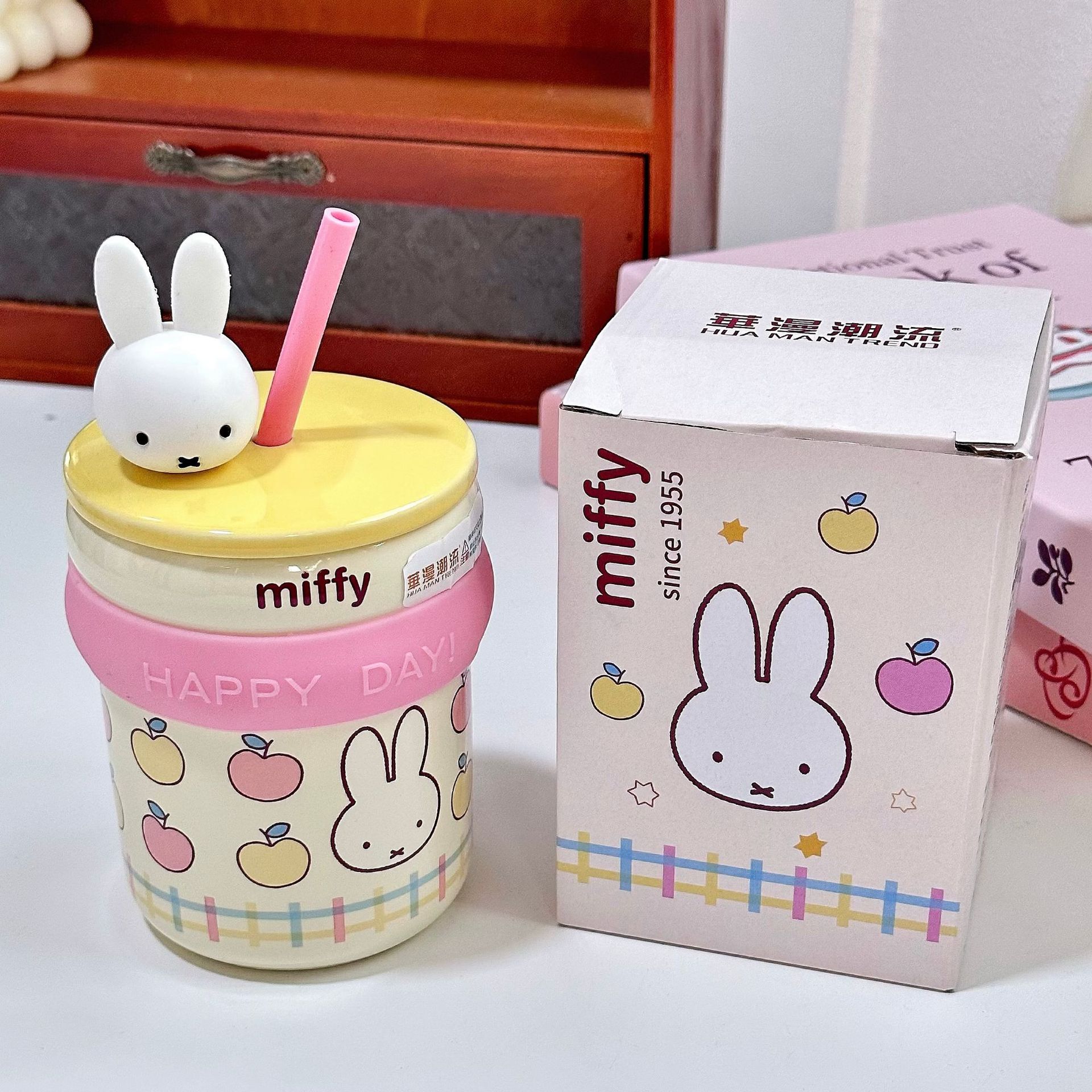 Miffy Kelinci Asli Gelas Air Resmi Pasangan Lucu Cangkir Sedotan Keramik Nilai Tinggi Cangkir Kantor Kapasitas Besar