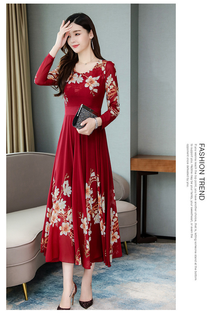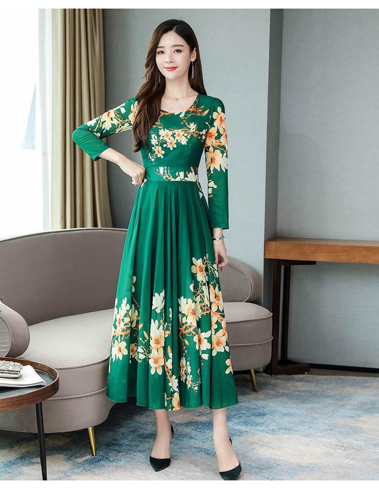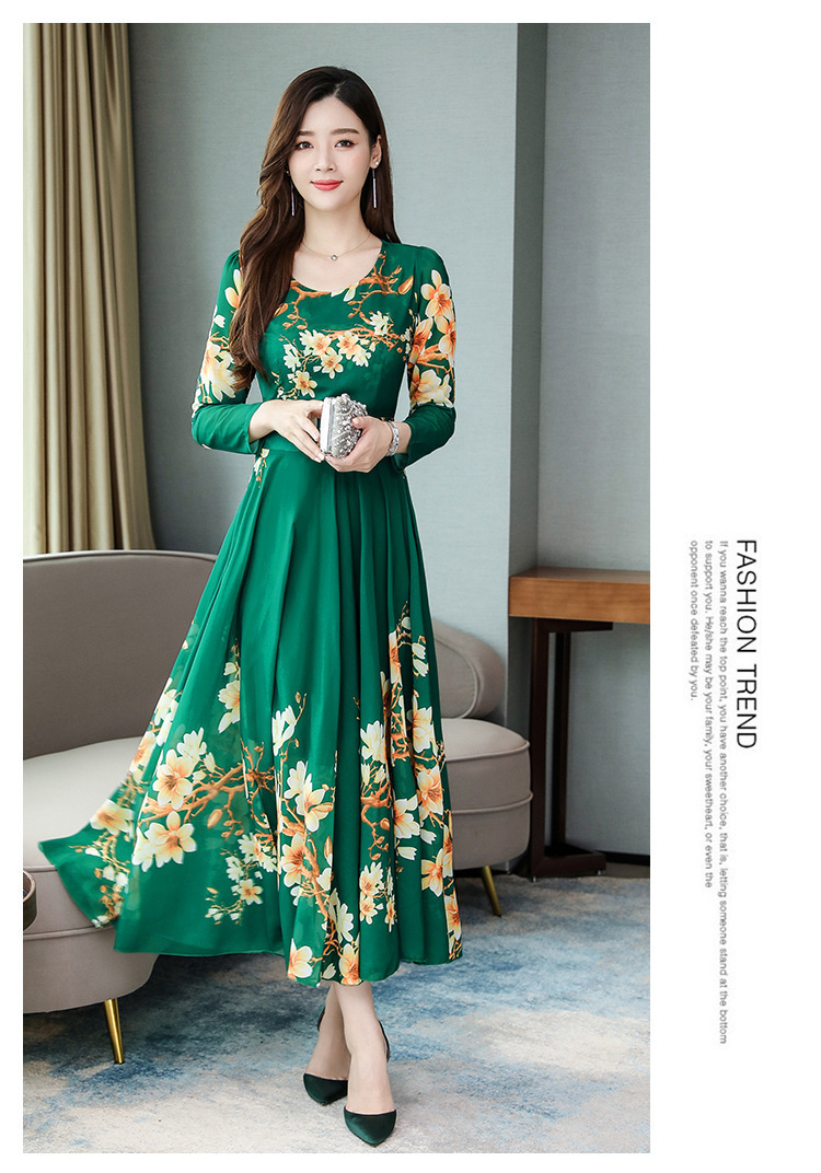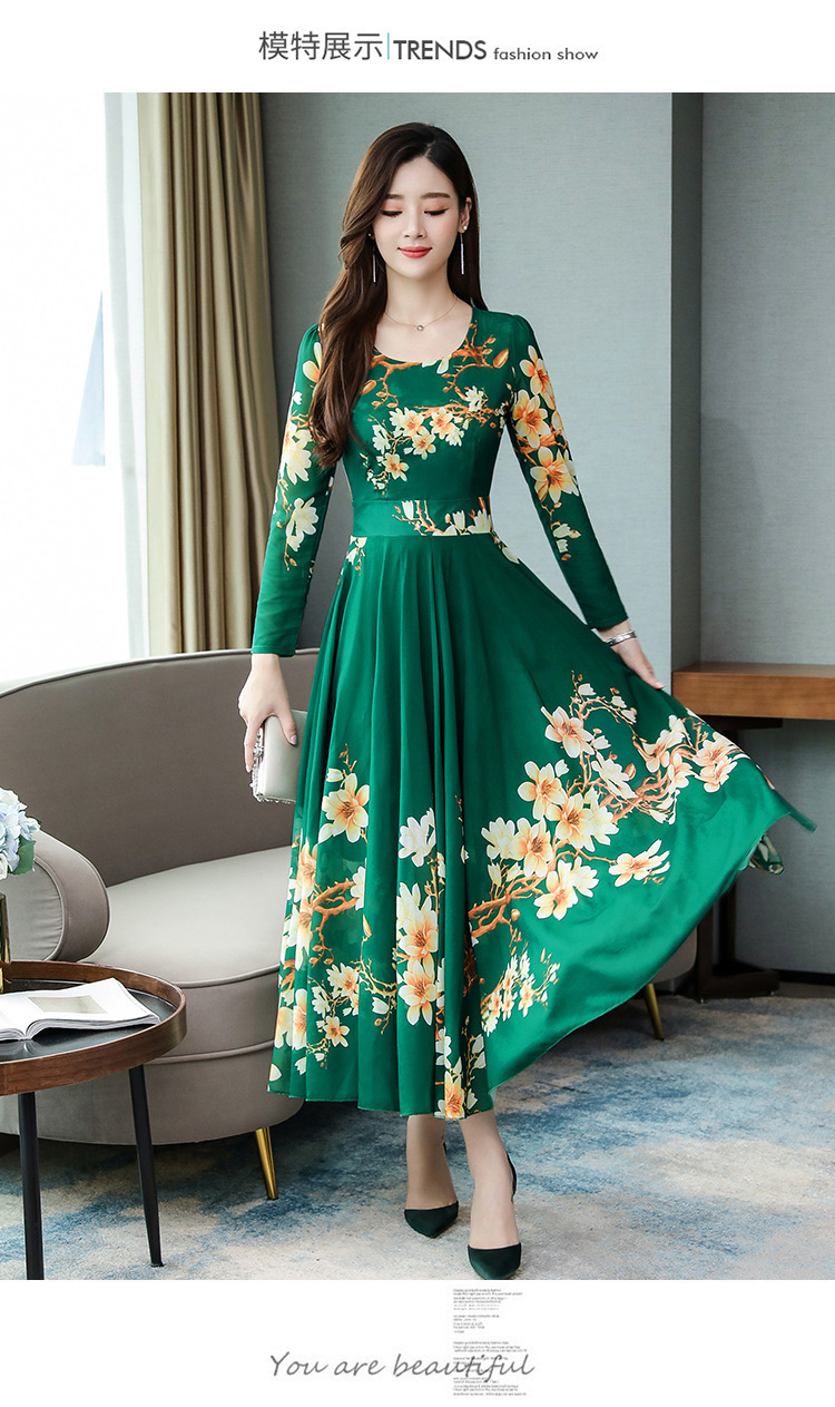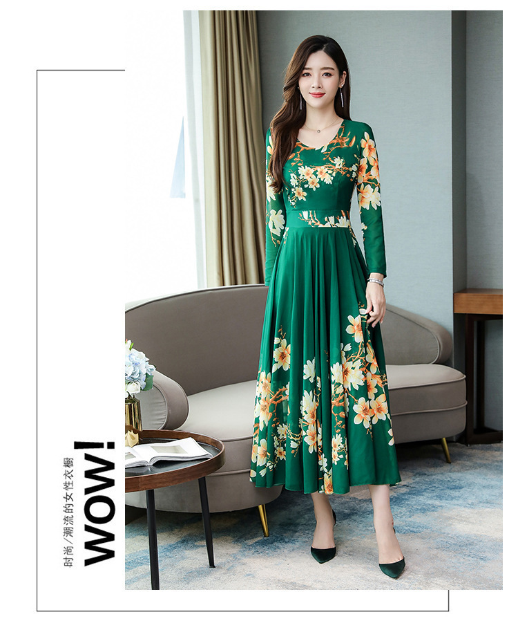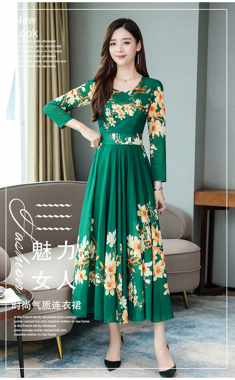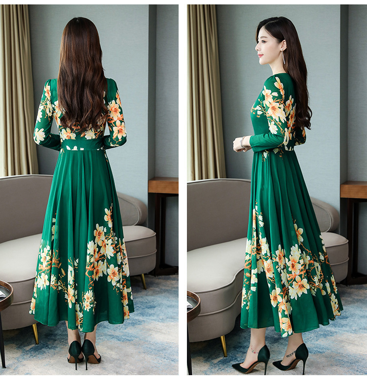 Pakaian Wanita Gaya Korea Model Baru 2025 Gaun Ukuran Besar Lengan Panjang Elegan Musim Semi Populer Rok Bunga Setengah Panjang Lintas Batas