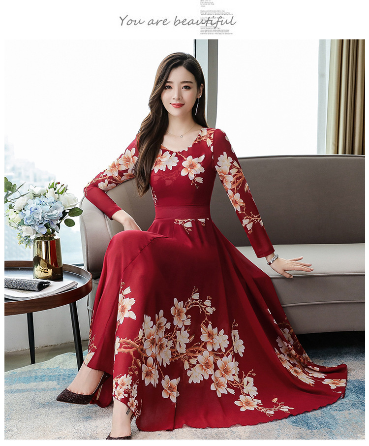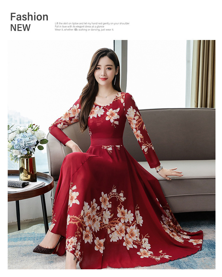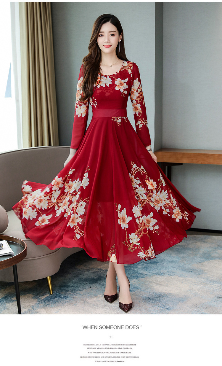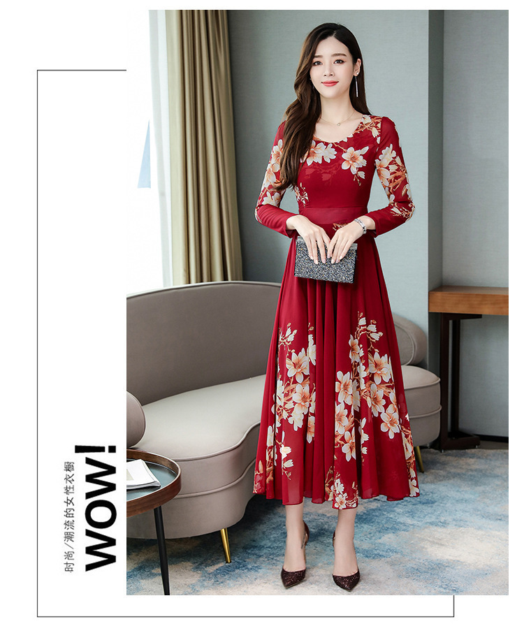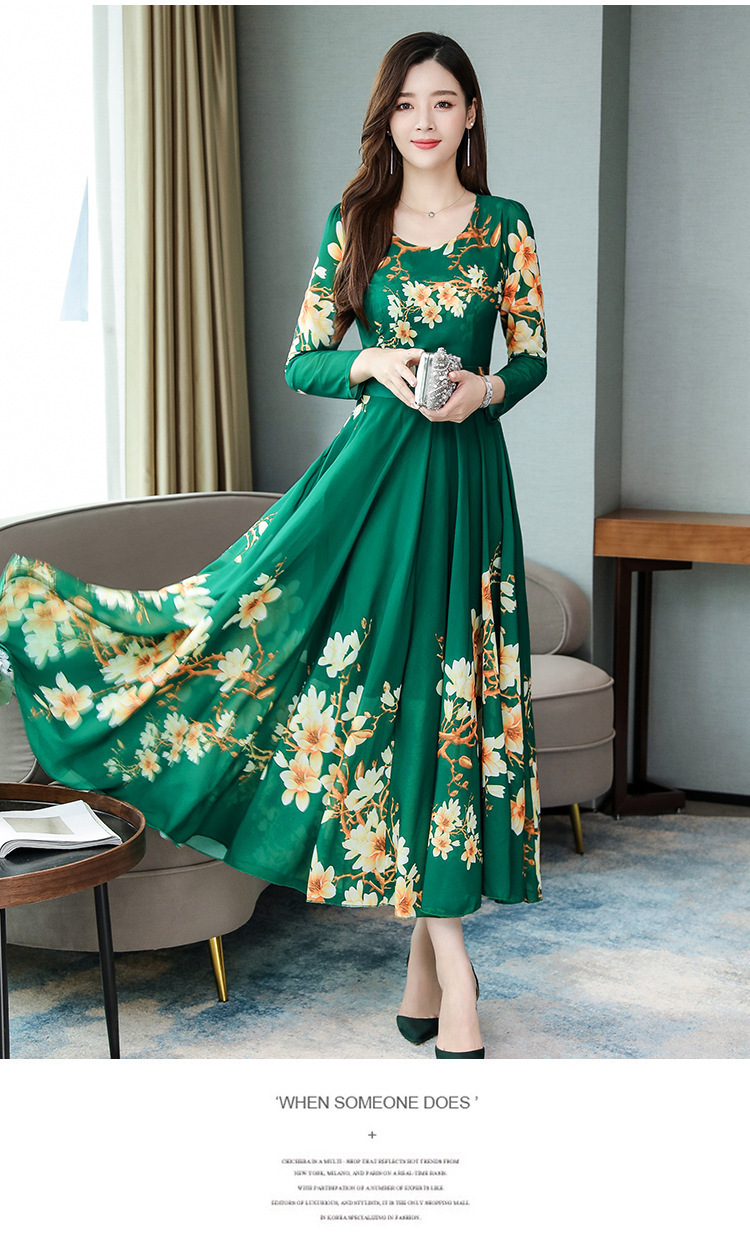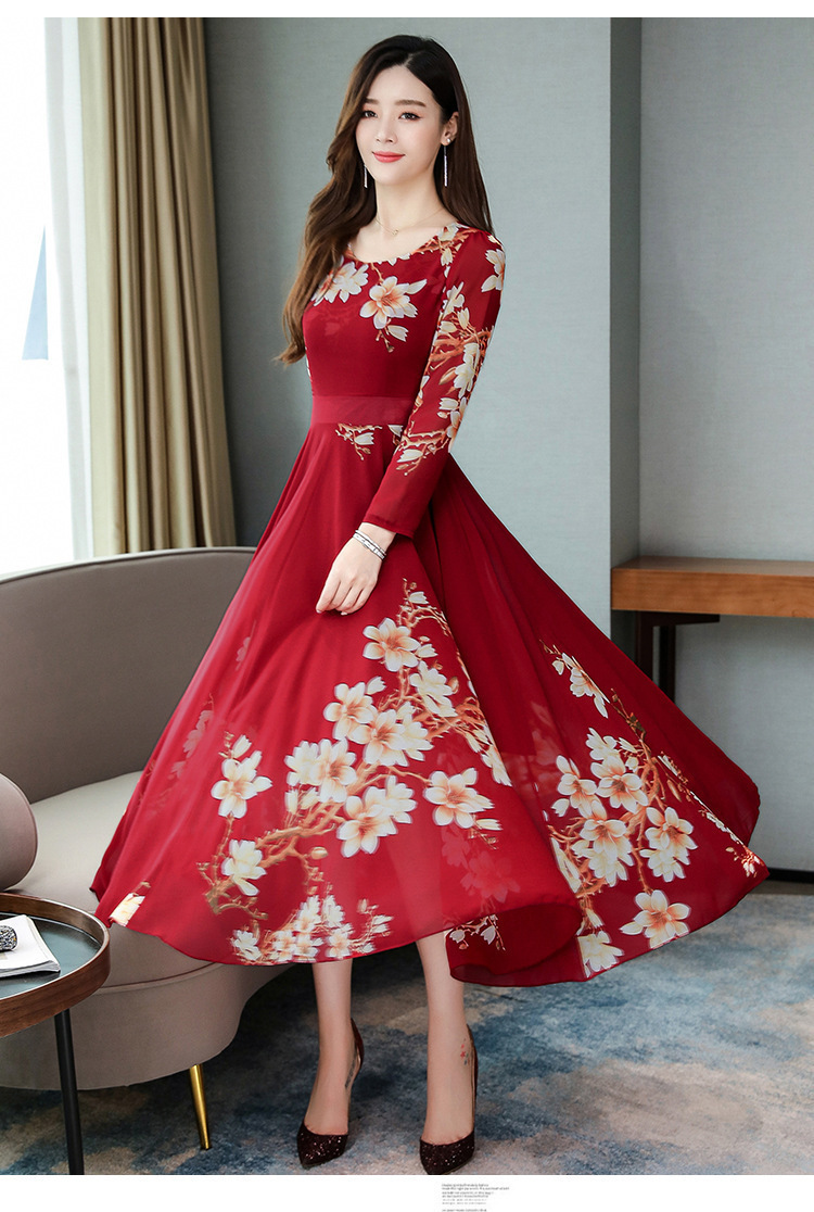 Pakaian Wanita Gaya Korea Model Baru 2025 Gaun Ukuran Besar Lengan Panjang Elegan Musim Semi Populer Rok Bunga Setengah Panjang Lintas Batas