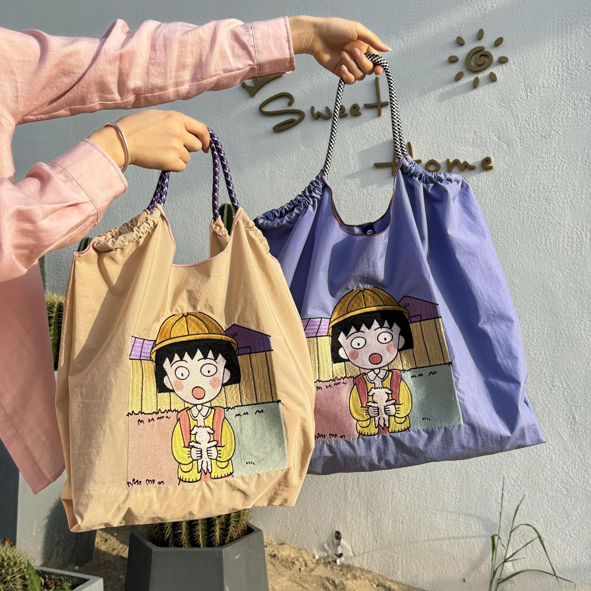 Tas GUANchain bola kualitas tinggi tas belanja nilon bordir indah tas bahu wanita portabel