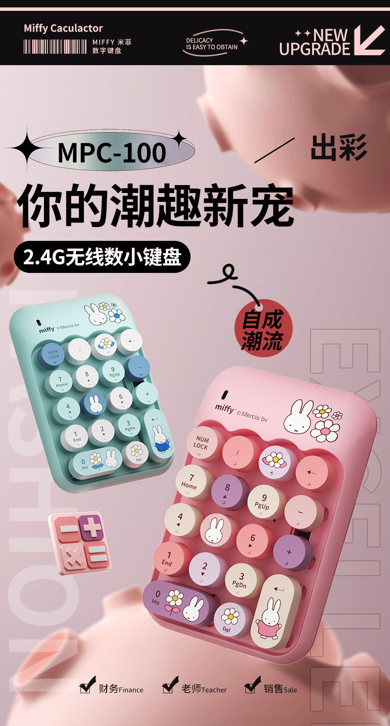 miffy米菲无线蓝牙数字键盘鼠标外接笔记本电脑财务会计USB小键盘