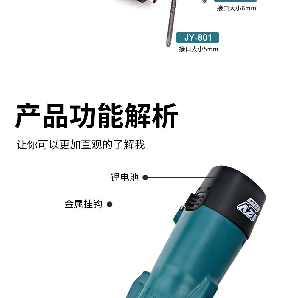 Obeng Listrik Tanpa Kabel JY Juyuan Baterai Lithium 12V 801 Gagang Lurus Obeng Listrik Portabel Isi Ulang Daya Tinggi