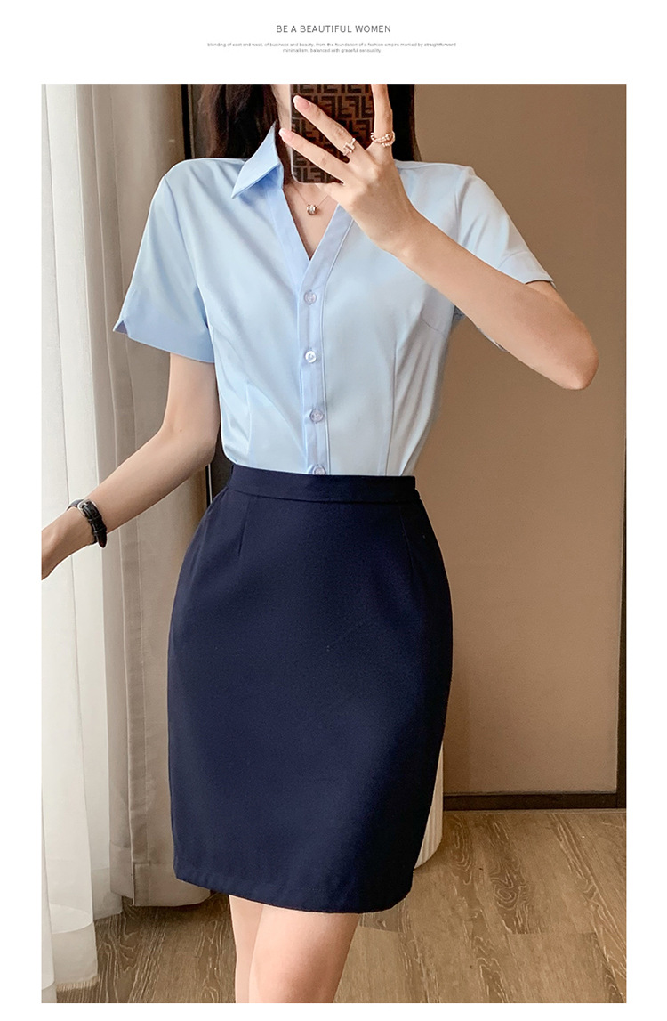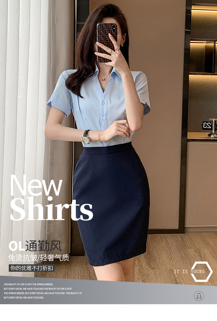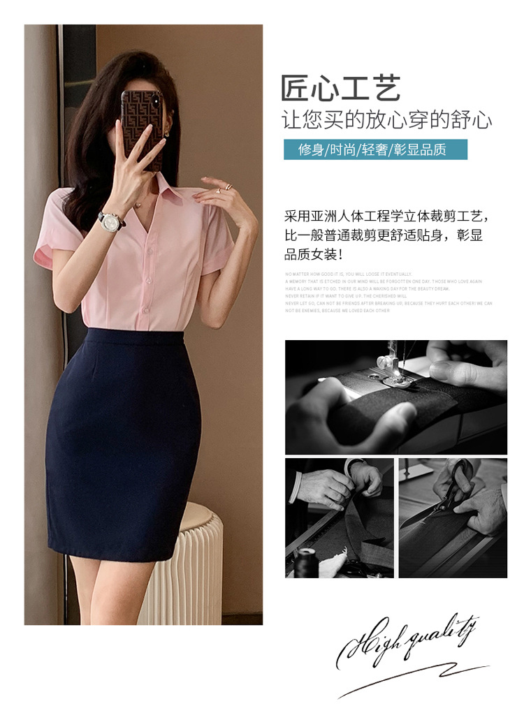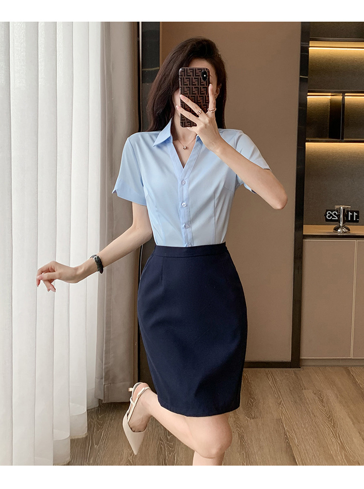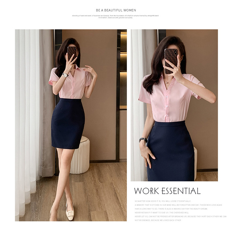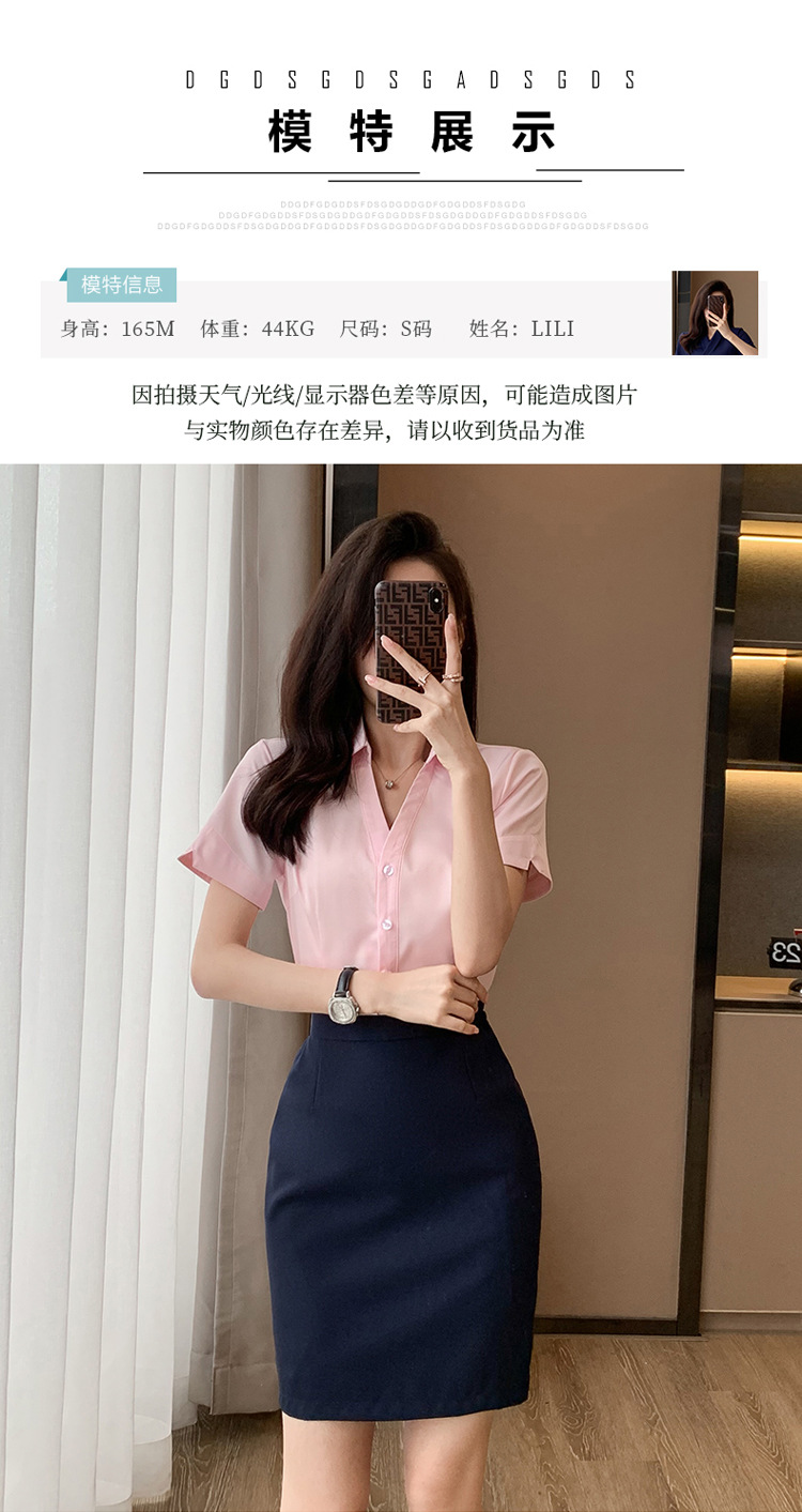Qigu kemeja Niang kemeja wanita pakaian kerja musim panas hotel meja depan salon kecantikan setelan seragam pramugari kemeja lengan pendek