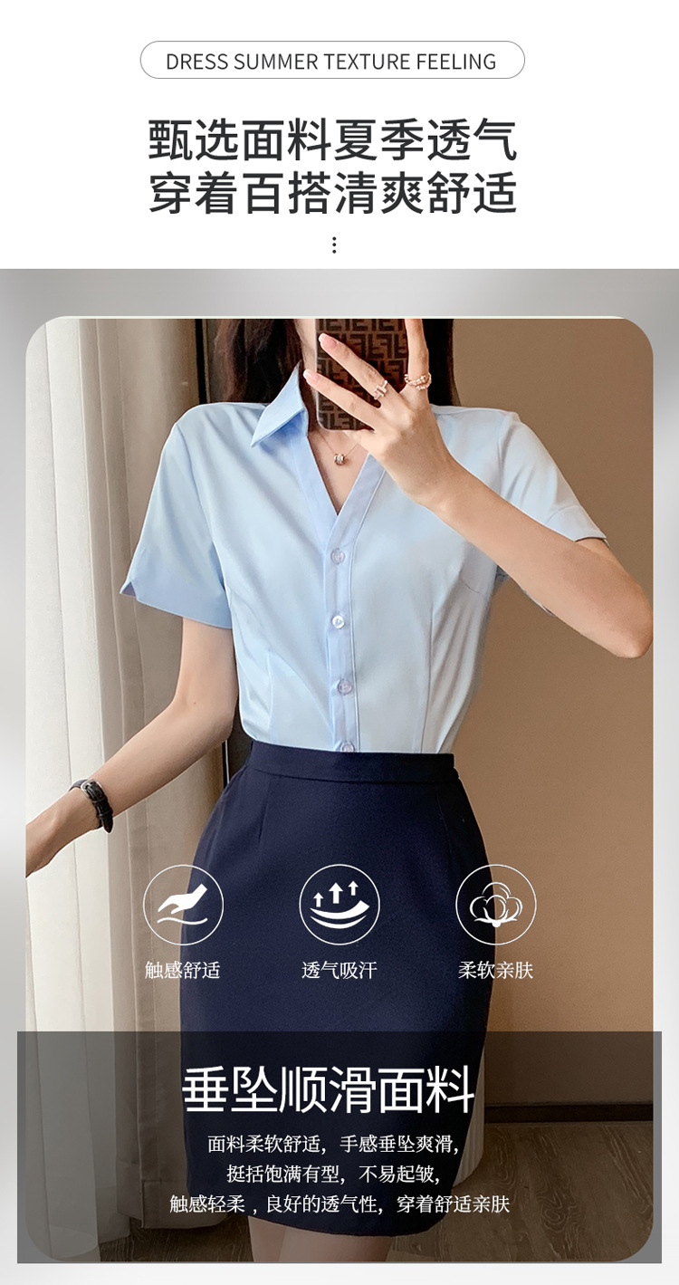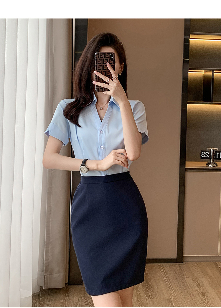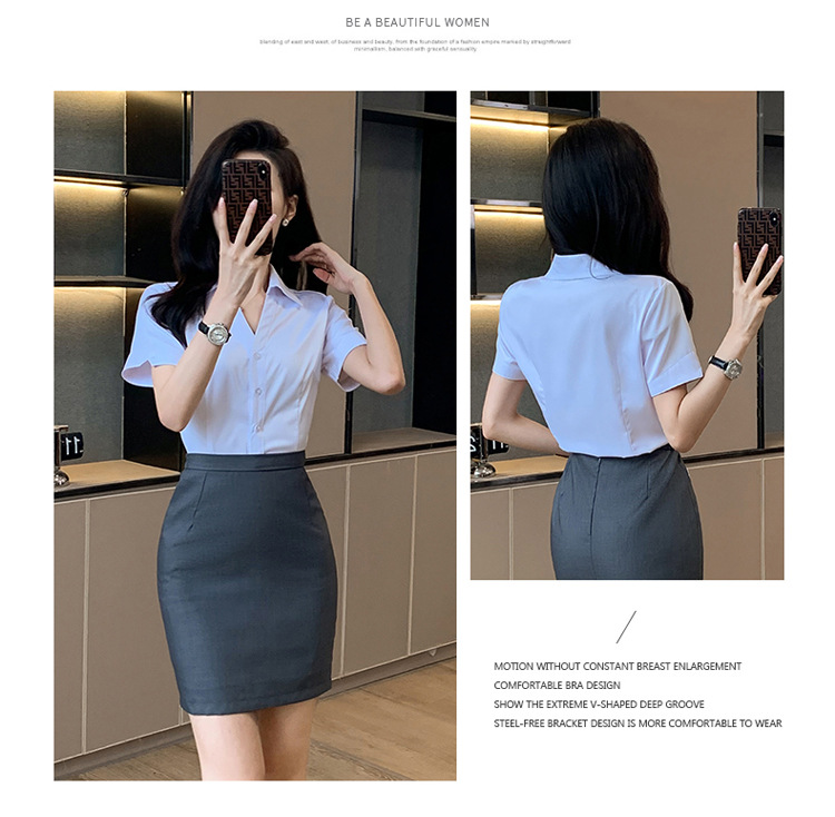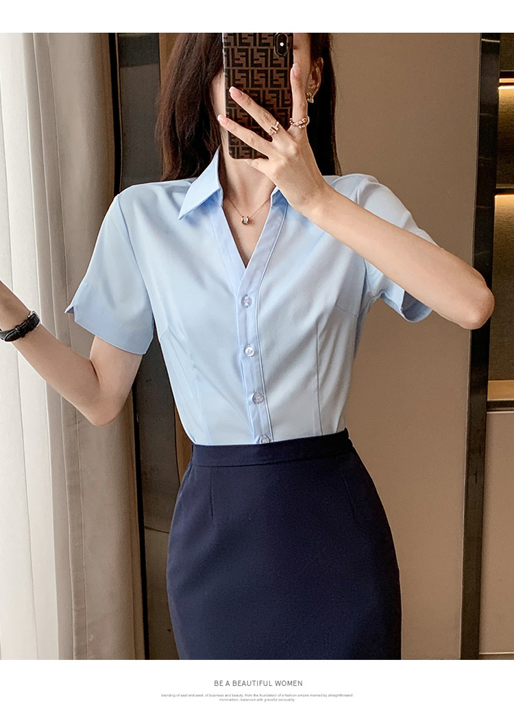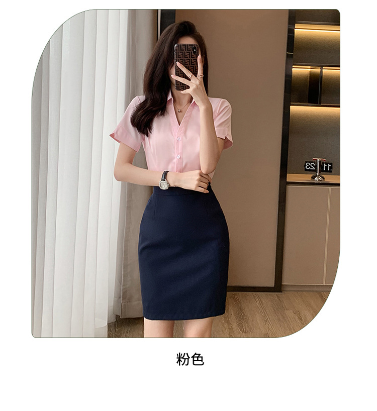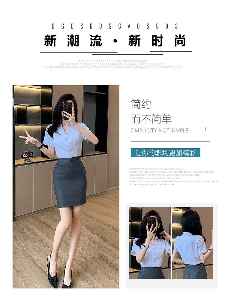 Qigu kemeja Niang kemeja wanita pakaian kerja musim panas hotel meja depan salon kecantikan setelan seragam pramugari kemeja lengan pendek