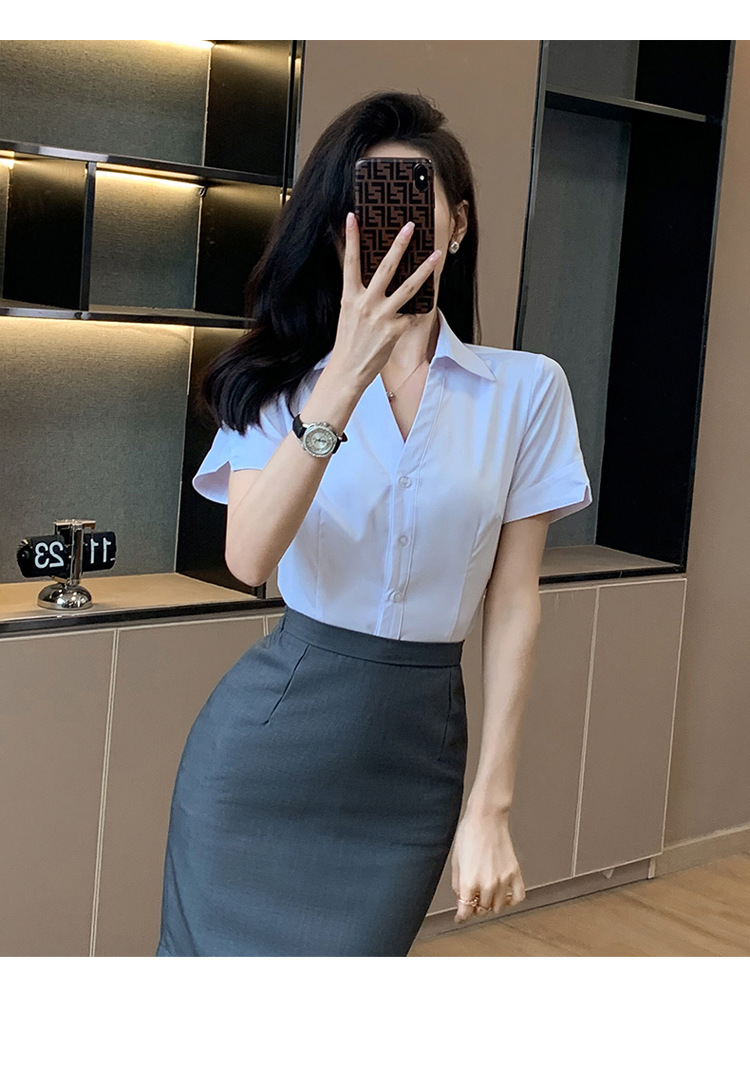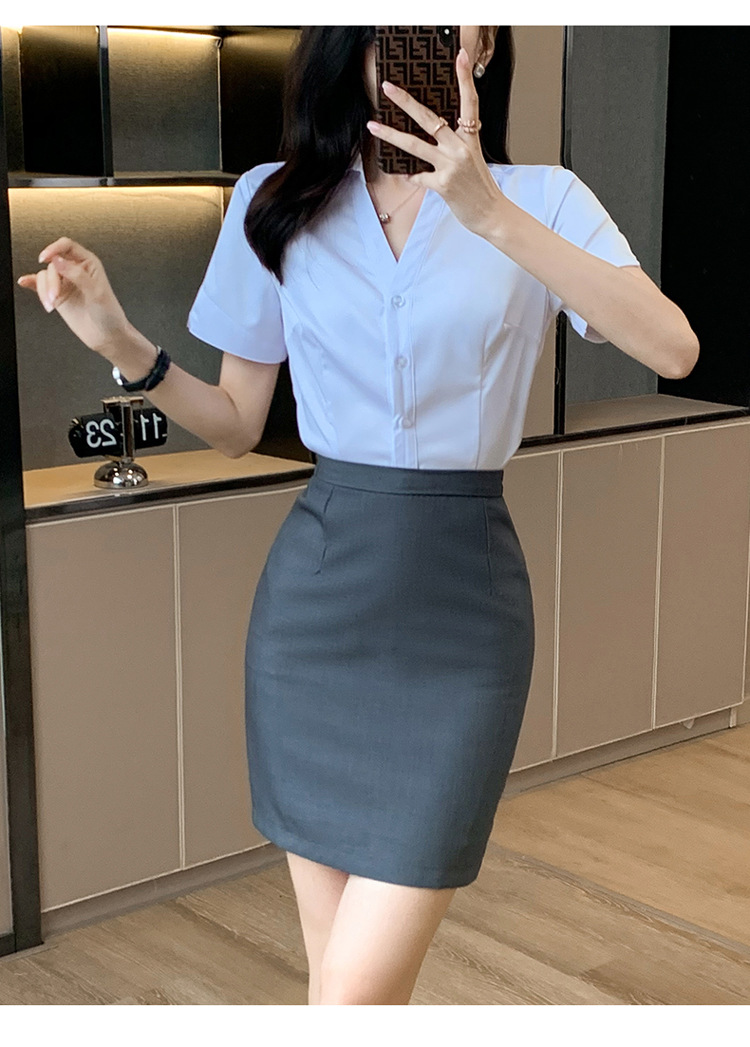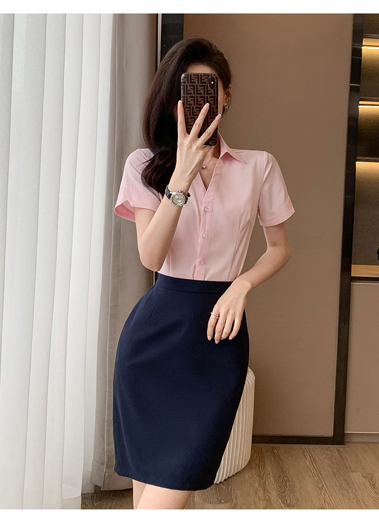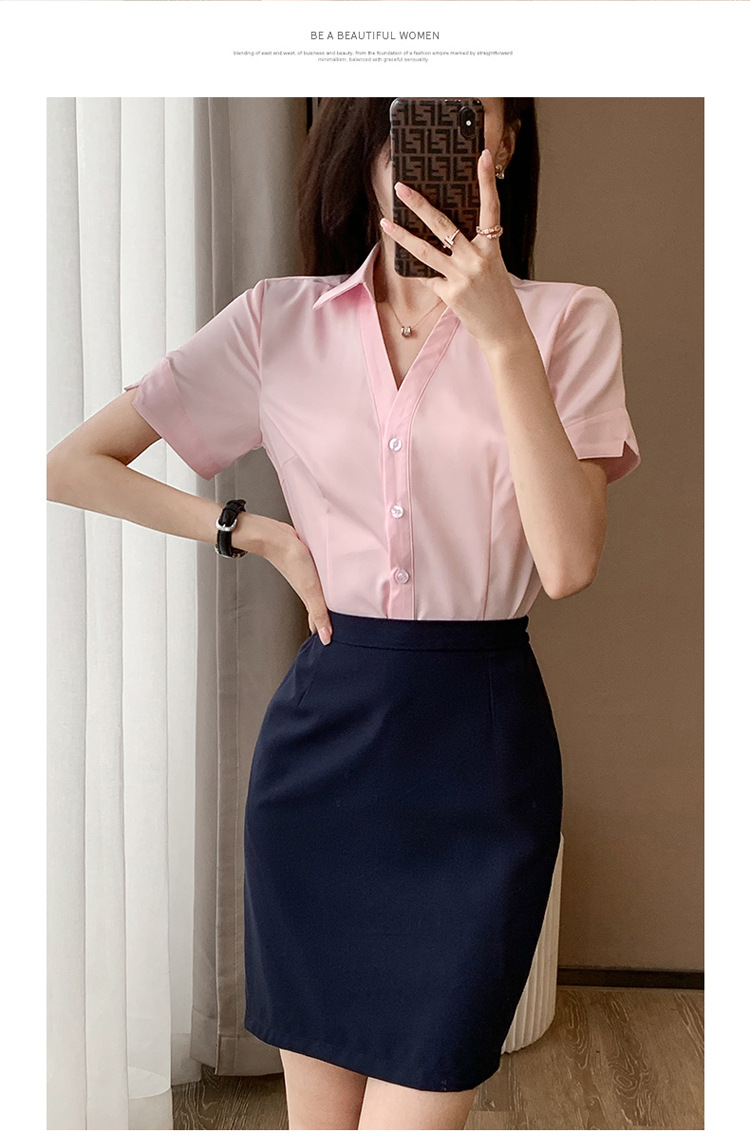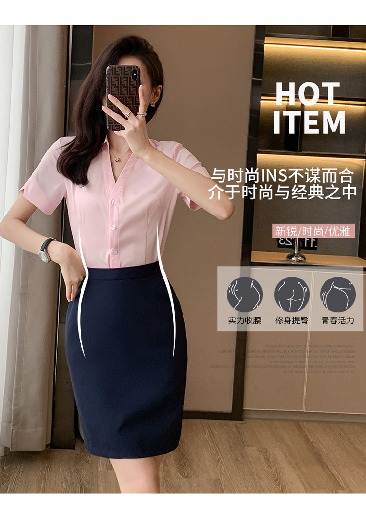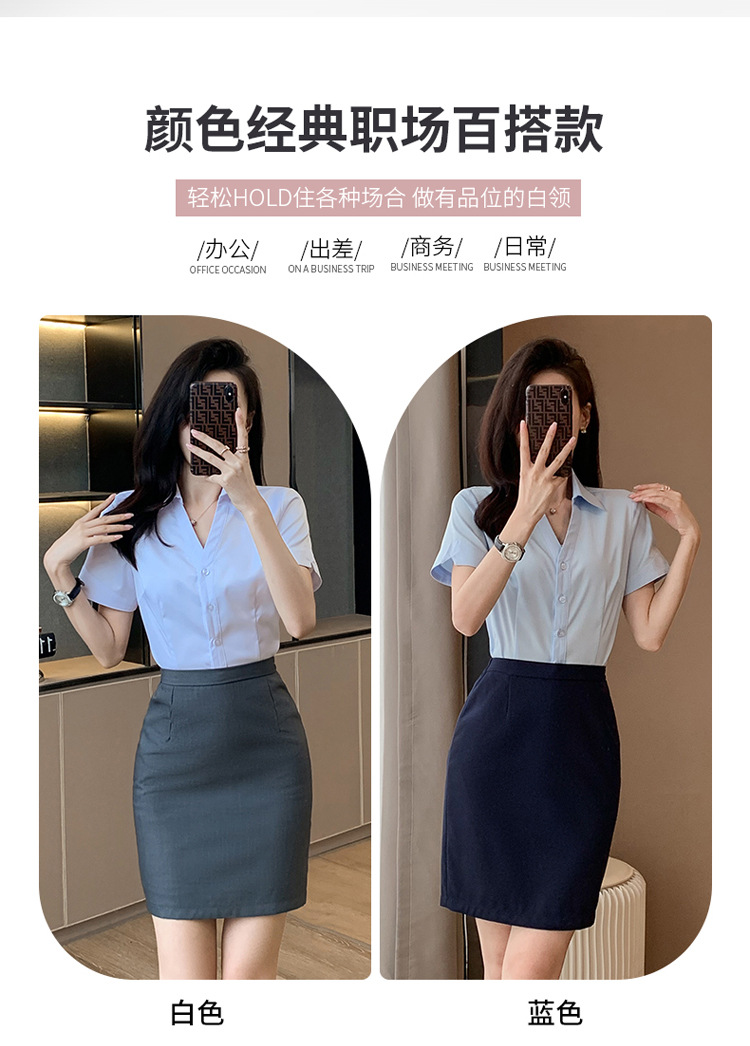 Qigu kemeja Niang kemeja wanita pakaian kerja musim panas hotel meja depan salon kecantikan setelan seragam pramugari kemeja lengan pendek