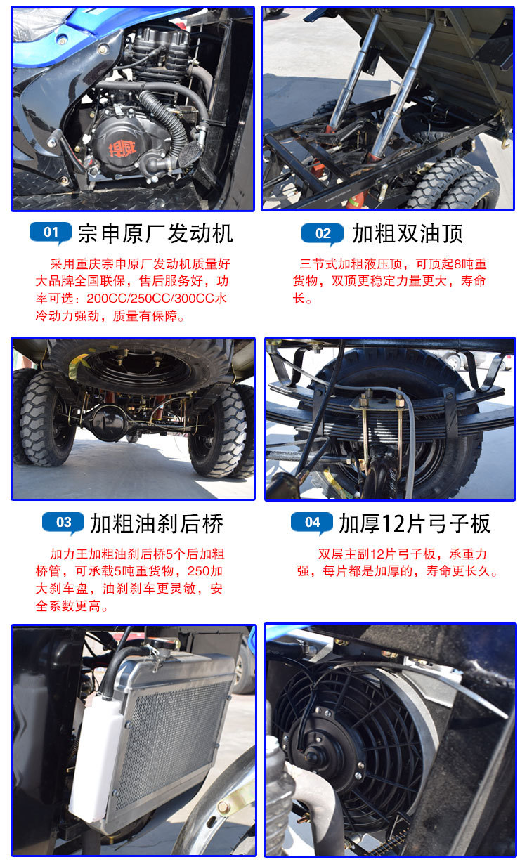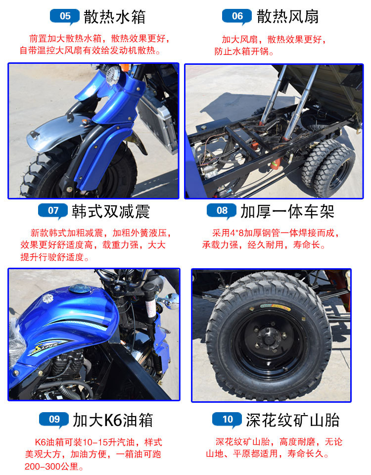 Sepeda Motor Roda Tiga Minyak Cooled Air Roda Lima Beban Dump King Bahan Bakar Minyak Truk Baru Sepeda Motor Roda Tiga Pertanian