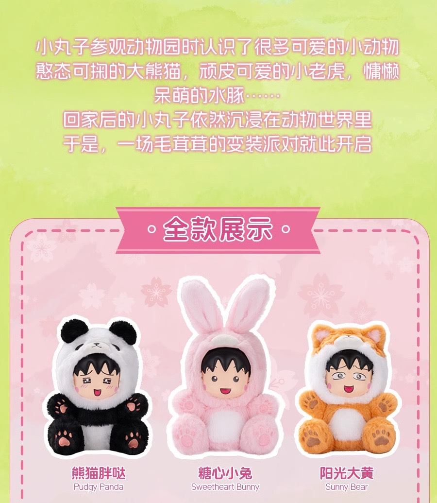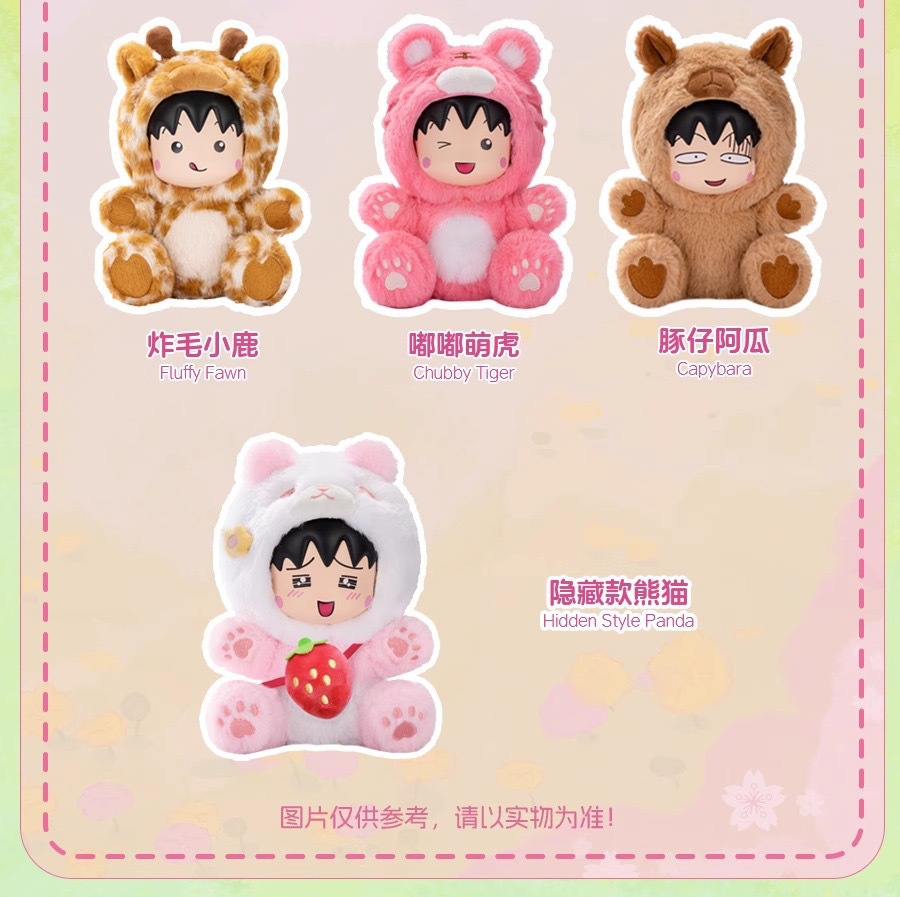 Kostum Chibi Maruko-chan Asli Seri Pesta Boneka Vinyl Plush Blind Box Figurine Lucu Dekorasi untuk Anak Perempuan.