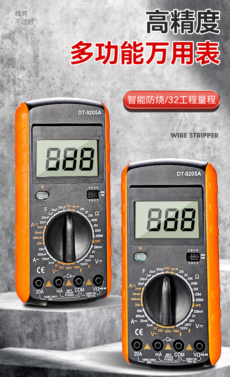 Multimeter tampilan digital tingkat industri portabel, Multimeter antibakar otomatis cerdas presisi tinggi