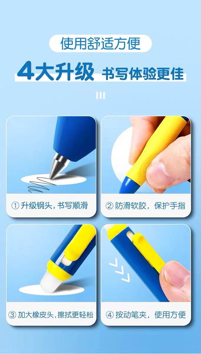 可擦笔H7104热可擦笔米菲优握按动可擦中性笔小学生用晶蓝摩易擦