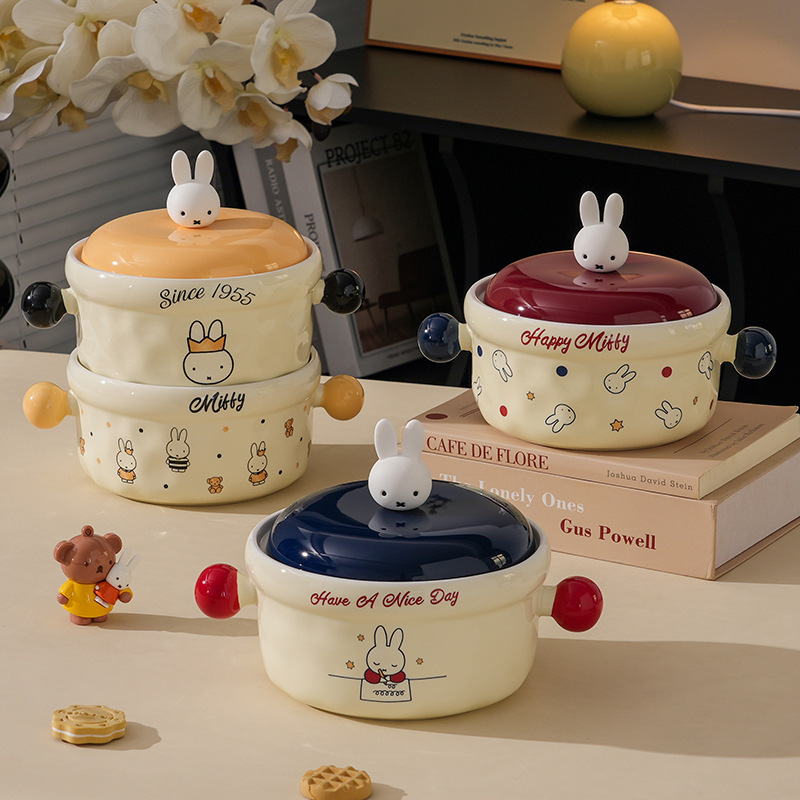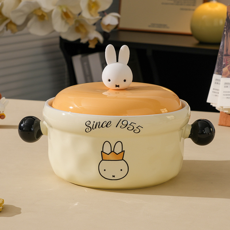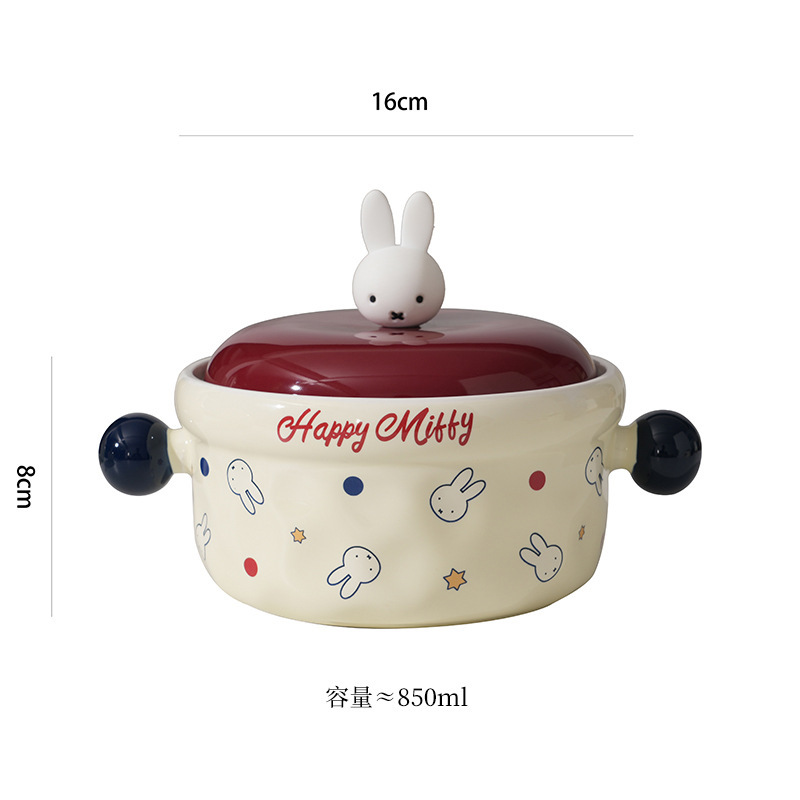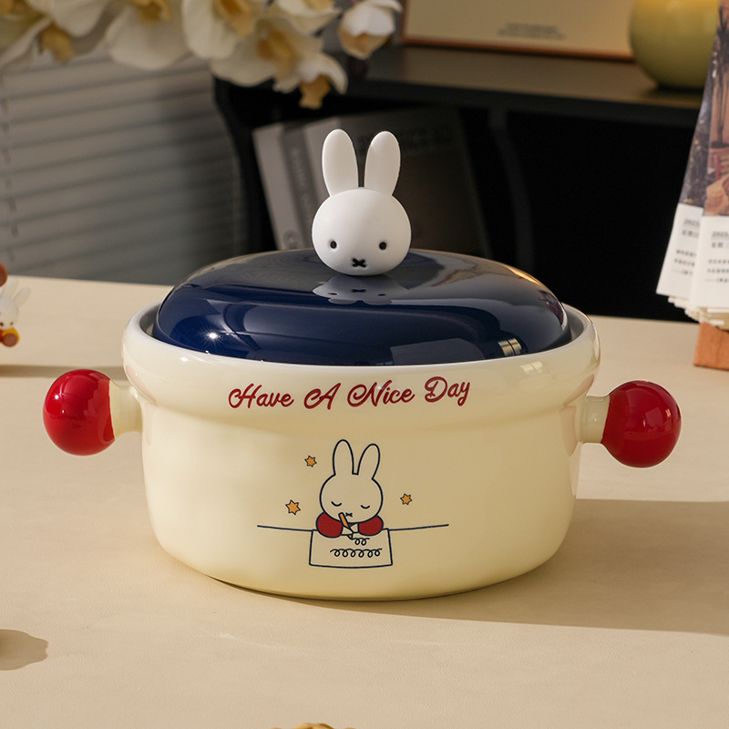 MIFE泡面碗可爱陶瓷面碗家用带盖汤碗大容量方便面碗螺蛳粉碗