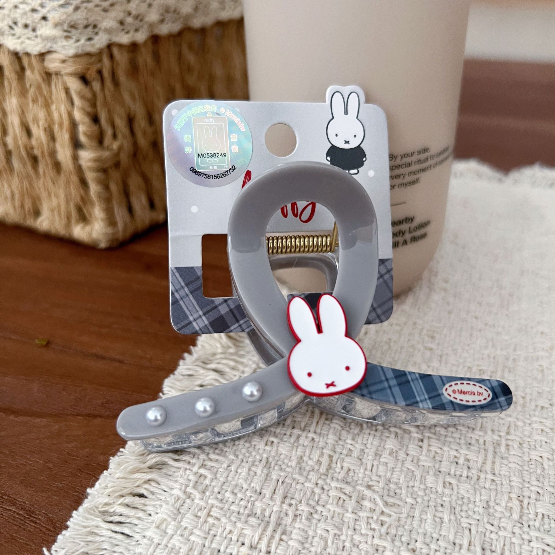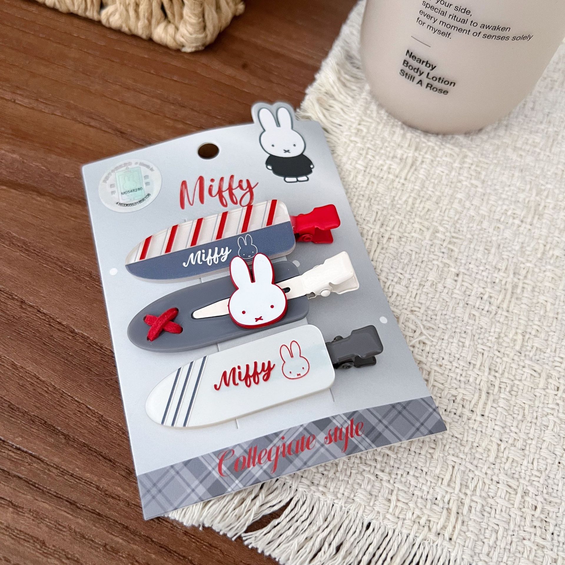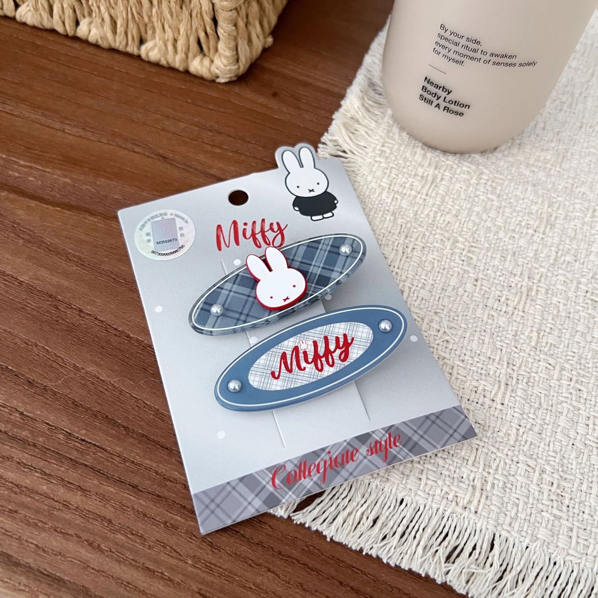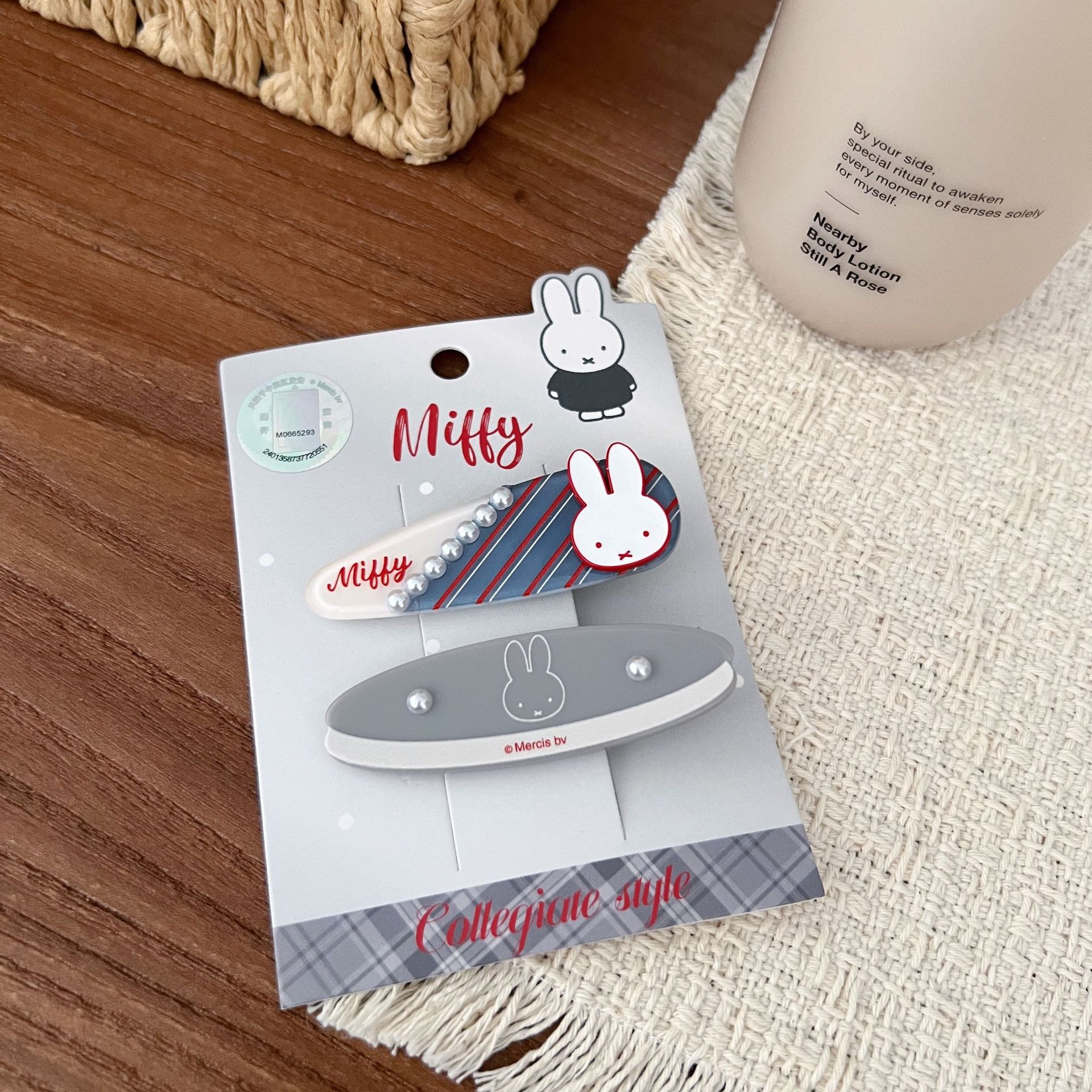 新款韩版米菲miffy灰红条纹系列格子抓夹蝴蝶结珍珠纽扣边夹鸭夹