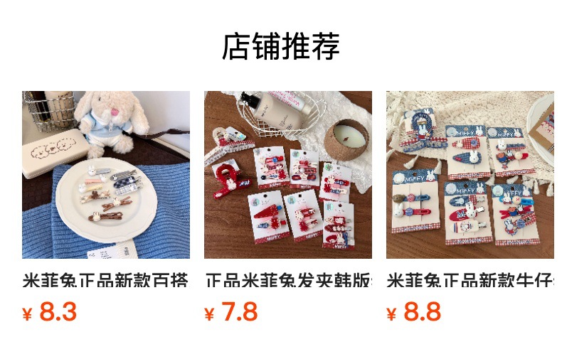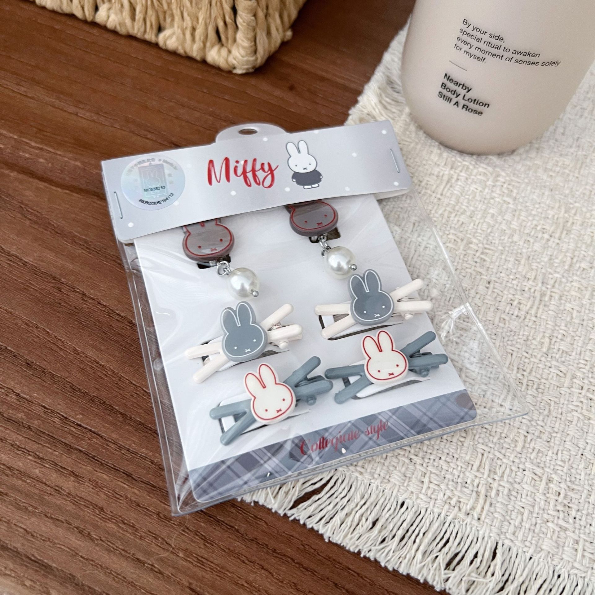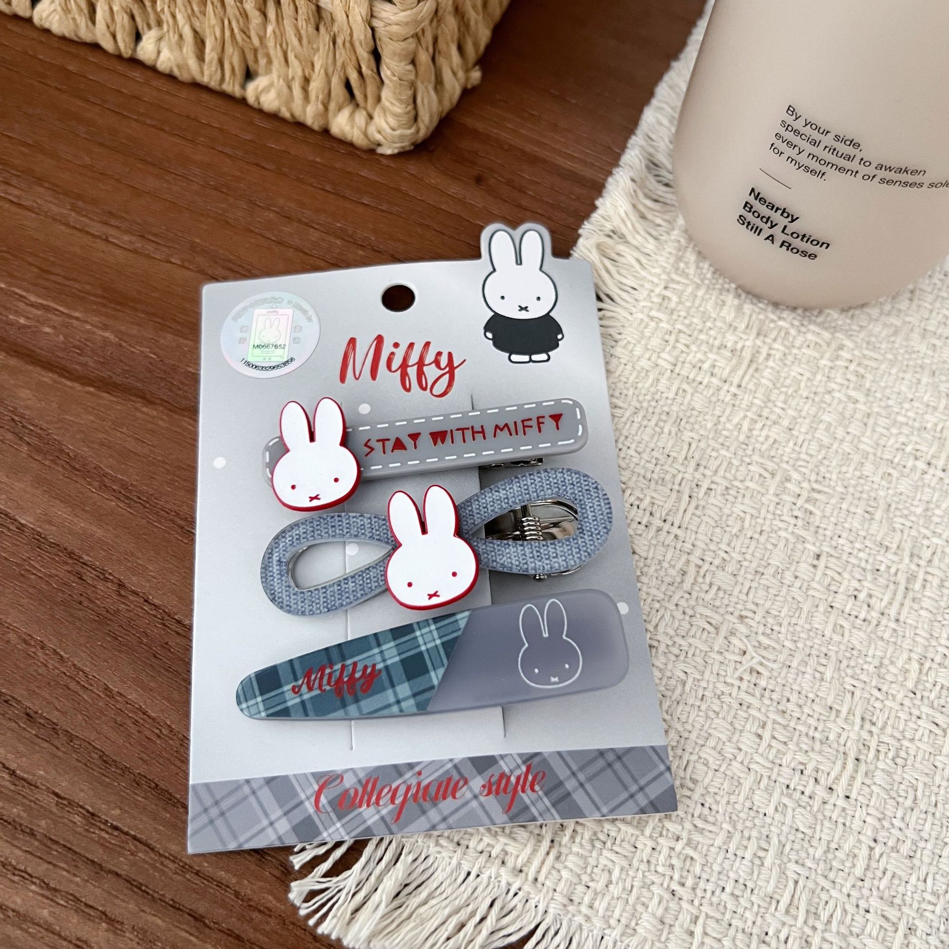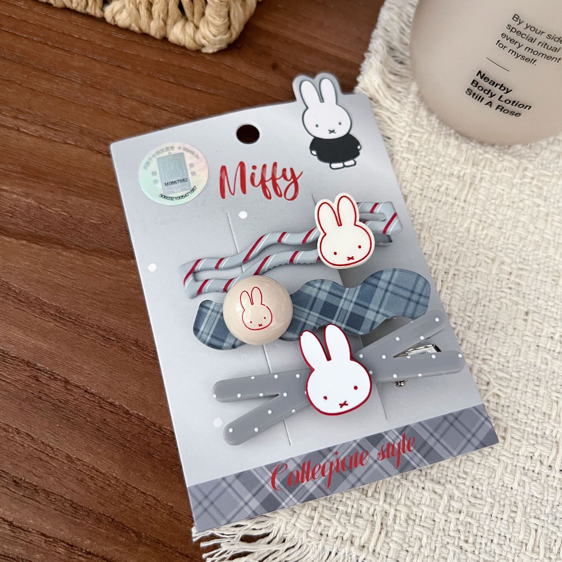 新款韩版米菲miffy灰红条纹系列格子抓夹蝴蝶结珍珠纽扣边夹鸭夹