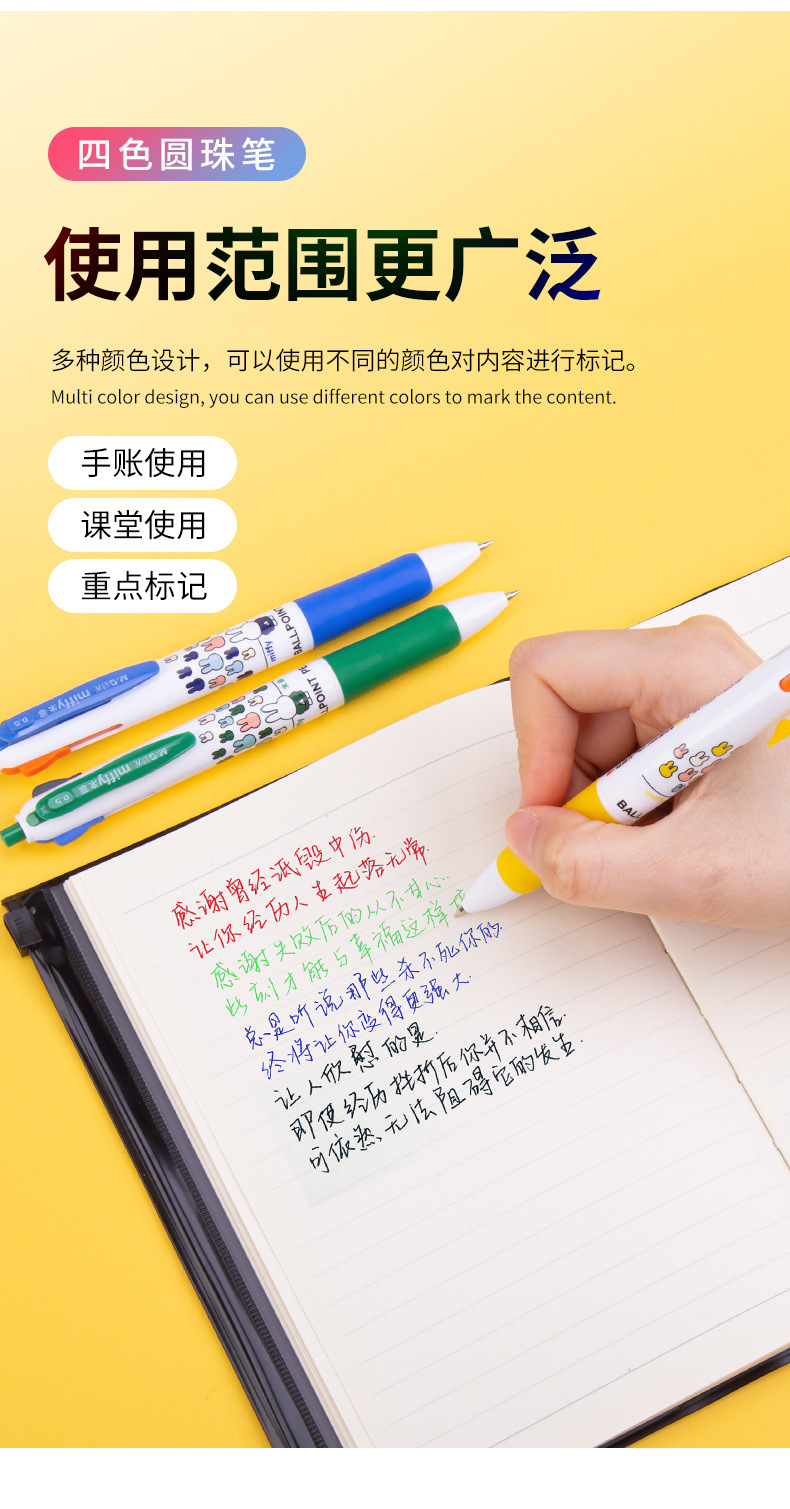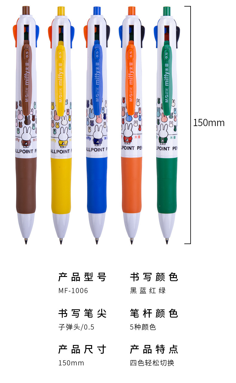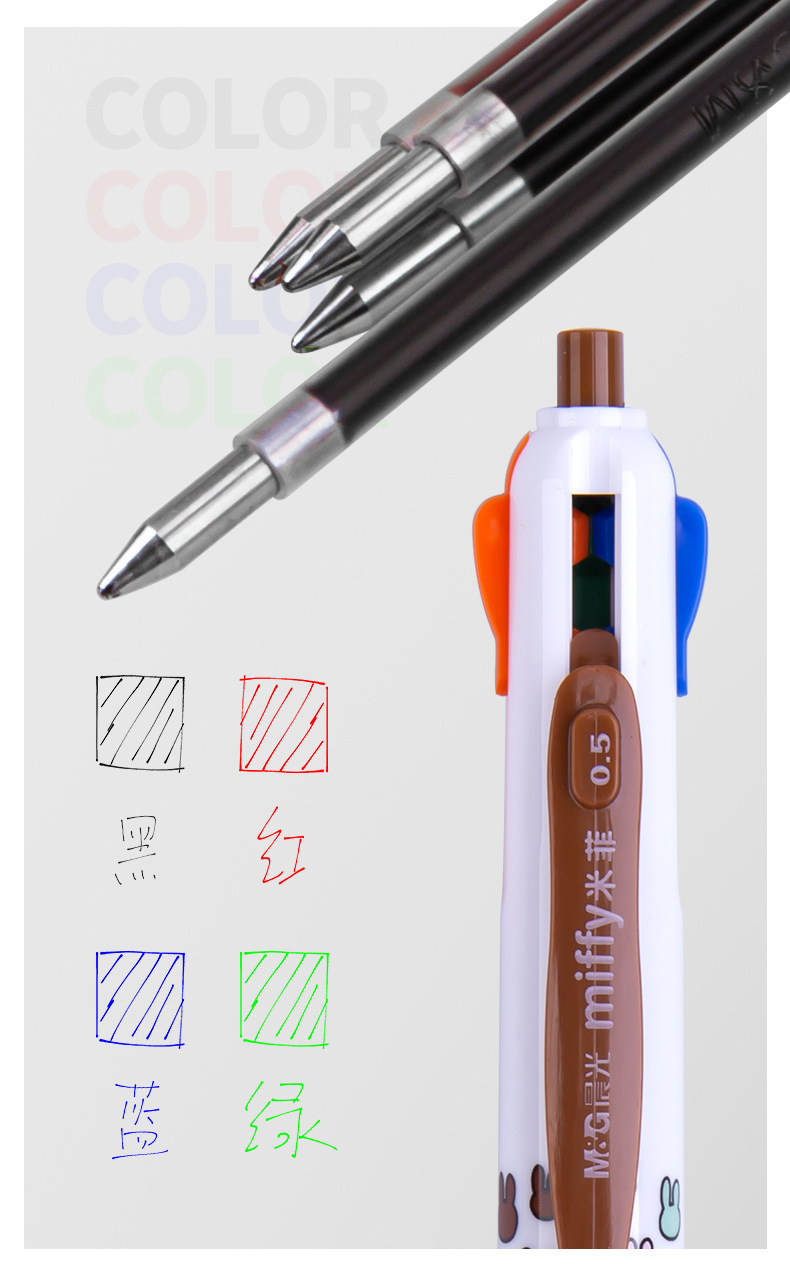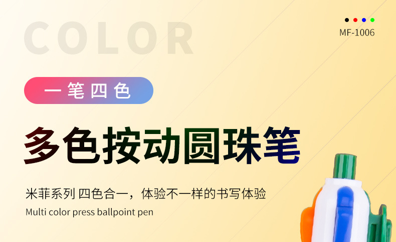 晨MG光米菲圆珠笔四色笔MF1006中油笔按动多色笔日记标记笔原子笔