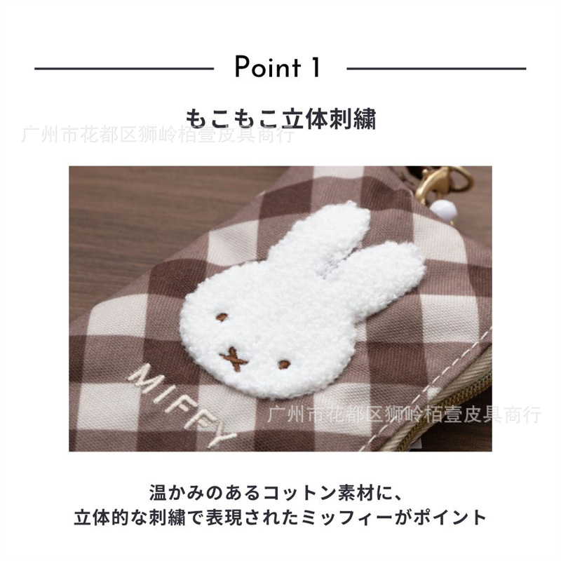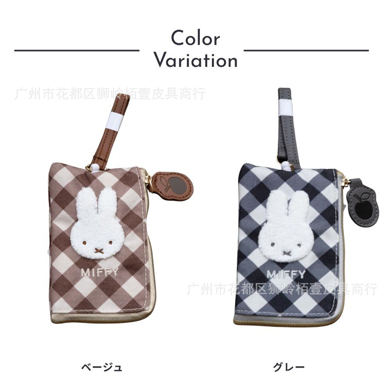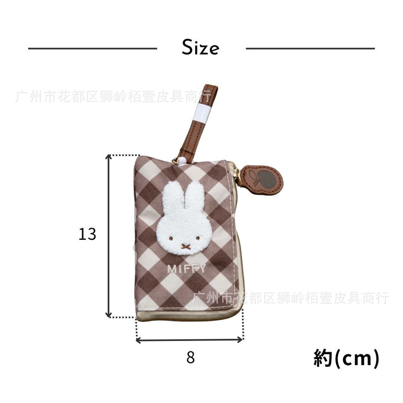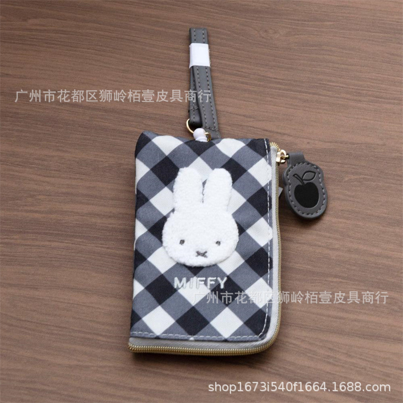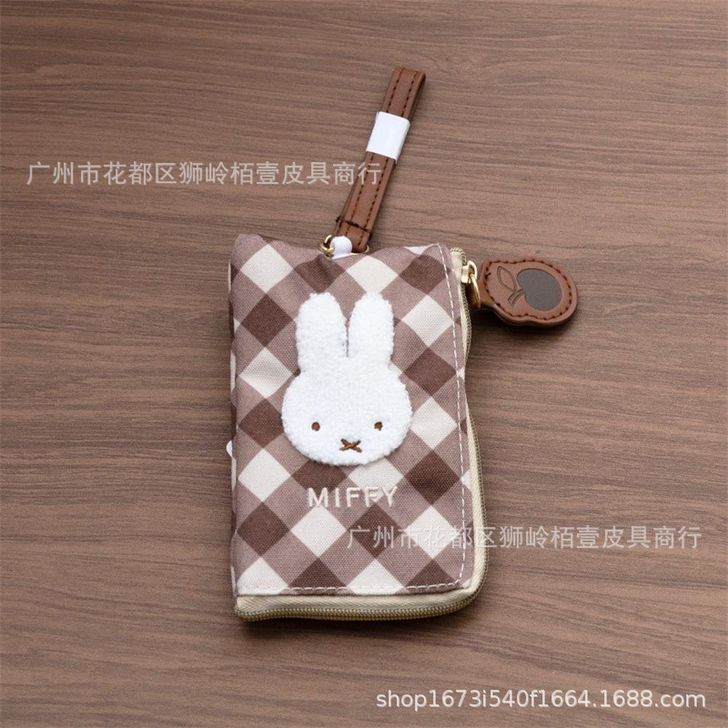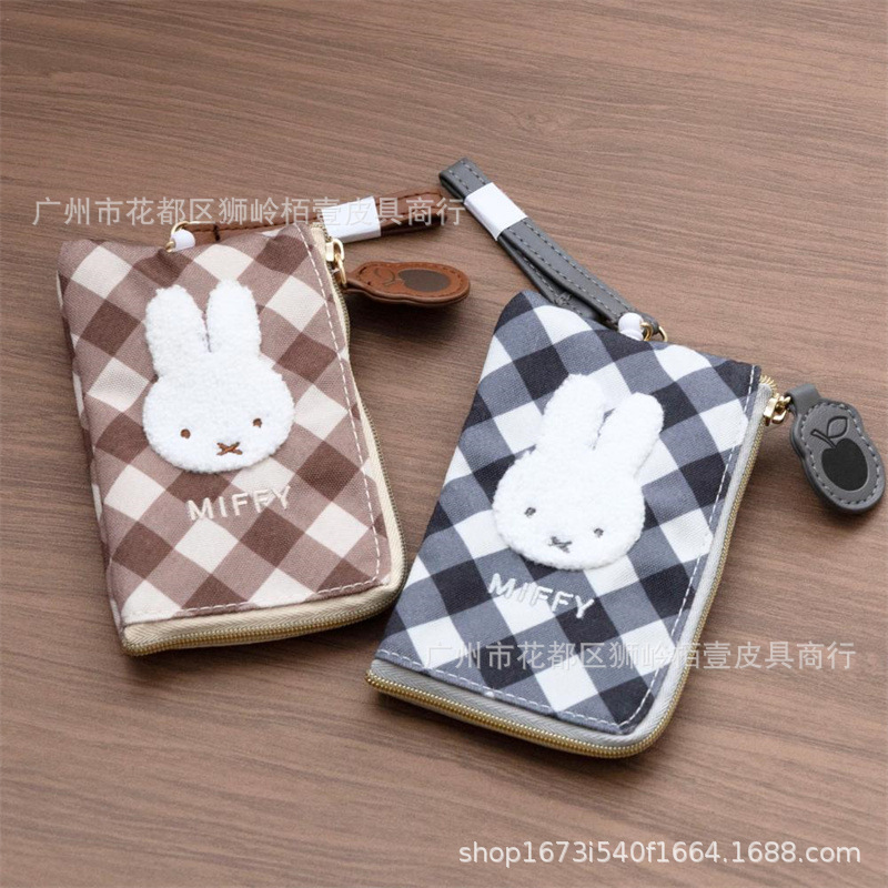 日本时尚卡通米菲格子钥匙包百搭可爱刺绣兔兔卡套小巧公交卡卡包