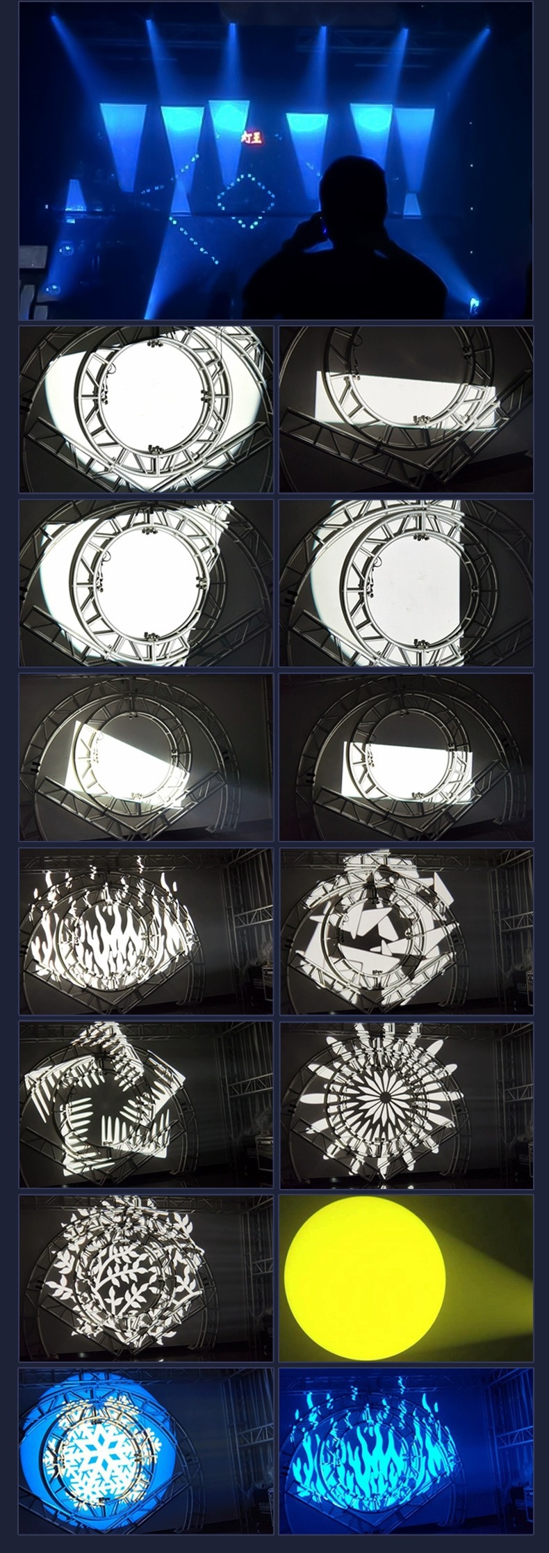 Lampu Sorot komputer 1200W, cahaya sorot kinerja pencahayaan panggung, pola kepala goyang luar ruangan kekuatan tinggi