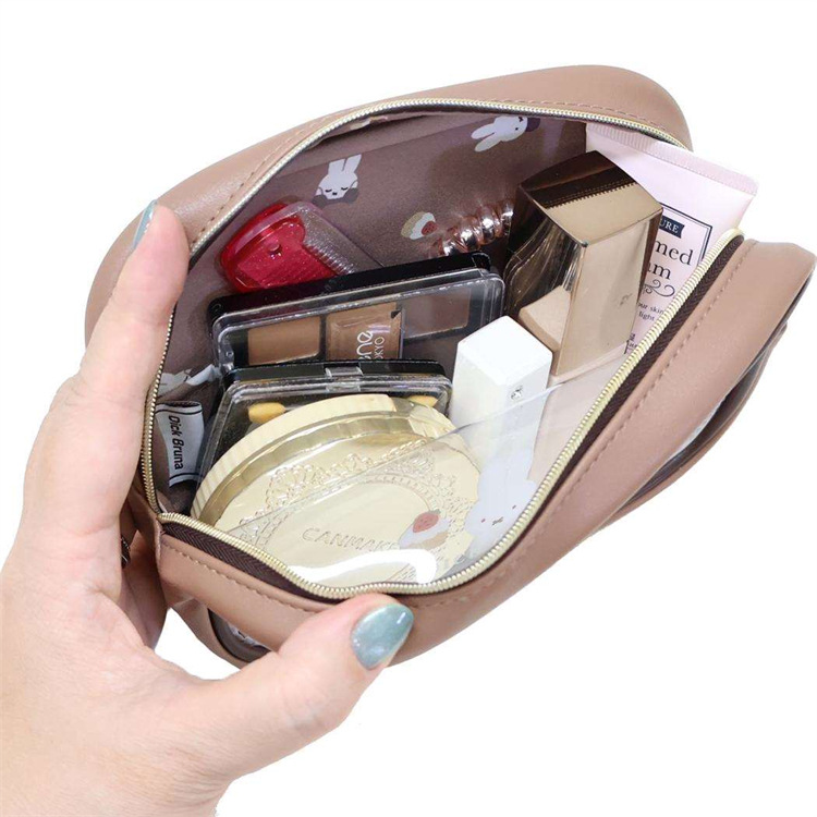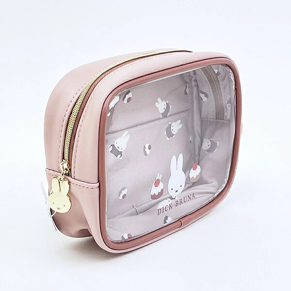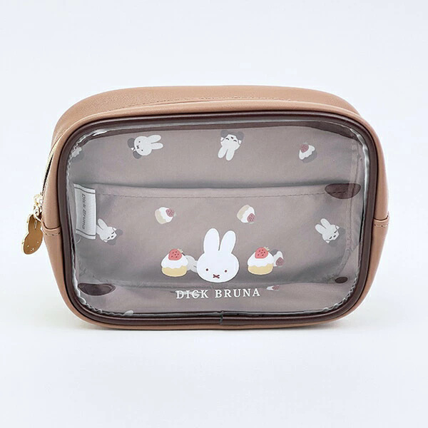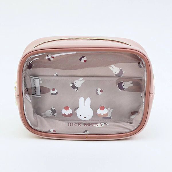 日系卡通米菲兔皮质半透明拉链化妆包女生可爱蛋糕印花收纳包