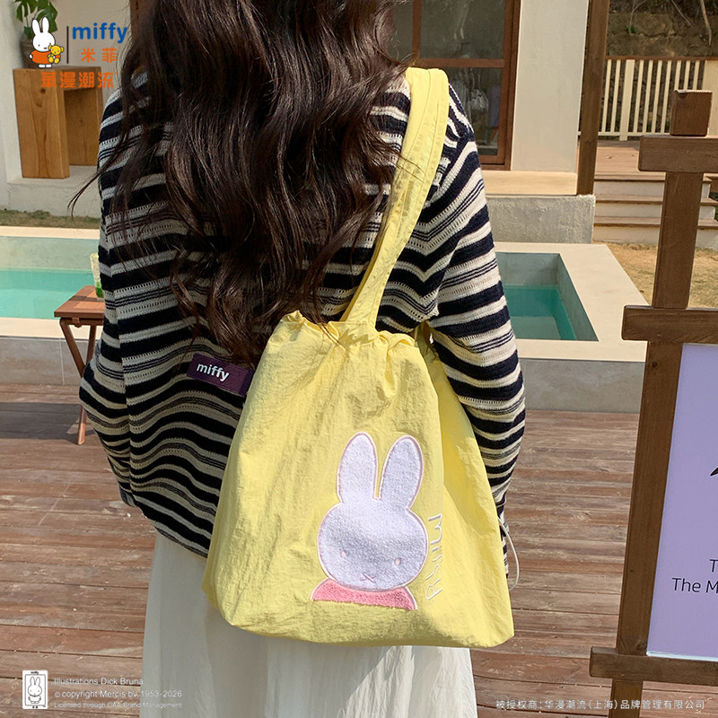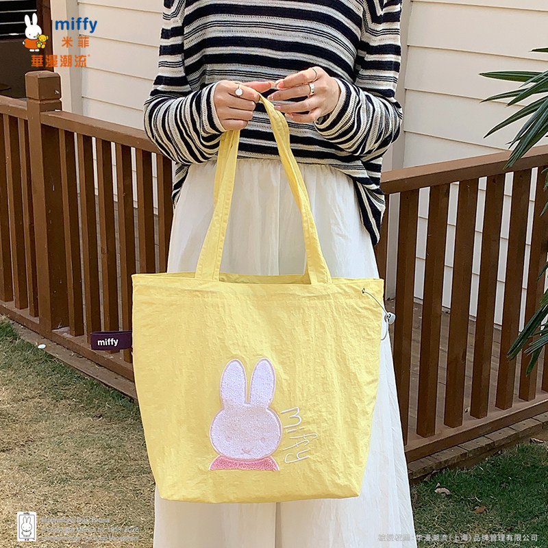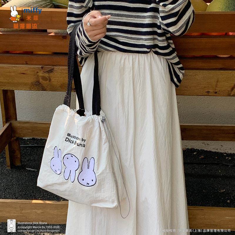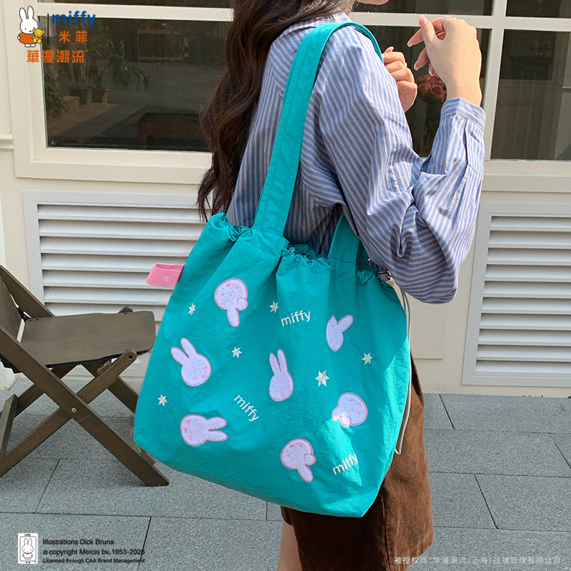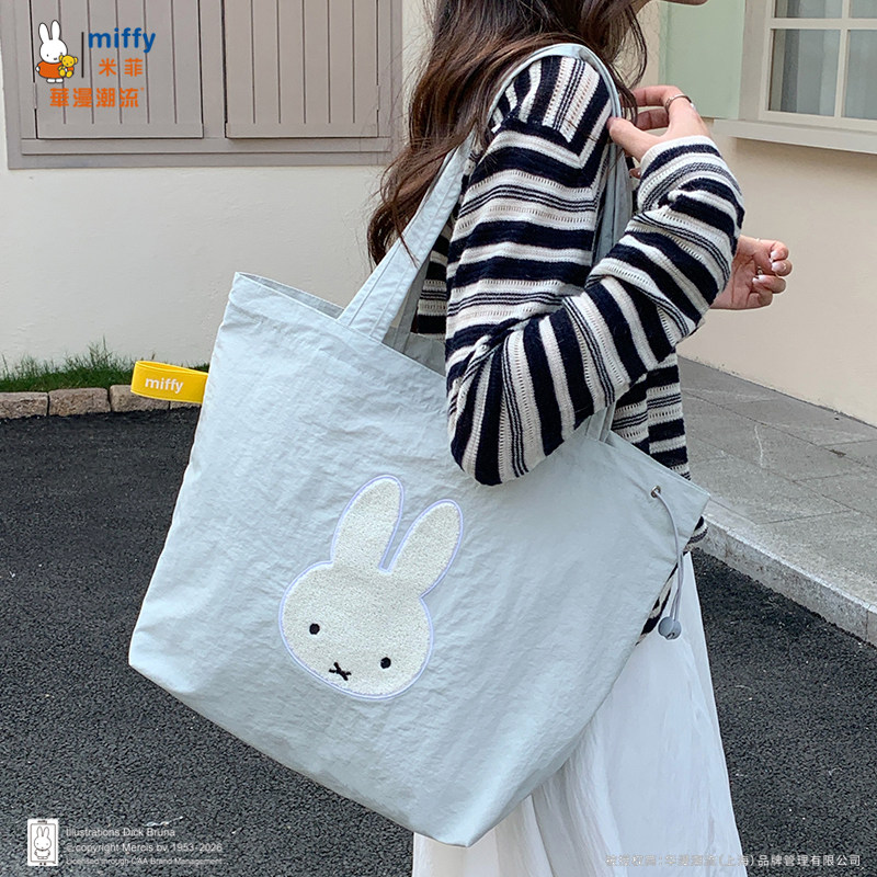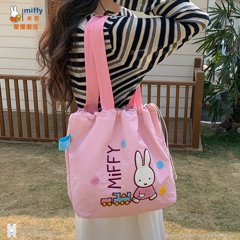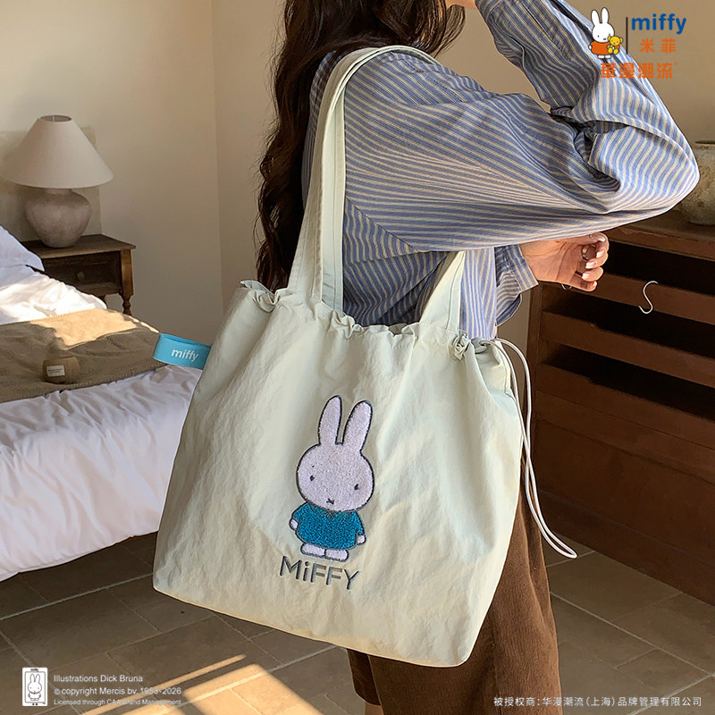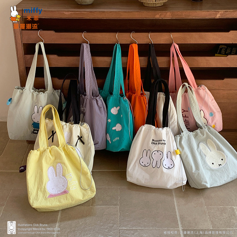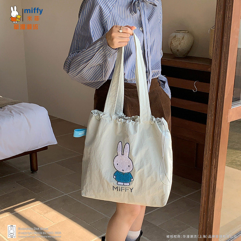 正品Miffy毛巾刺绣包包抽绳托特包可爱百搭女大容量上班通勤包包