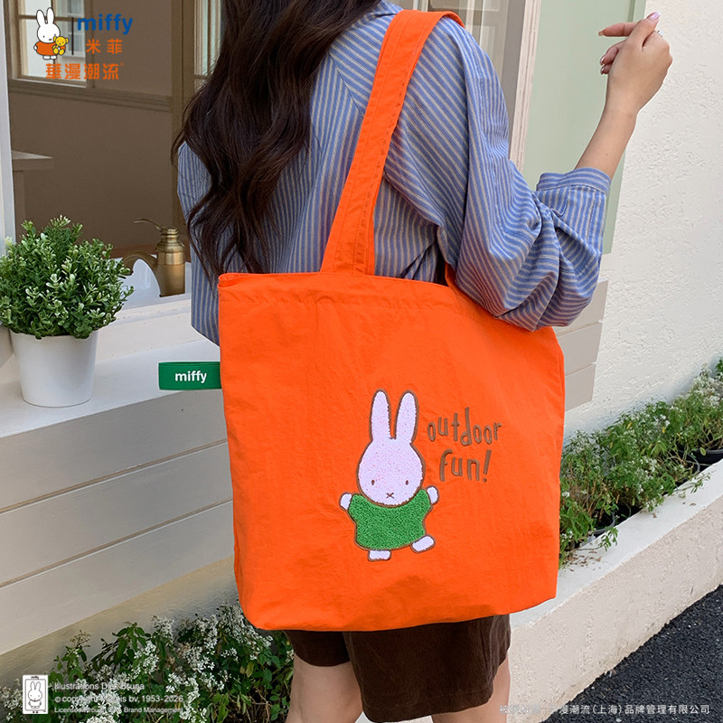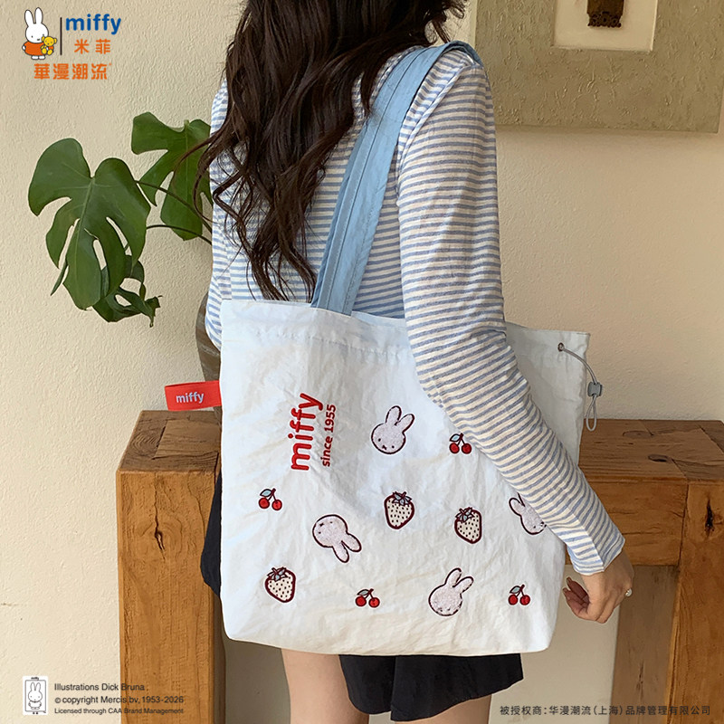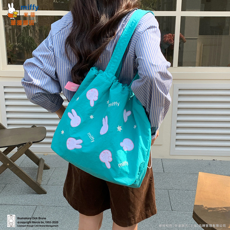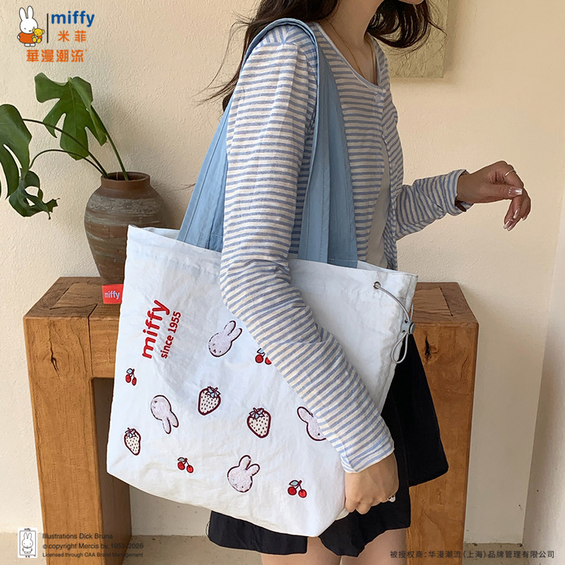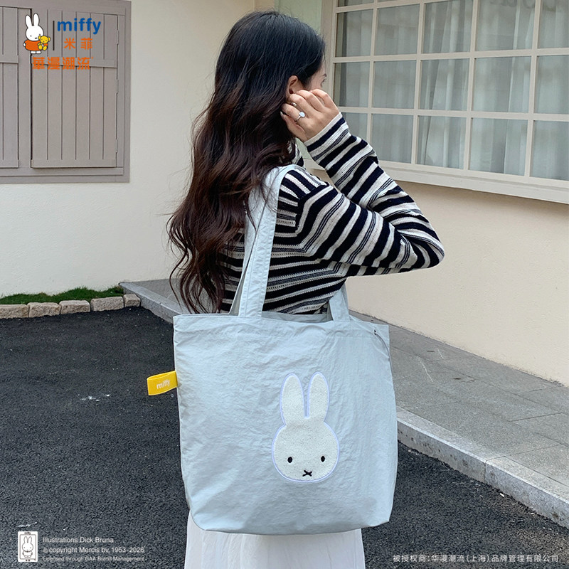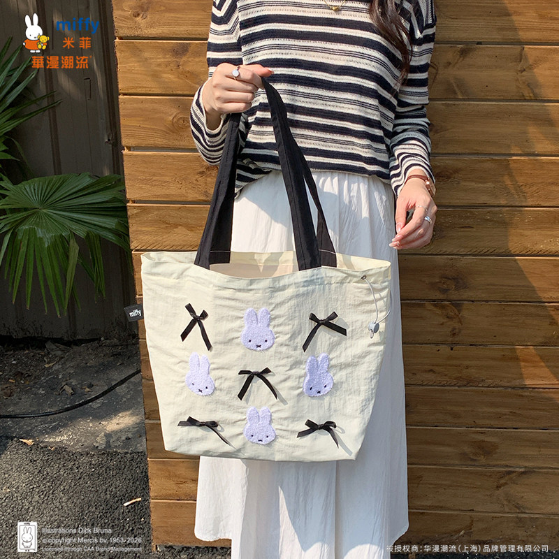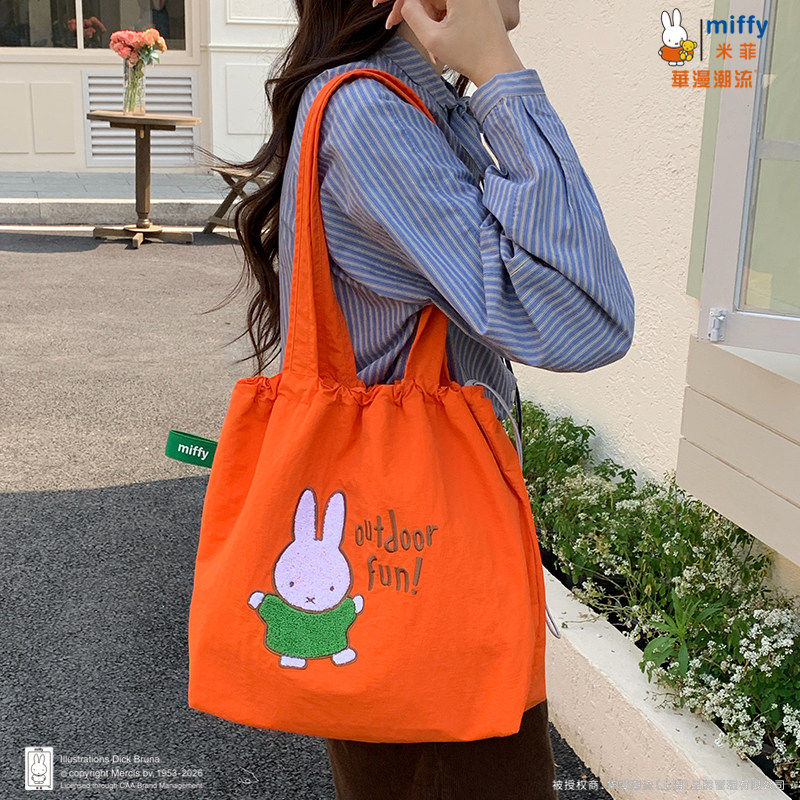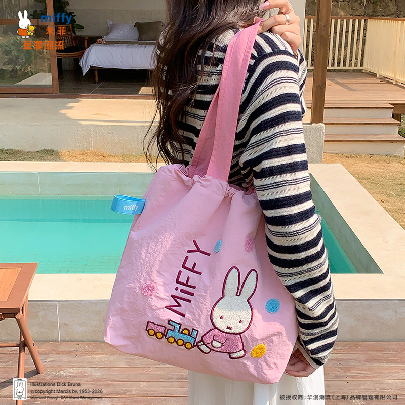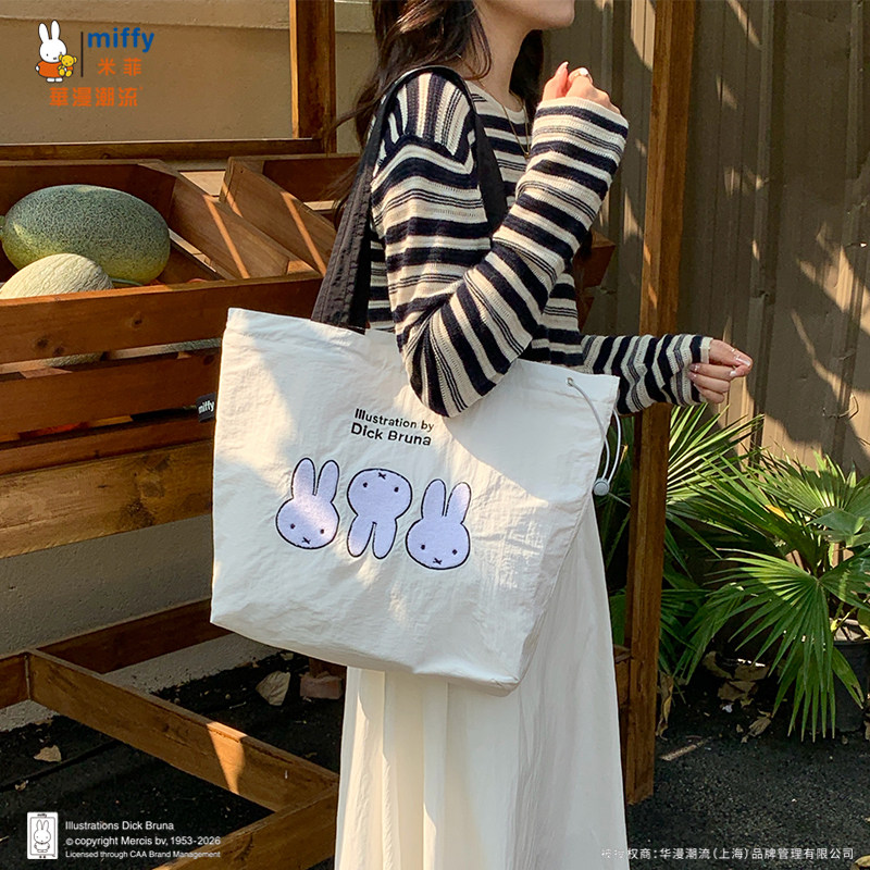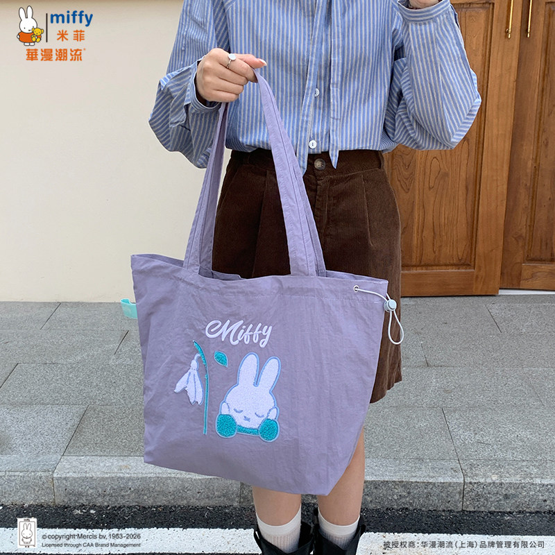 正品Miffy毛巾刺绣包包抽绳托特包可爱百搭女大容量上班通勤包包