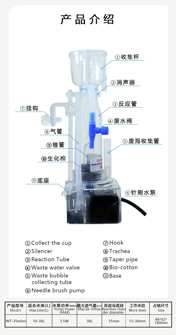 小型海水缸蛋分迷你蛋白质分离器水母缸珊瑚缸静化过滤器-35mini