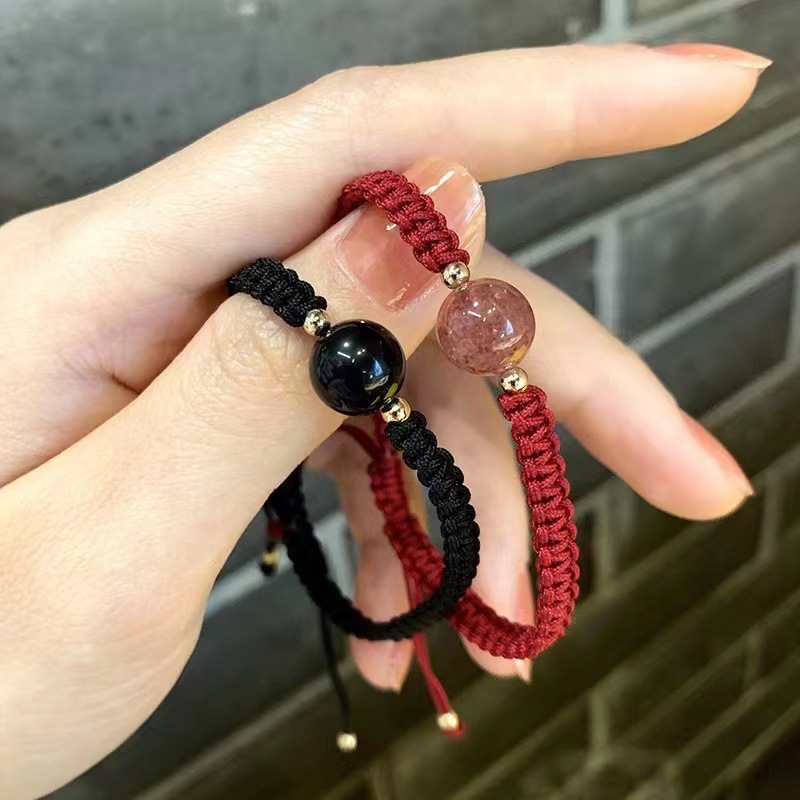 Gelang Kristal Strawberry Warna Merah untuk Pria, Manik-Manik Keberuntungan, Warna Merah, Gelang Tangan Pasangan Wanita