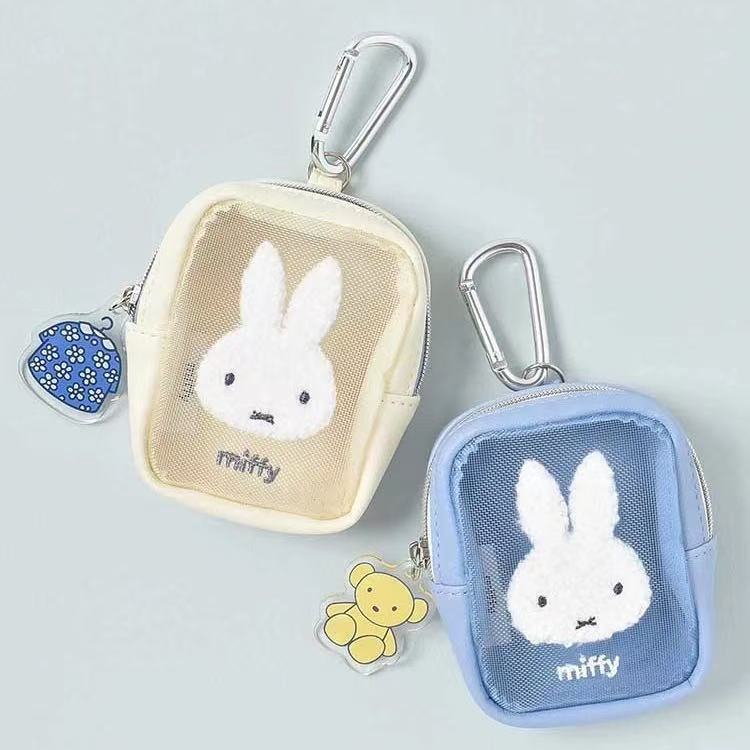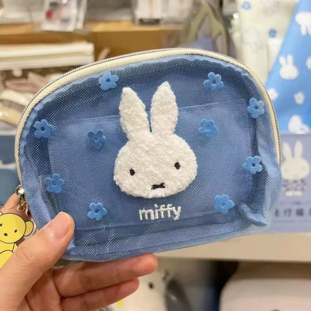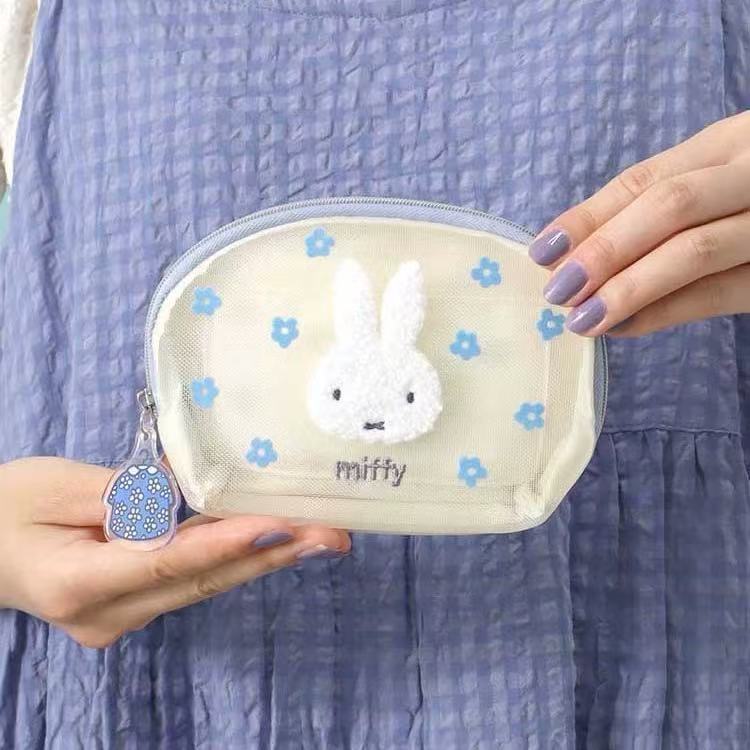 现货日系卡通刺绣化妆包网纱透明姨妈巾收纳包零钱卡包钥匙挂件包