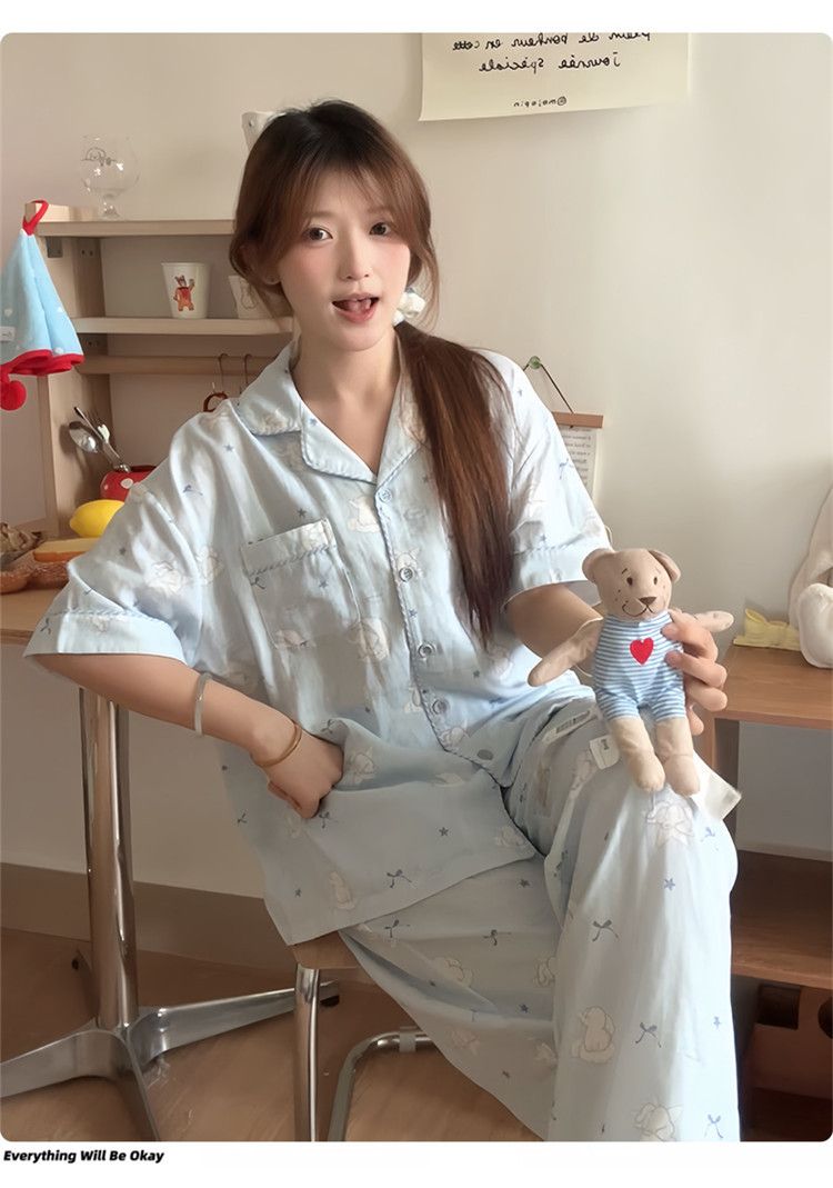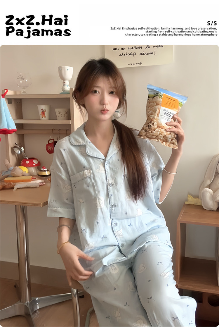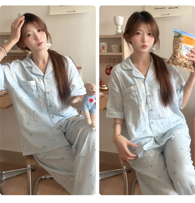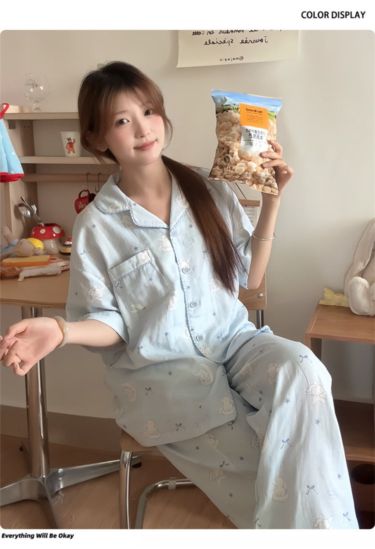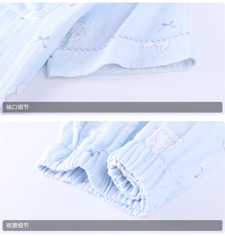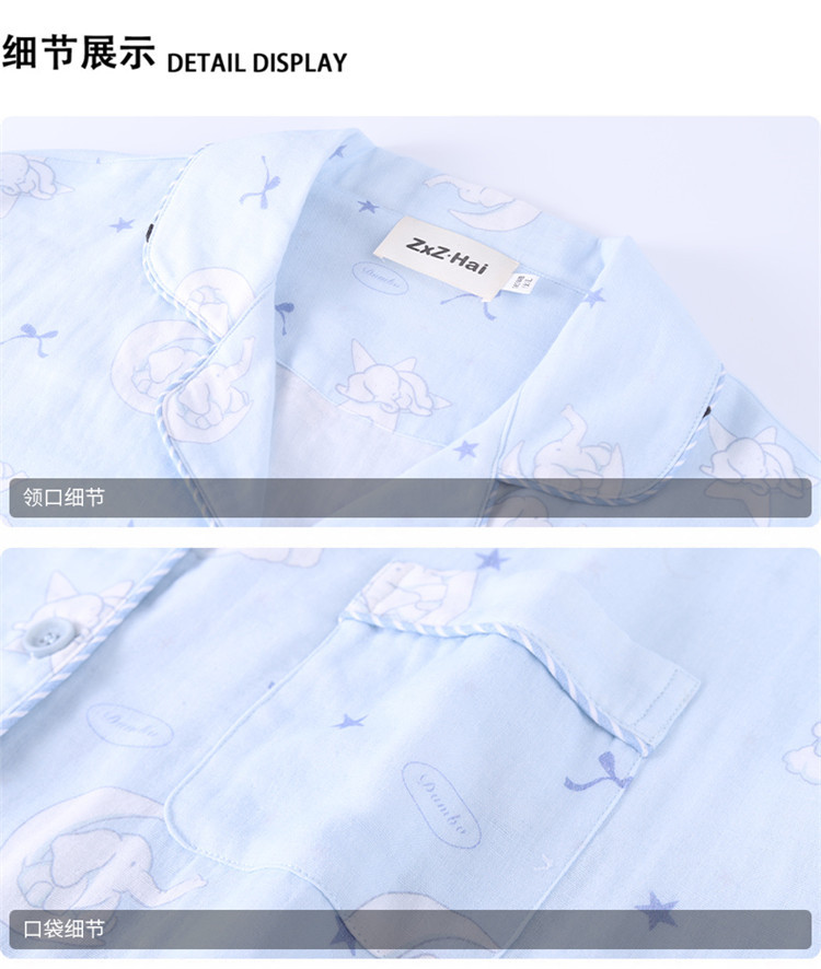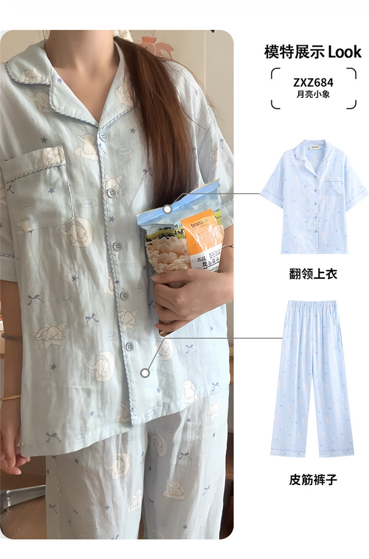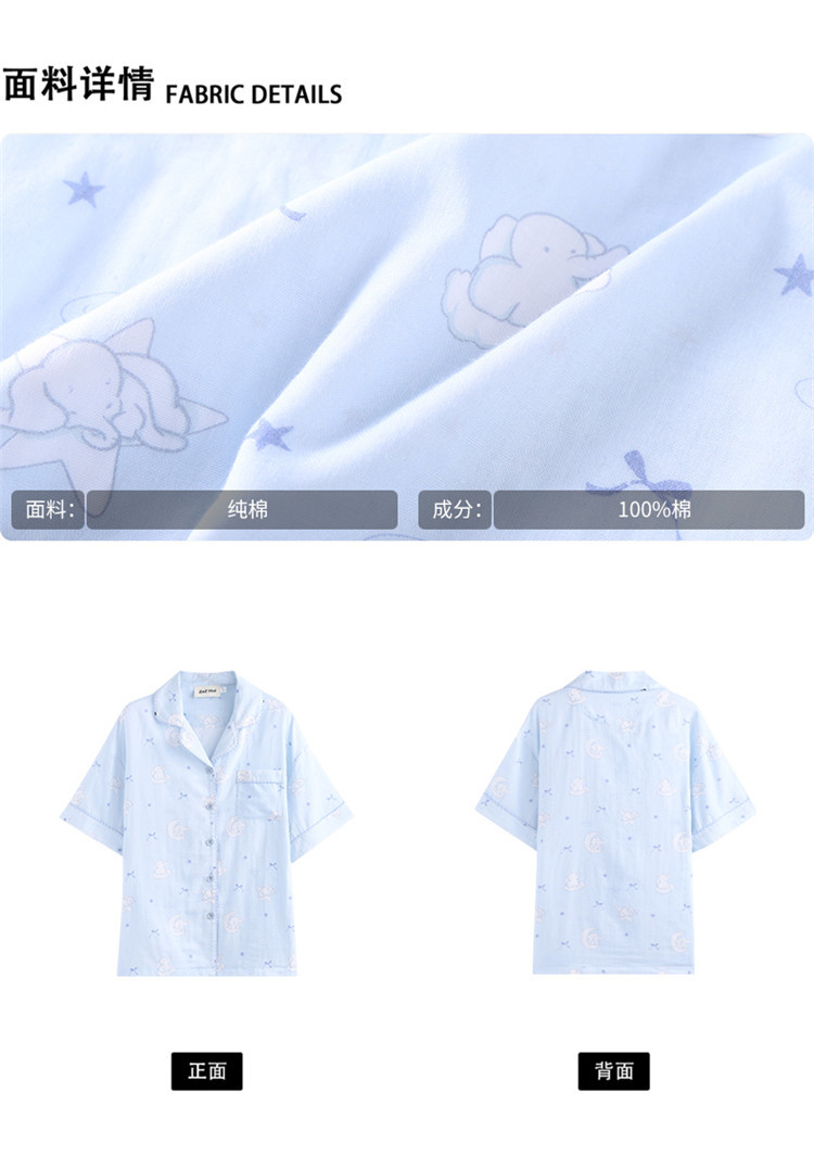 Model Baru Baby Blue Moon Elephant Celana Panjang Lengan Pendek Piyama Katun Murni Kardigan Kerah Terbalik Pakaian Rumah yang Lucu dan Bisa Dipakai Luar