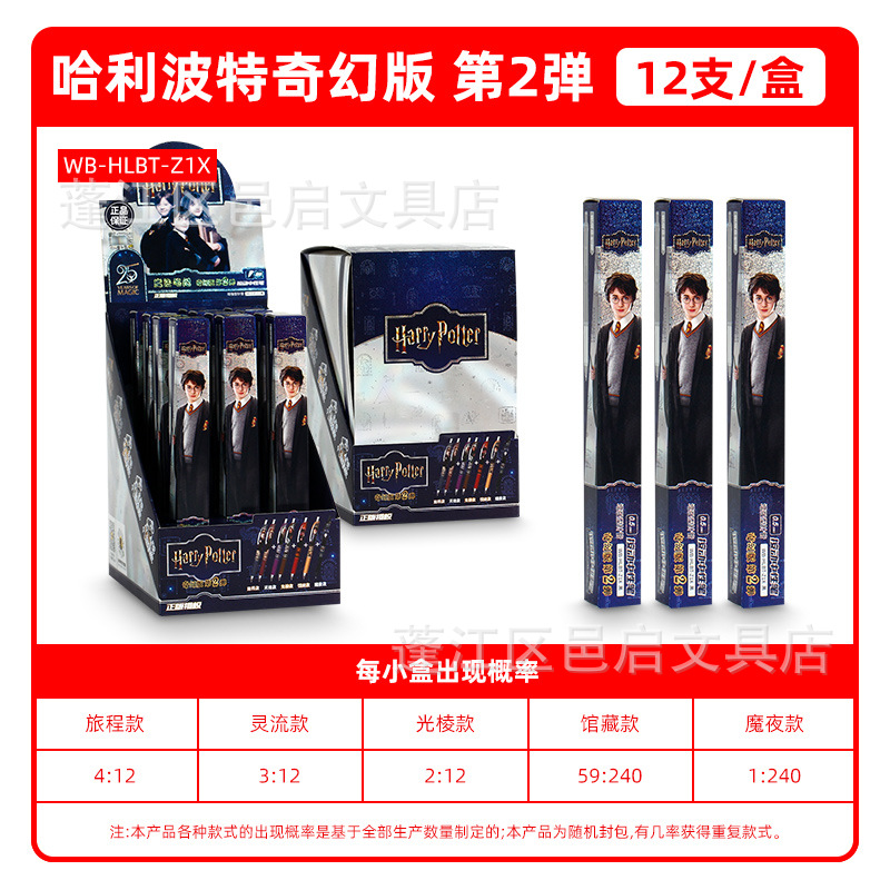Pulpen gel Harry Potter blind box edisi fantasi seri 2 merchandise resmi pulpen hitam yang dapat ditarik