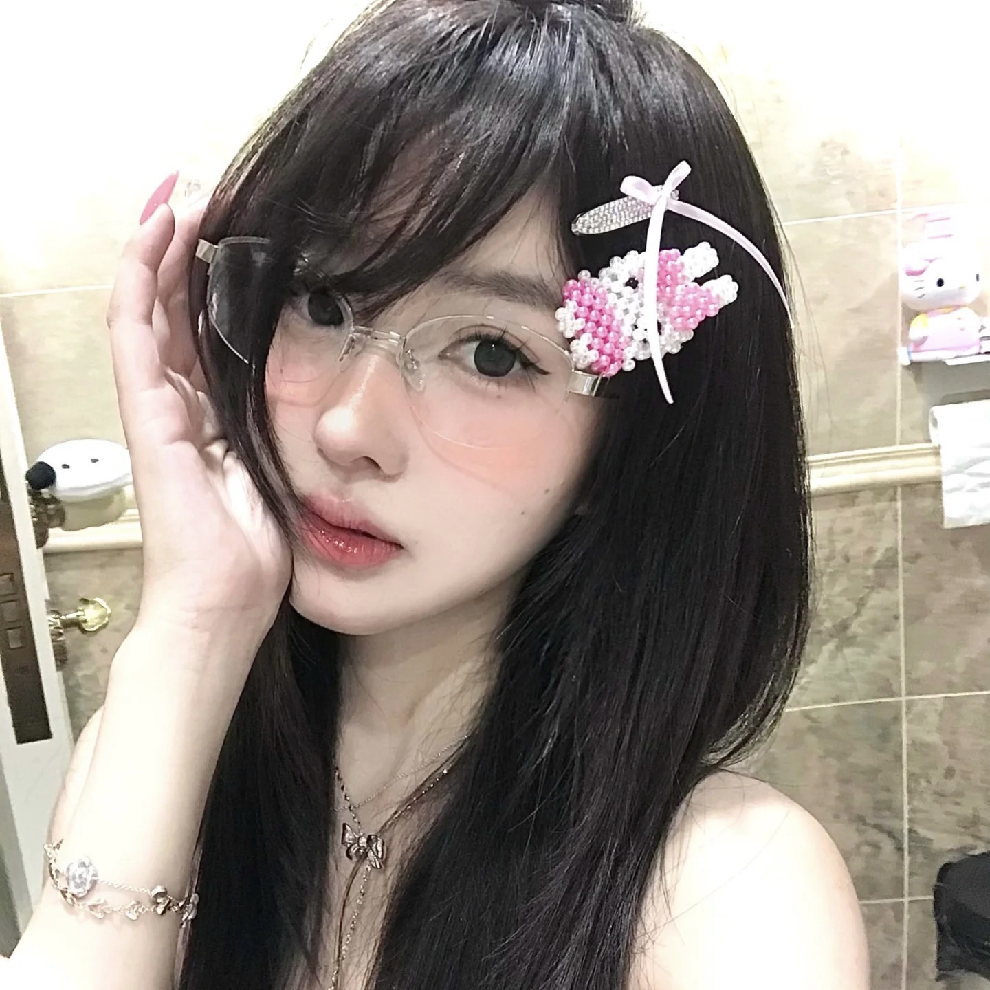 Jepit Rambut Mutiara Piksel Kelinci Miffy Lucu Warna Merah Muda Jepit Sisi Sisi Kupu-Kupu Gaya Gadis Manis Jepit Rambut Kartun Aksesori Rambut