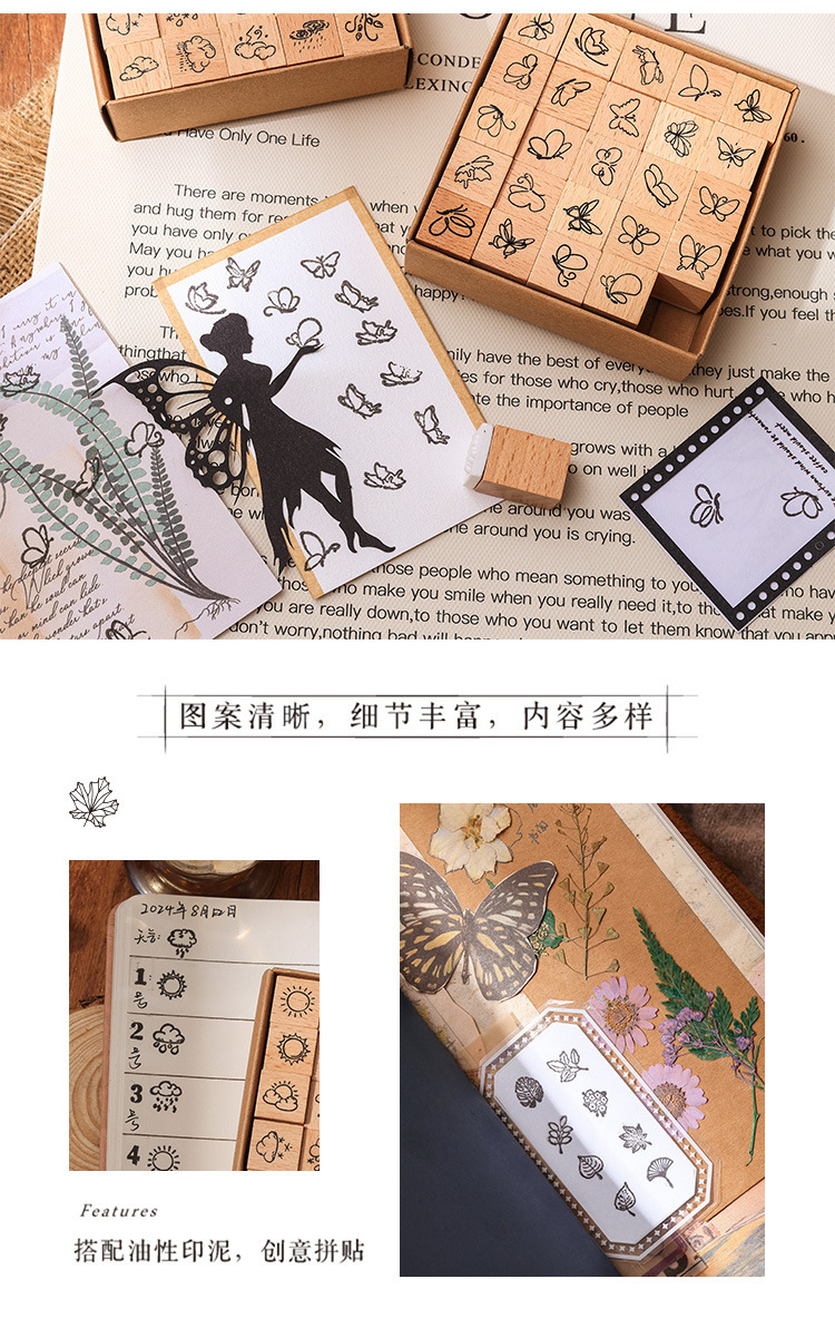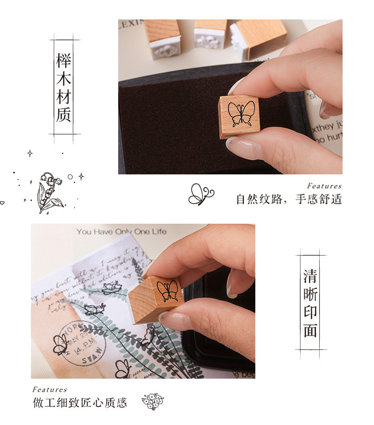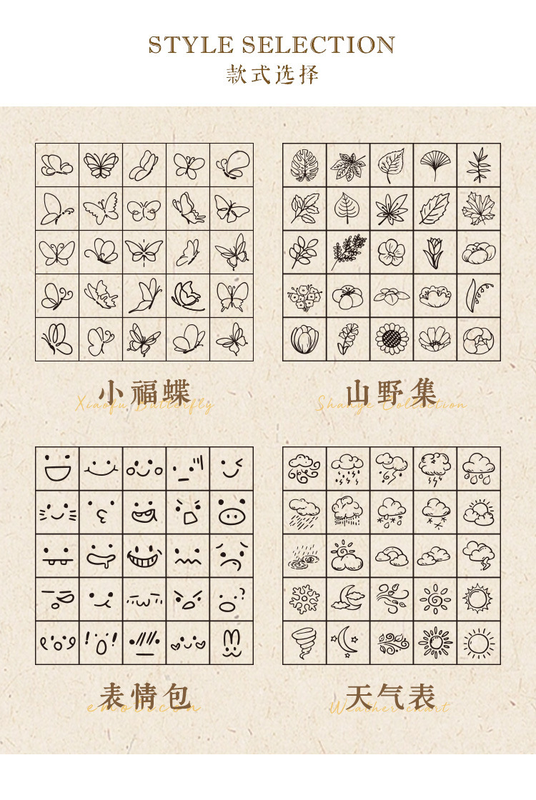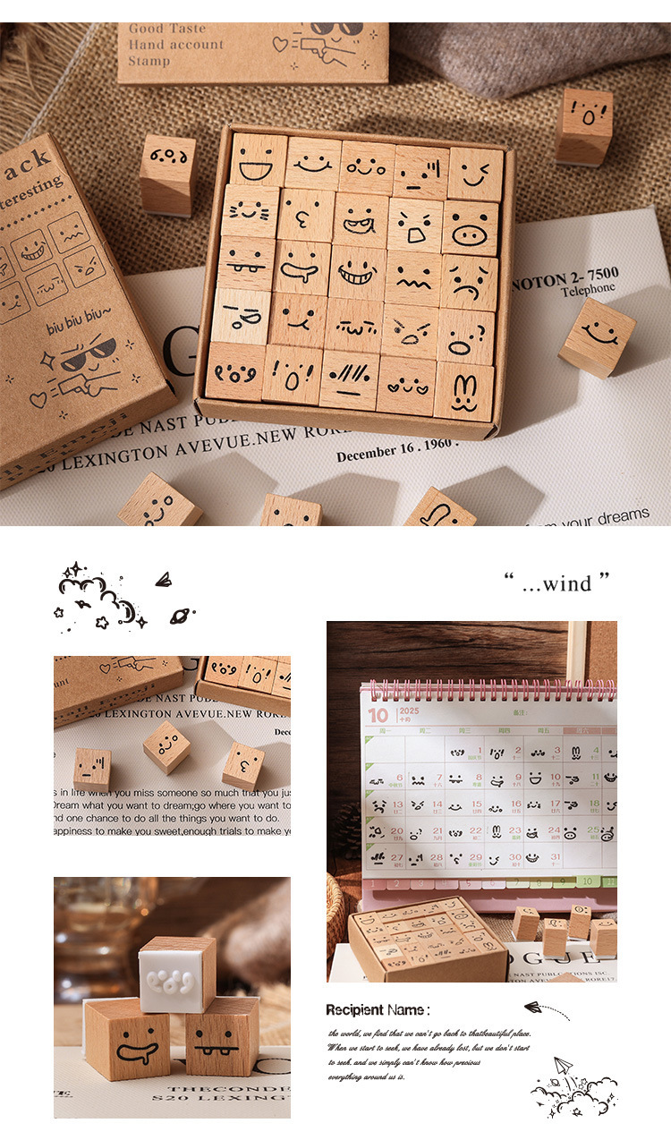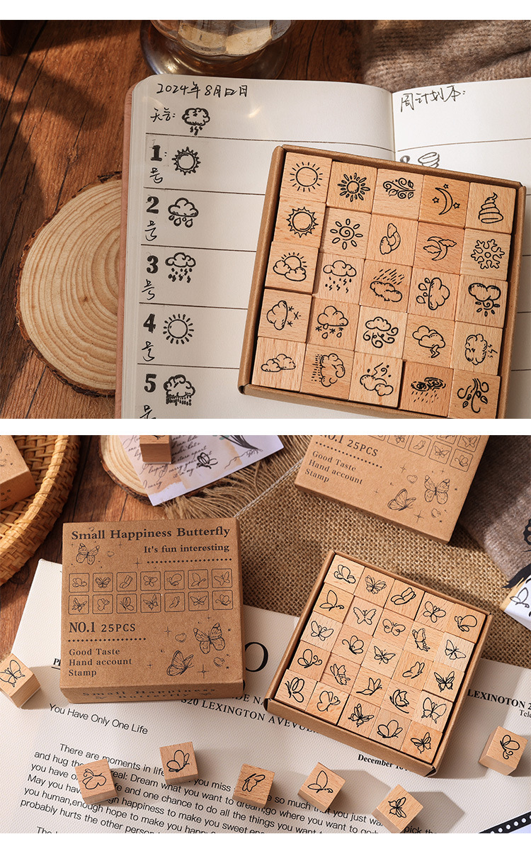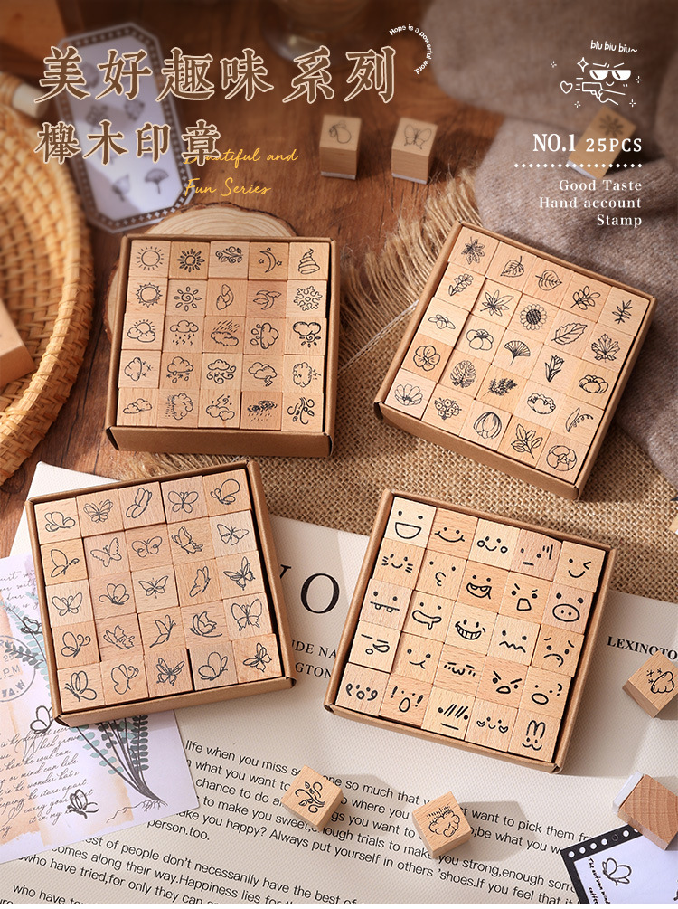 [Cantik dan menyenangkan] Segel buku tangan siswa lintas batas anak-anak ekspresi cuaca kayu beech karet segel kayu