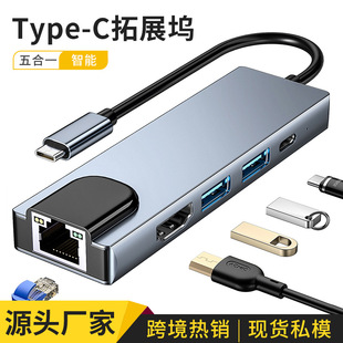五合一type c拓展坞usb手机直播投屏hub网卡集线switch扩展坞跨境