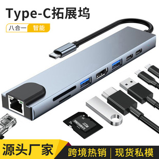 type-c扩展坞八合一HDMI PD多功能拓展坞usb-c hub百兆网口集线器