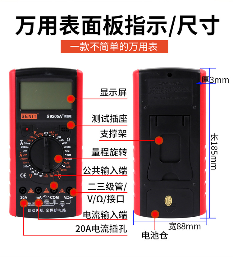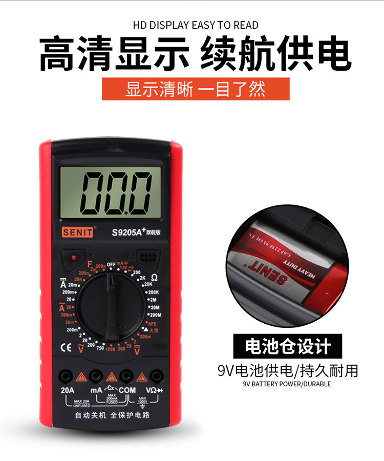 Produsen S9205A multimeter tampilan digital mati otomatis multimeter presisi tinggi meteran antiapi digital