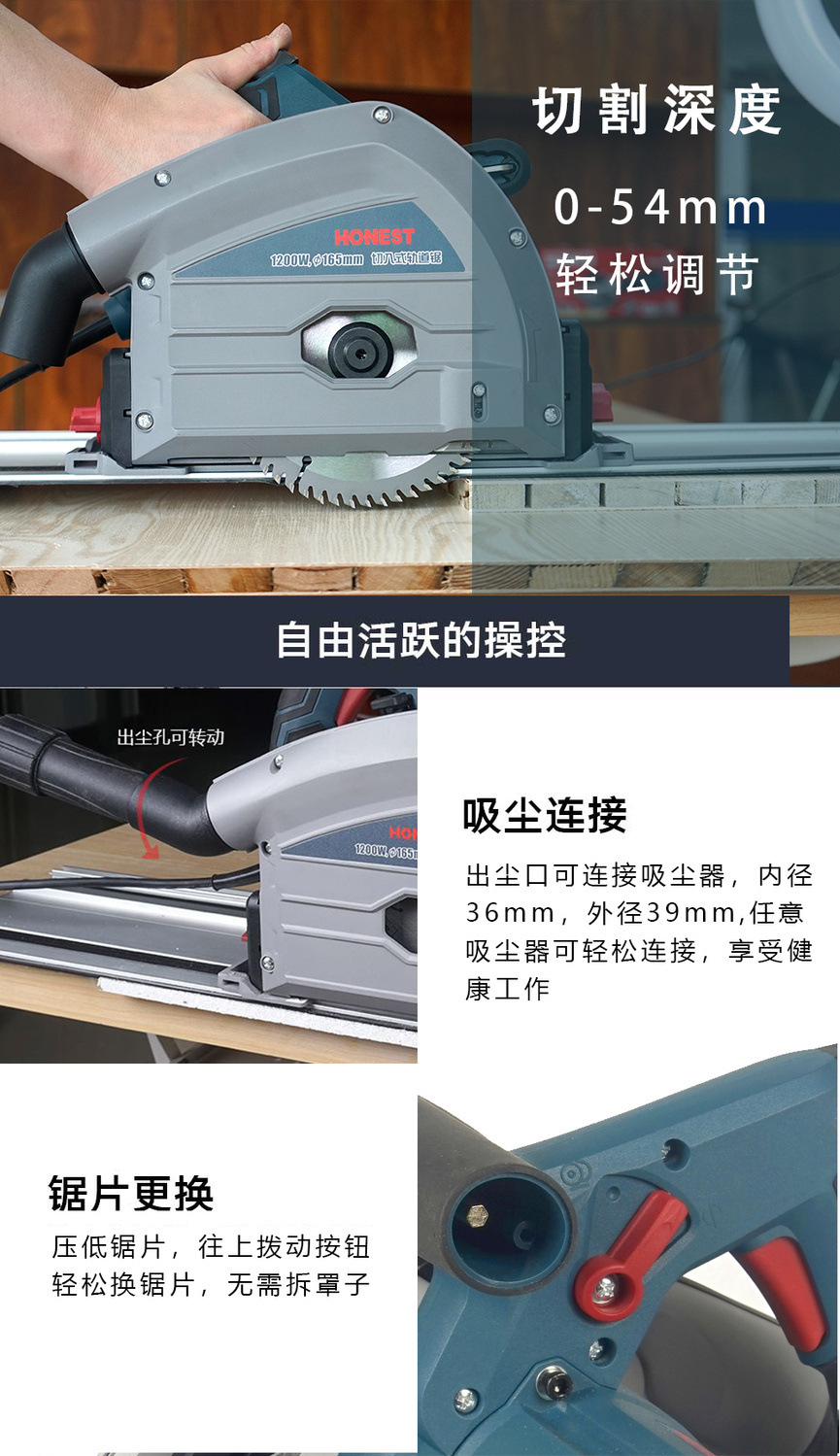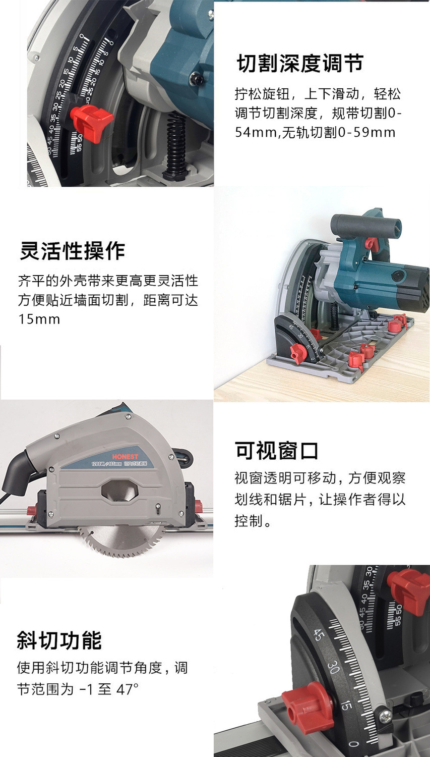 Gergaji bundar elektrik universal pemotong jalur daya tinggi gergaji rel kayu portabel mesin pemotong gergaji panel ekologi