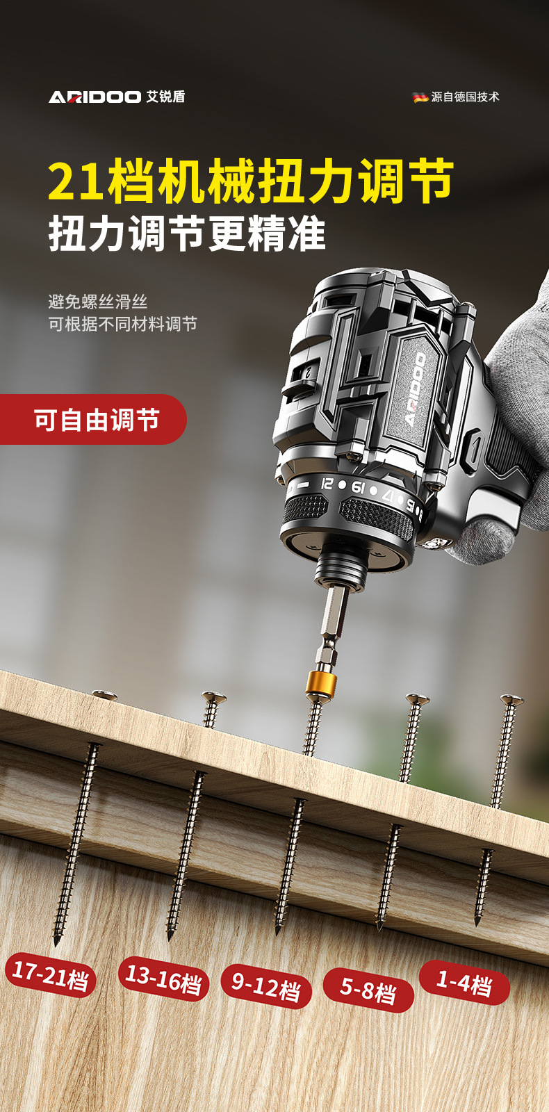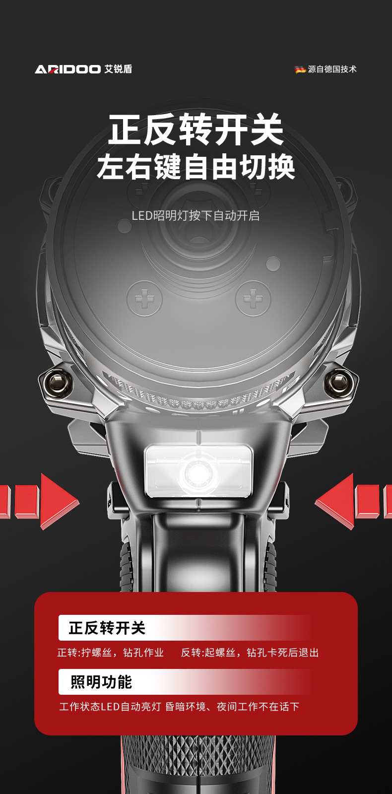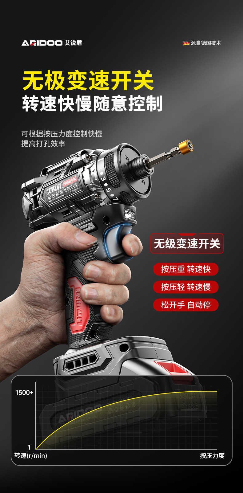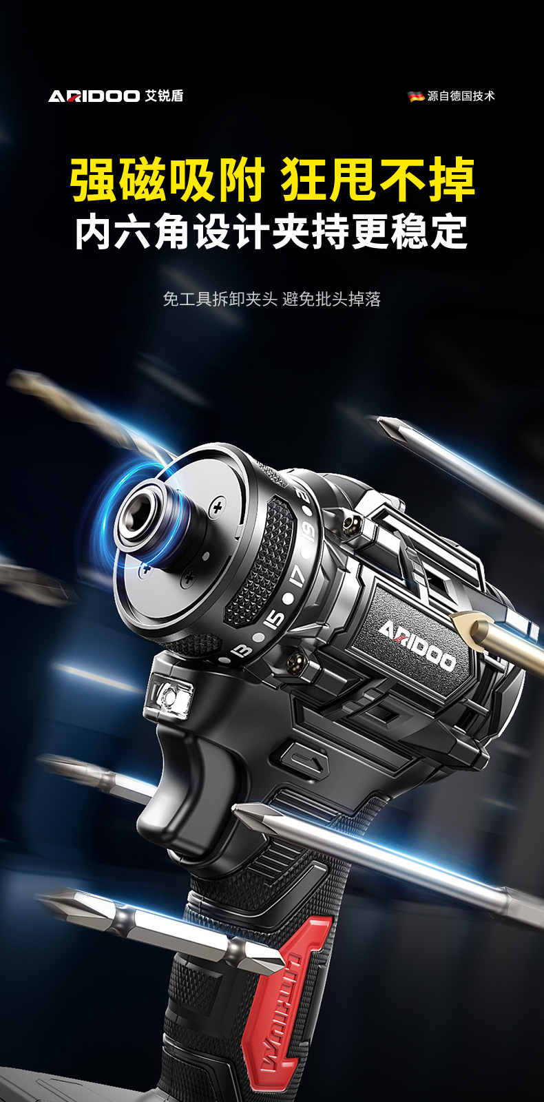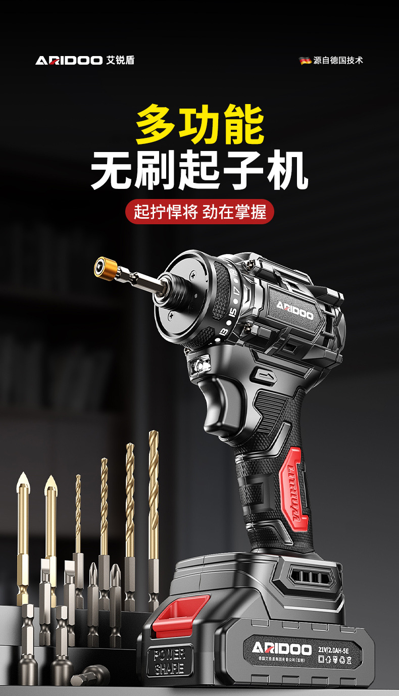 德国无刷起子机多功能手电钻电动螺丝刀充电式螺丝批大扭力电起子