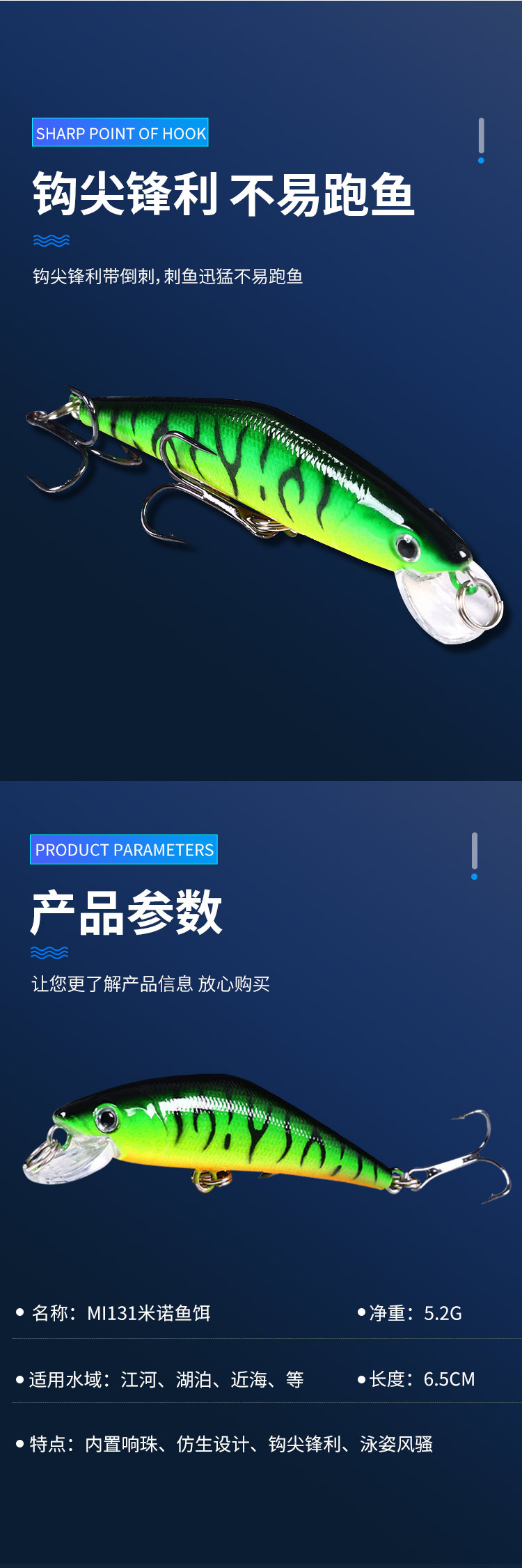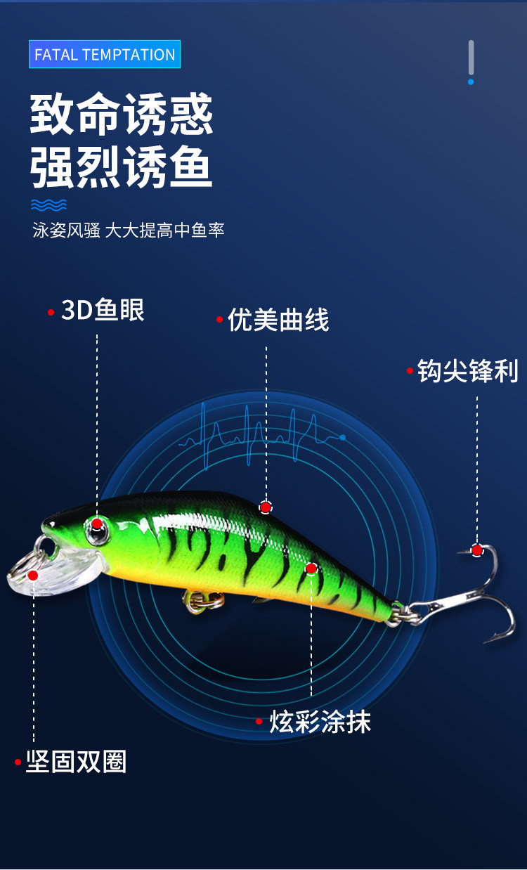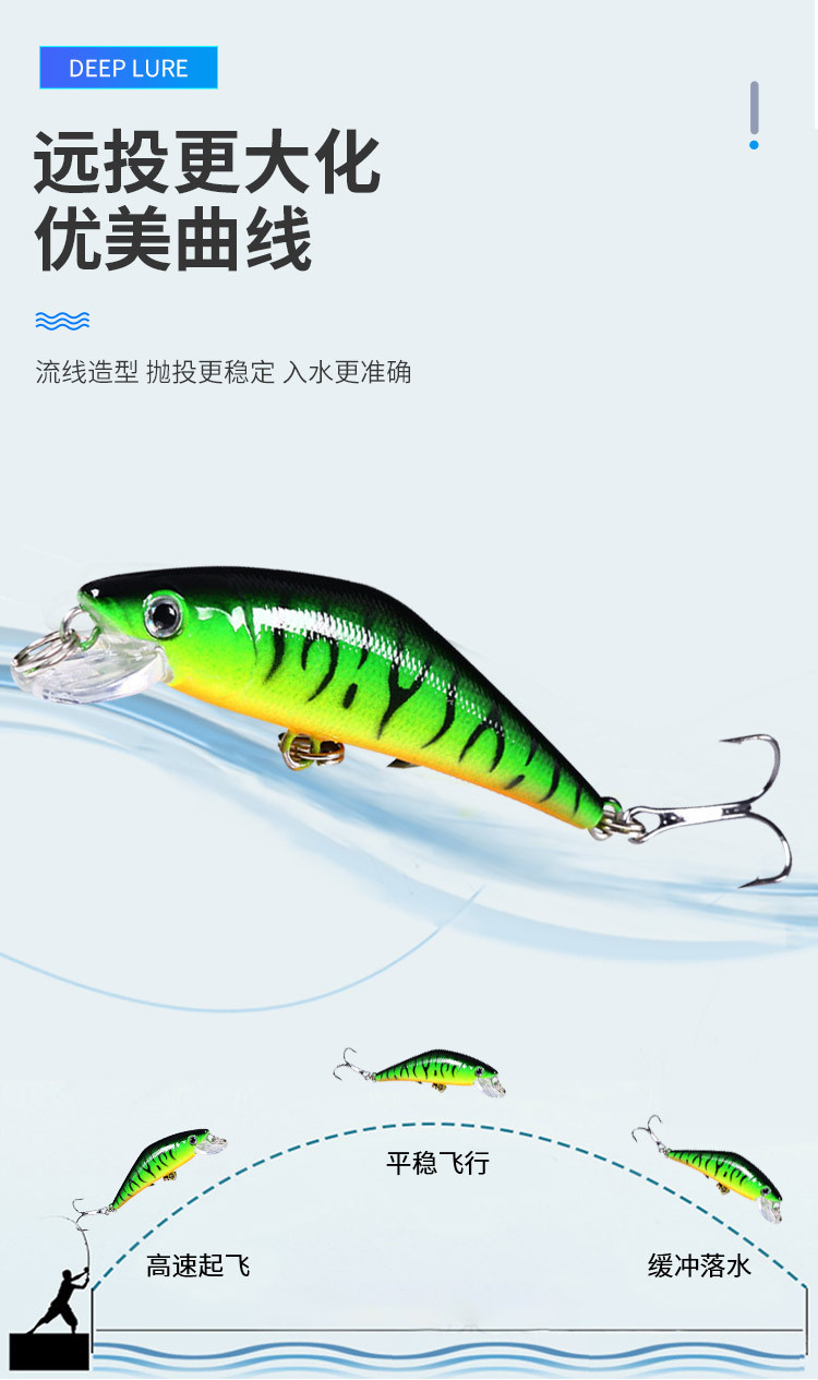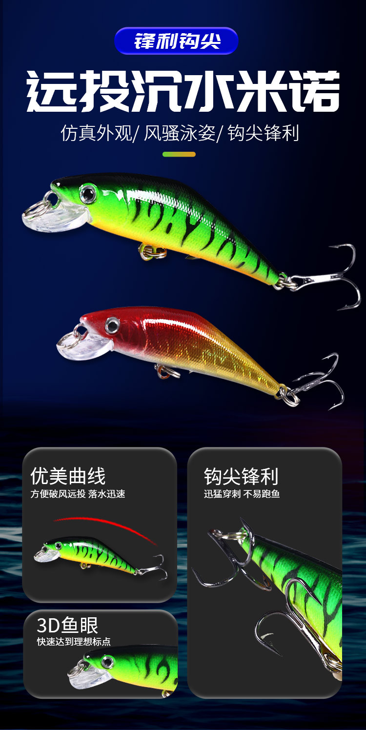 新款远投沉水远投米诺假饵6.8cm5.2g路亚饵钓鱼 鱼饵渔具批发