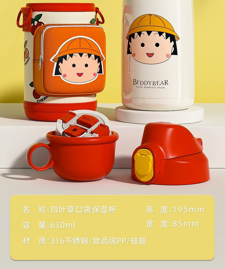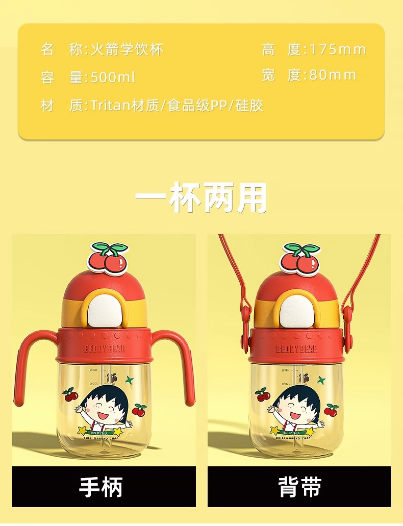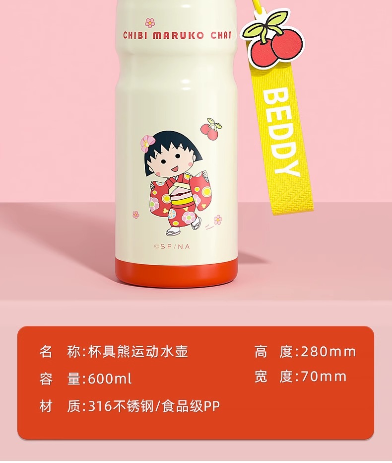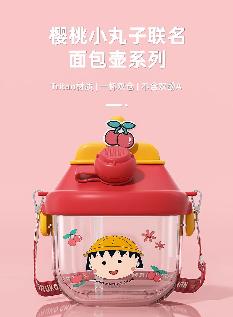 Cherry Maruko nama gabungan cangkir beruang anak-anak perempuan termos cangkir dewasa belajar minum sedotan air perut besar cangkir pot siswa