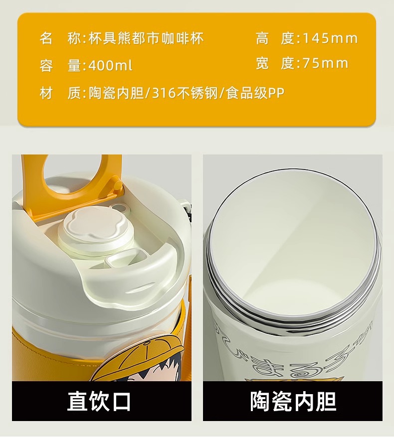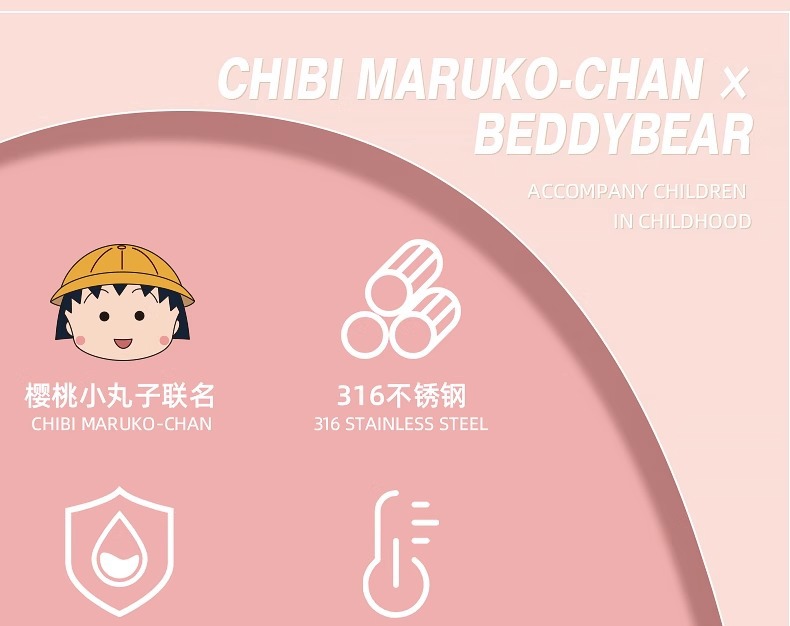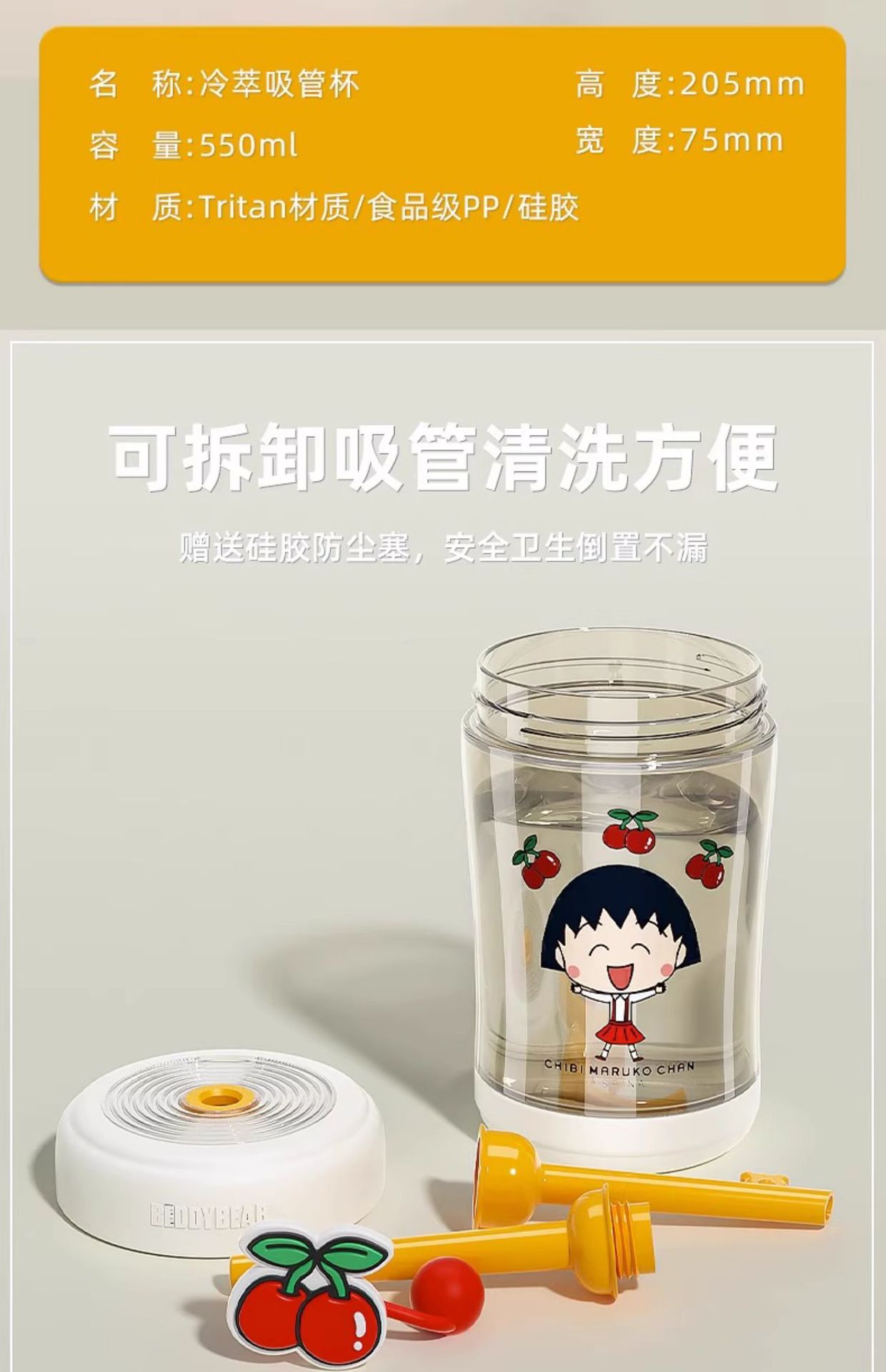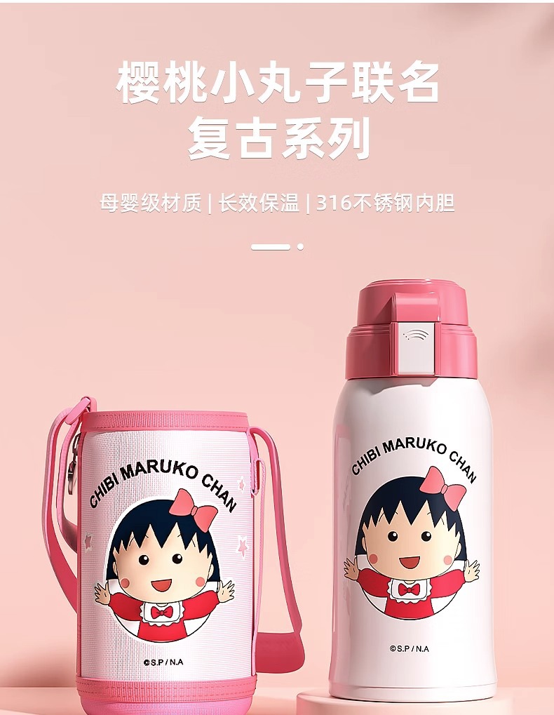 Cherry Maruko nama gabungan cangkir beruang anak-anak perempuan termos cangkir dewasa belajar minum sedotan air perut besar cangkir pot siswa