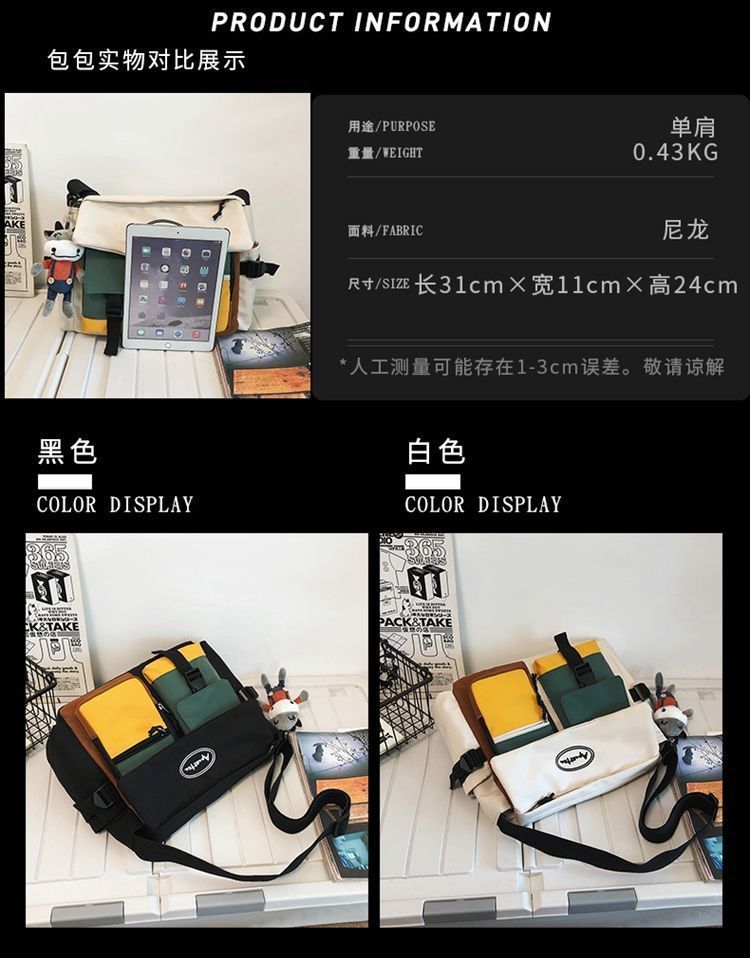 Tas kurir gaya nasional Pria Wanita, tas kurir kasual Jepang, tas ransel kapasitas besar, tas bahu ins semua cocok mode pria dan wanita
