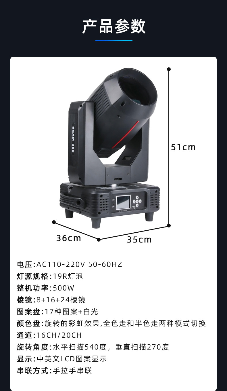 舞台摇头380w光束灯婚庆演出灯光设备全套慢摇酒吧射灯旋转图案