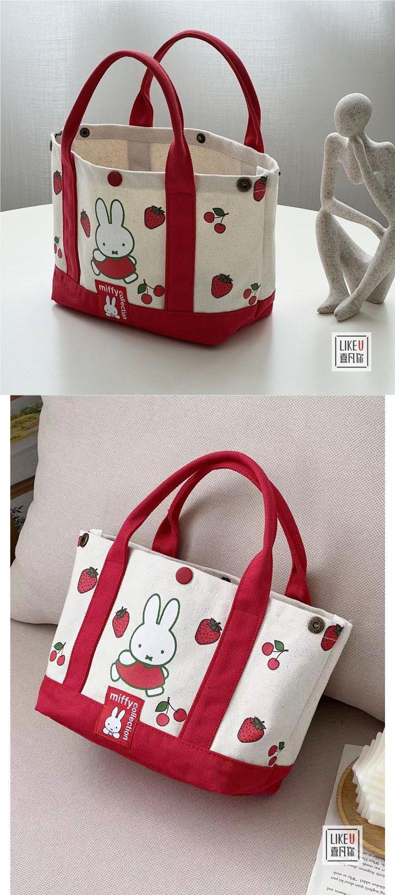 Miffy Kelinci Miffy Tas Jinjing Kain Kanvas Berbentuk Stroberi Ekstra Tebal Tas Makan Siang Mama Tas Bahu Tunggal Keluar