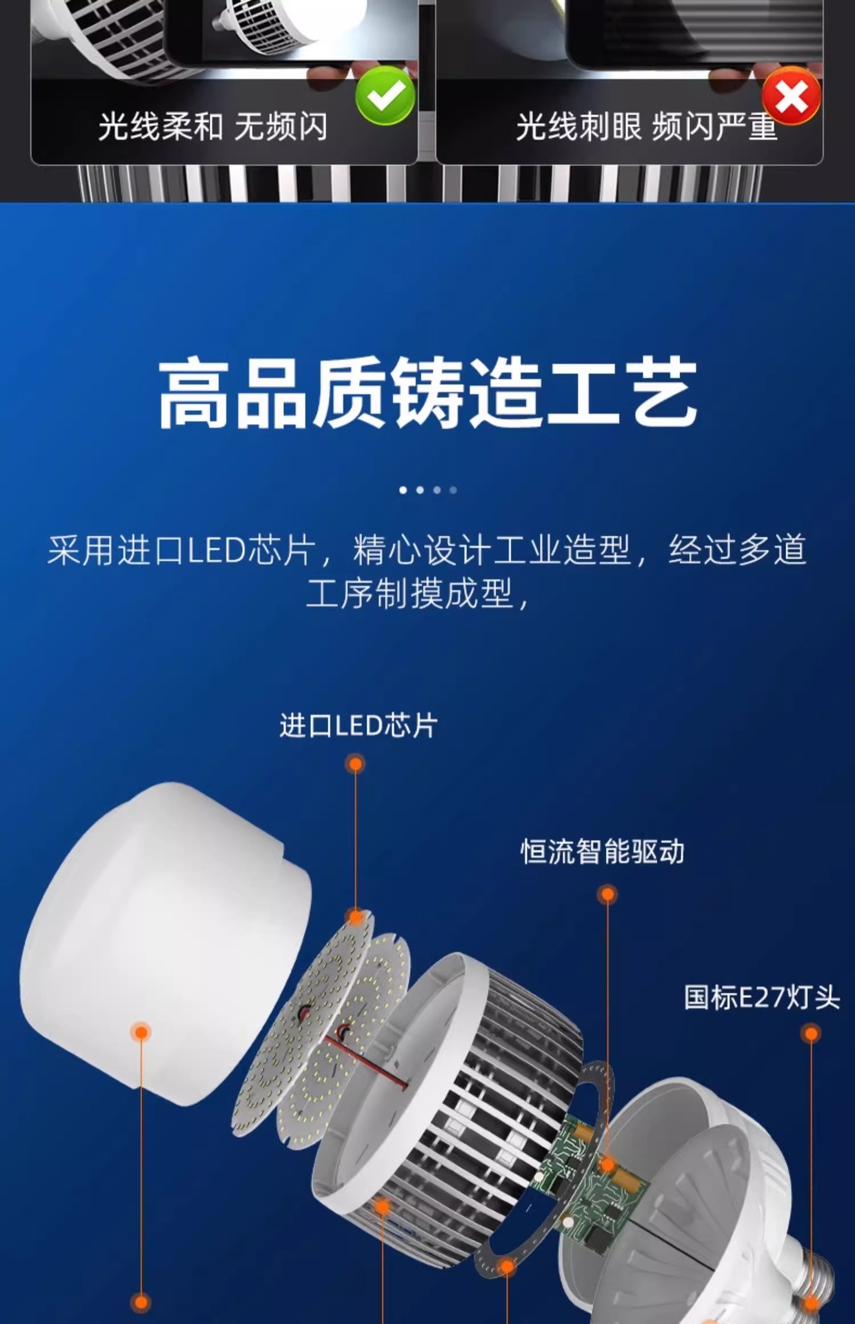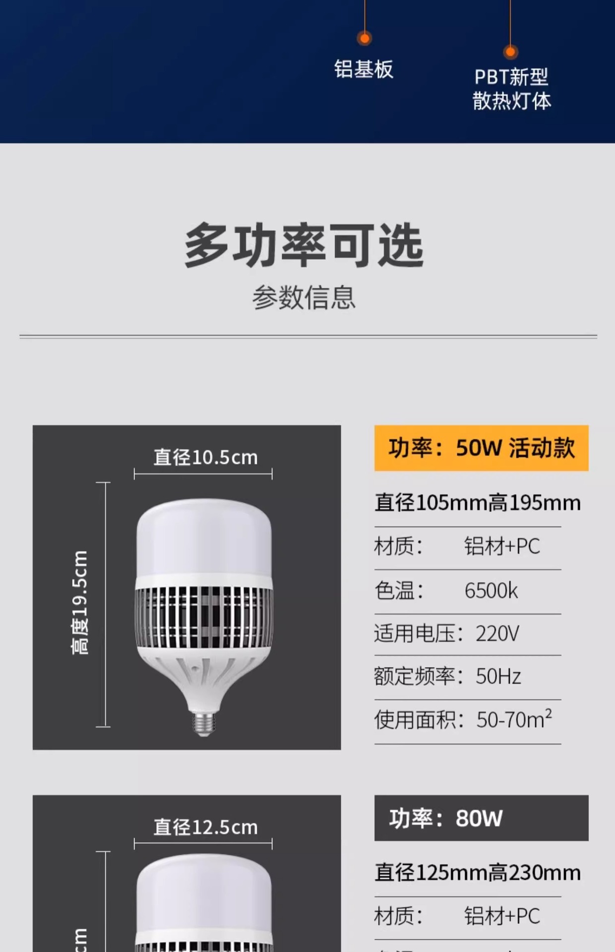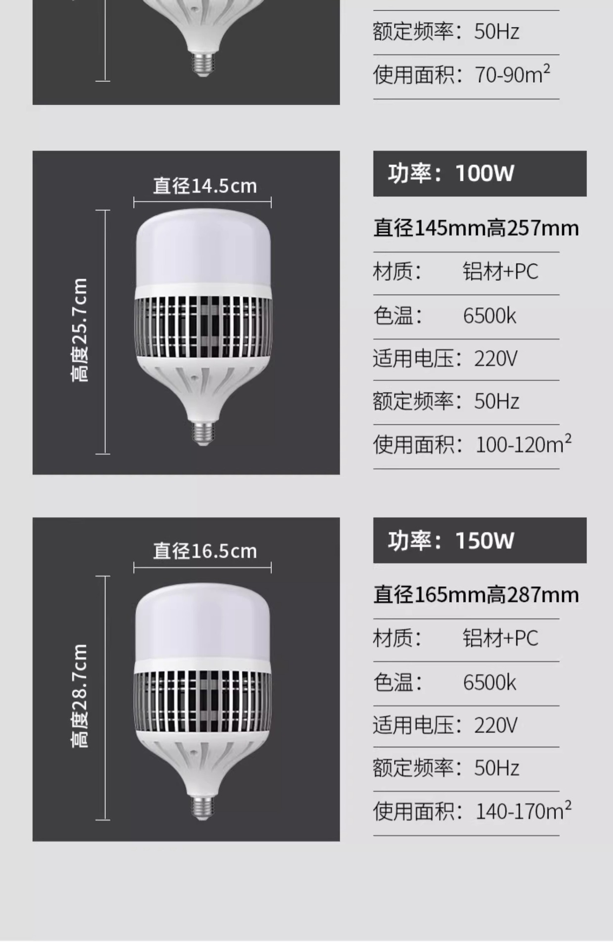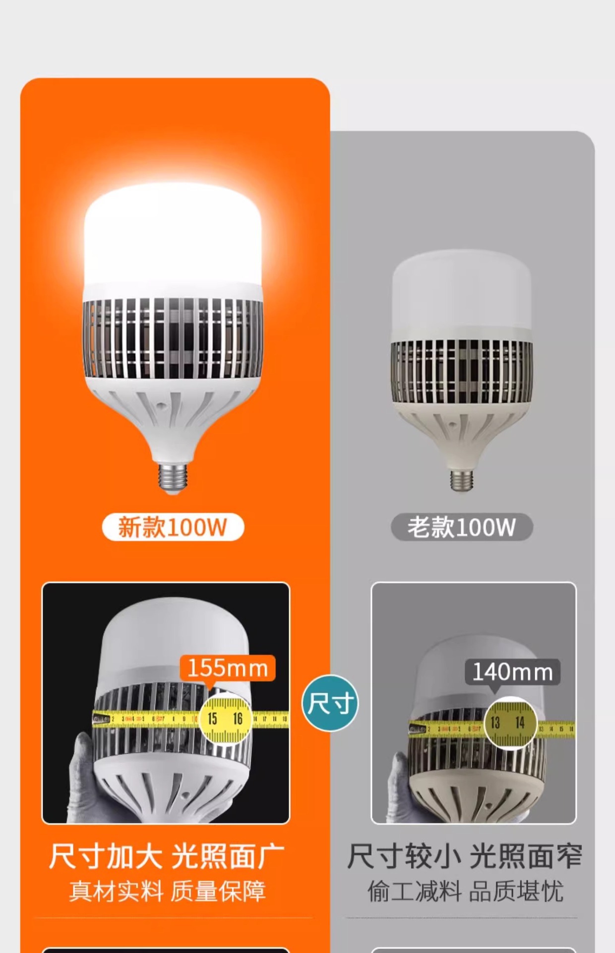 Lampu LED daya tinggi super terang, lampu pencahayaan bengkel, lokasi konstruksi, lampu hemat energi rumah tangga 100W150W sekrup E27 super terang