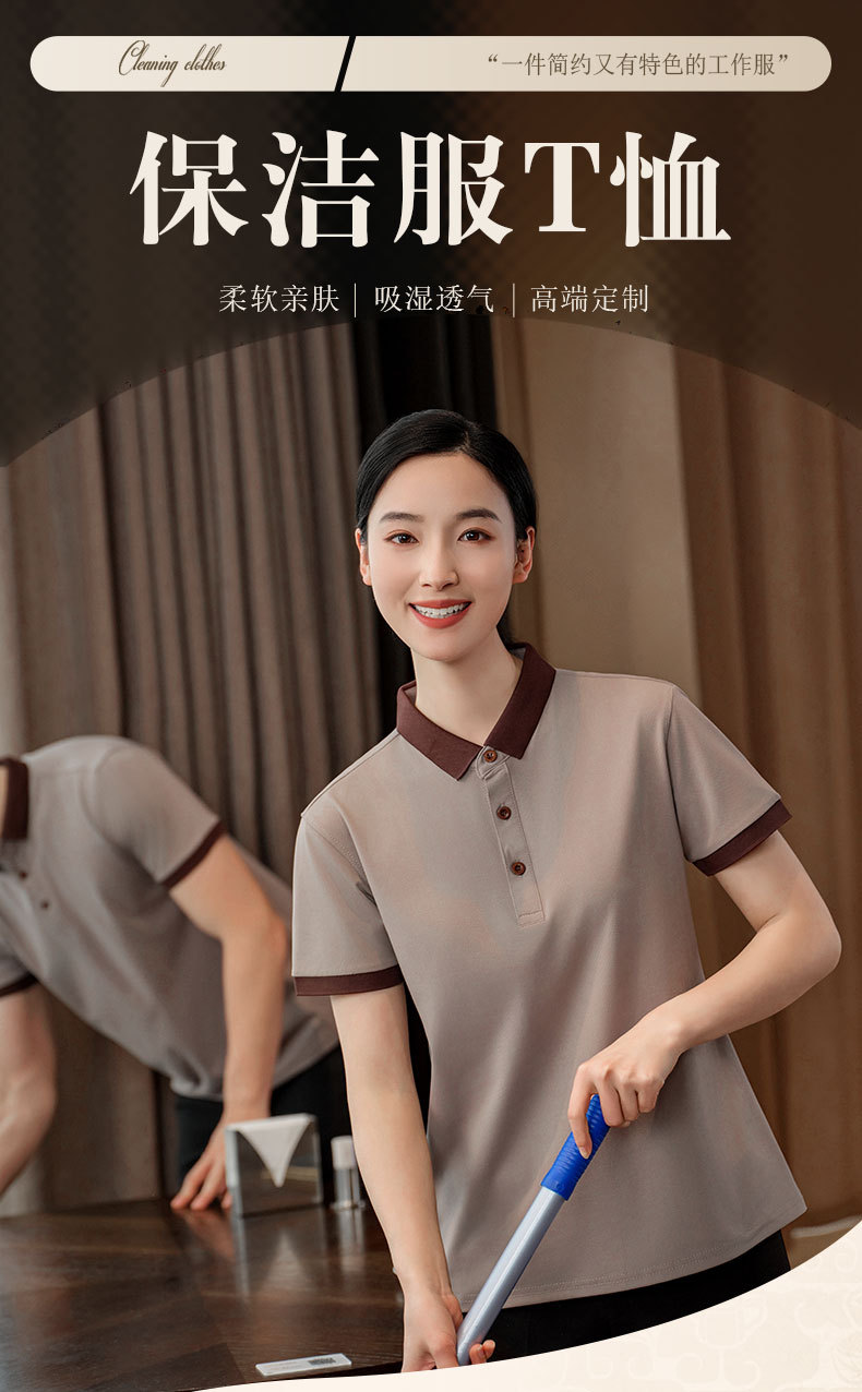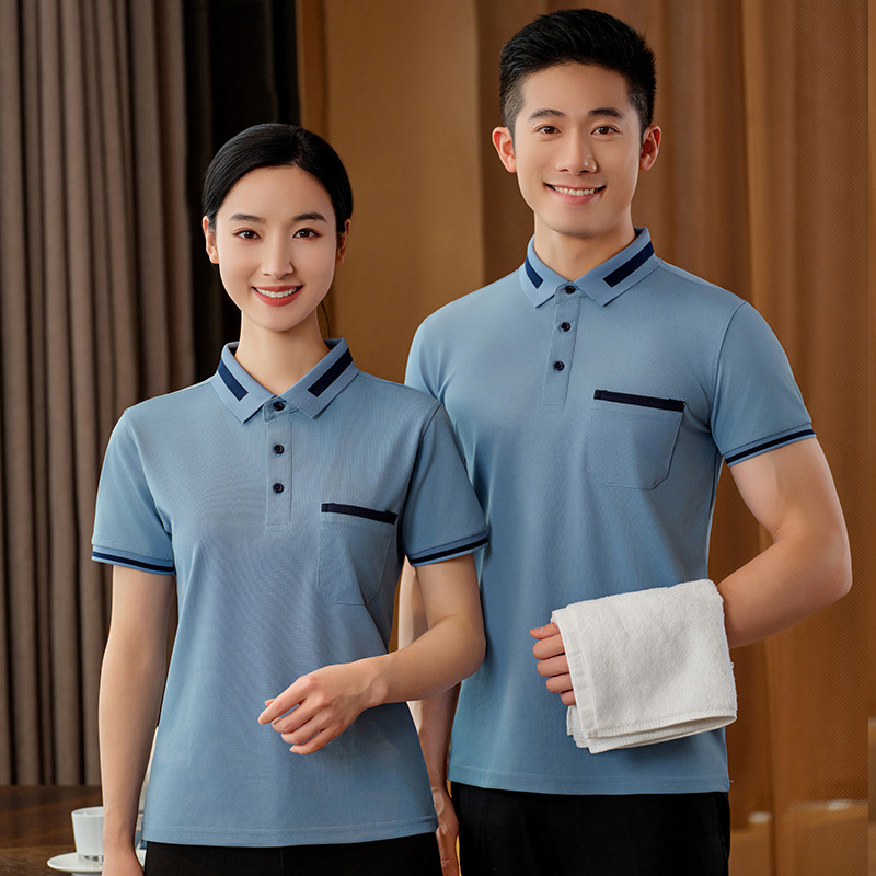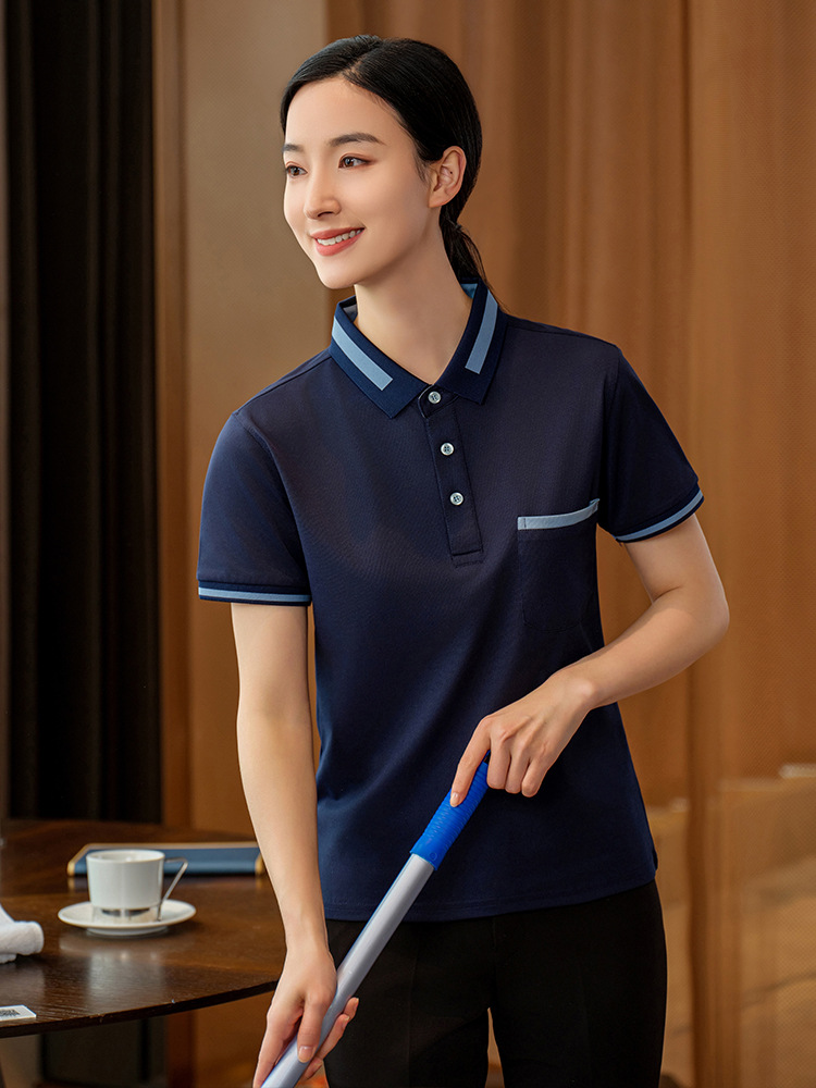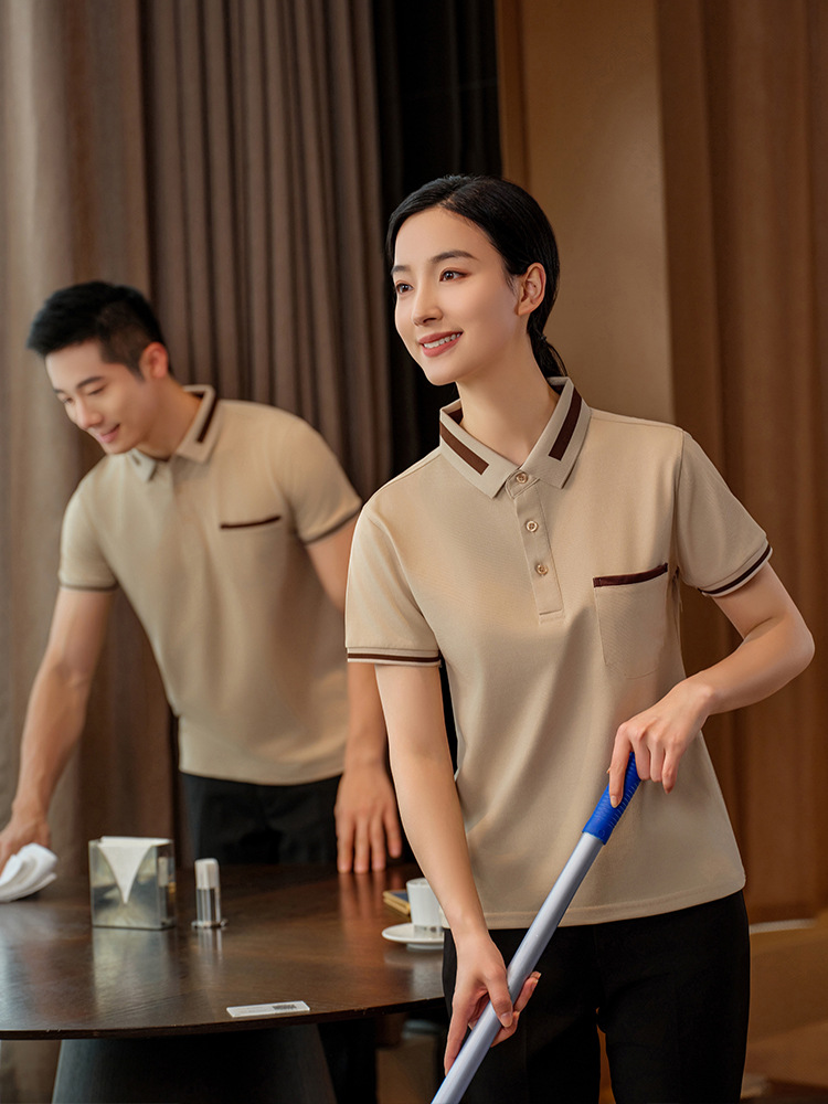 Pakaian kerja pembersih wanita lengan pendek, seragam musim panas pria, properti ruang tamu hotel, Pembersih sanitasi, lengan pendek