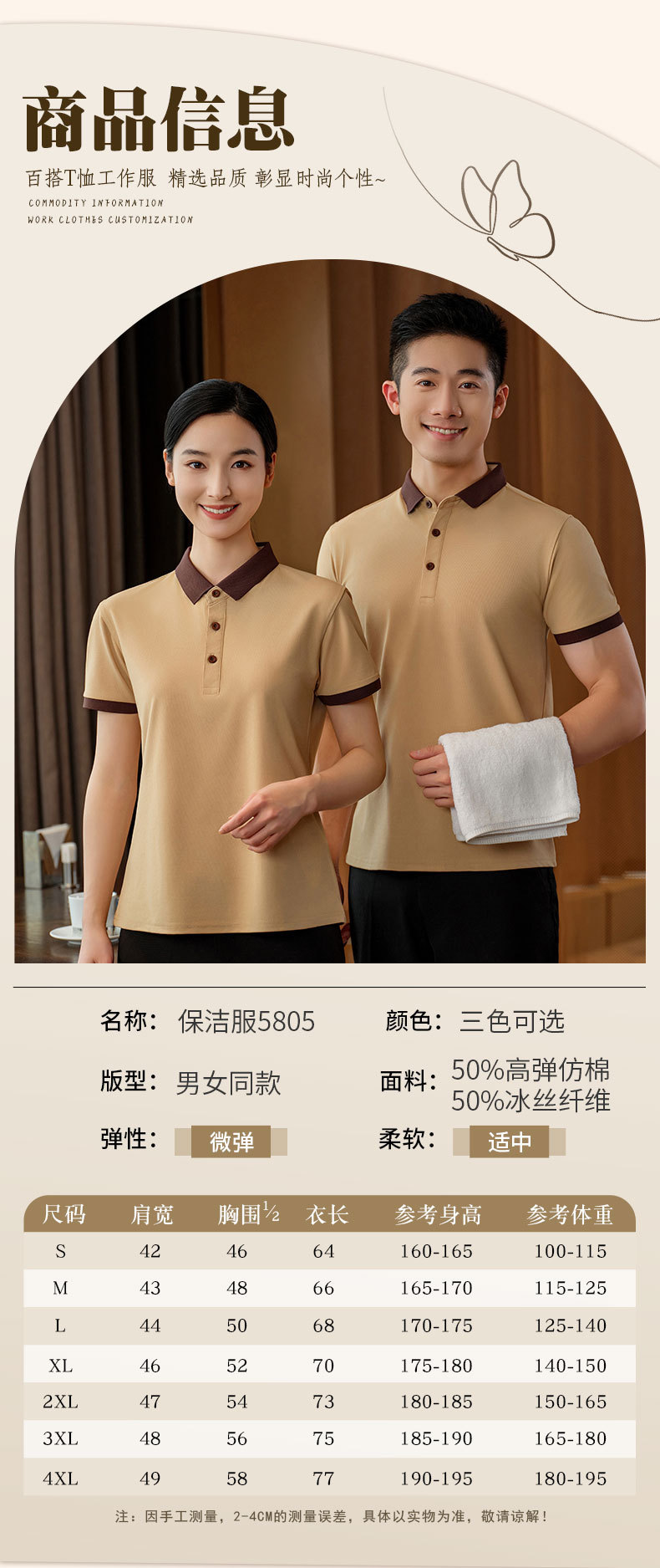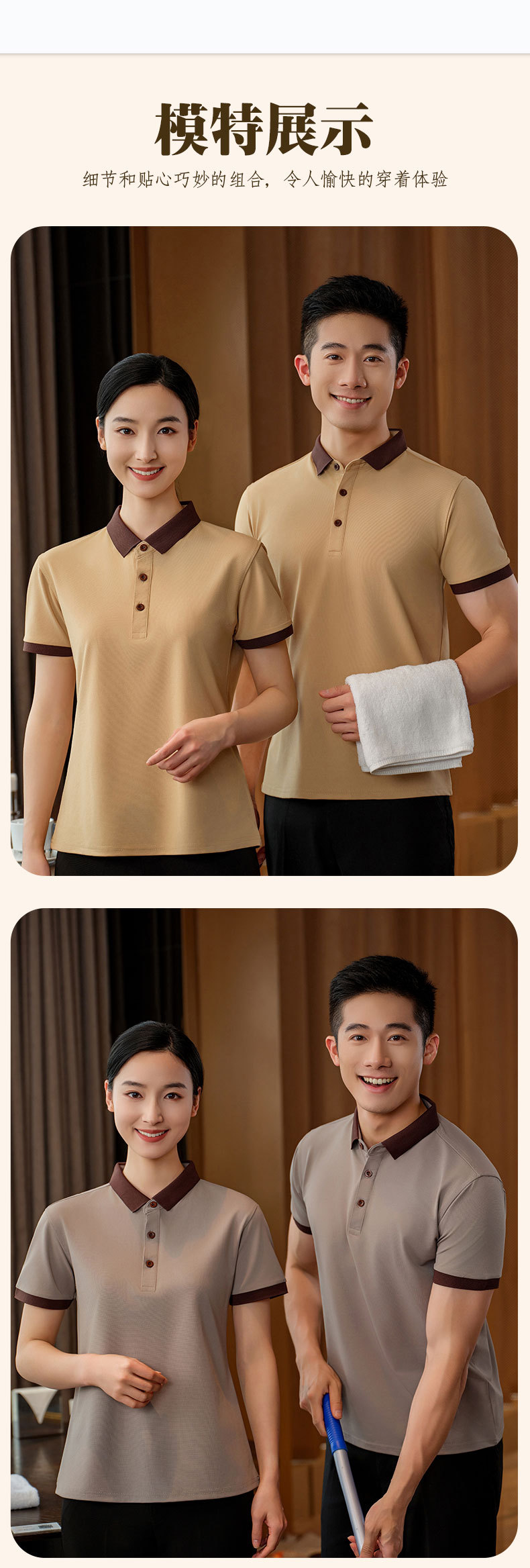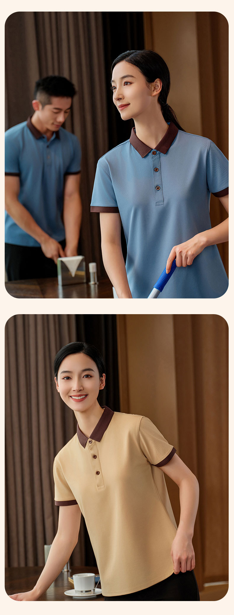 Pakaian kerja pembersih wanita lengan pendek, seragam musim panas pria, properti ruang tamu hotel, Pembersih sanitasi, lengan pendek