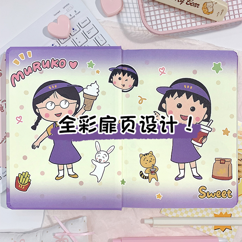 麦当当小女孩a5彩页笔记本硬壳本卡通日记本学生樱桃小丸子彩页本