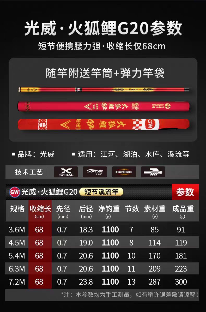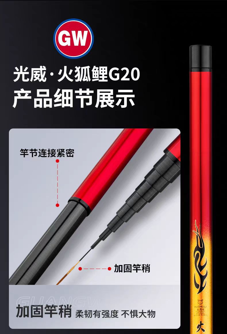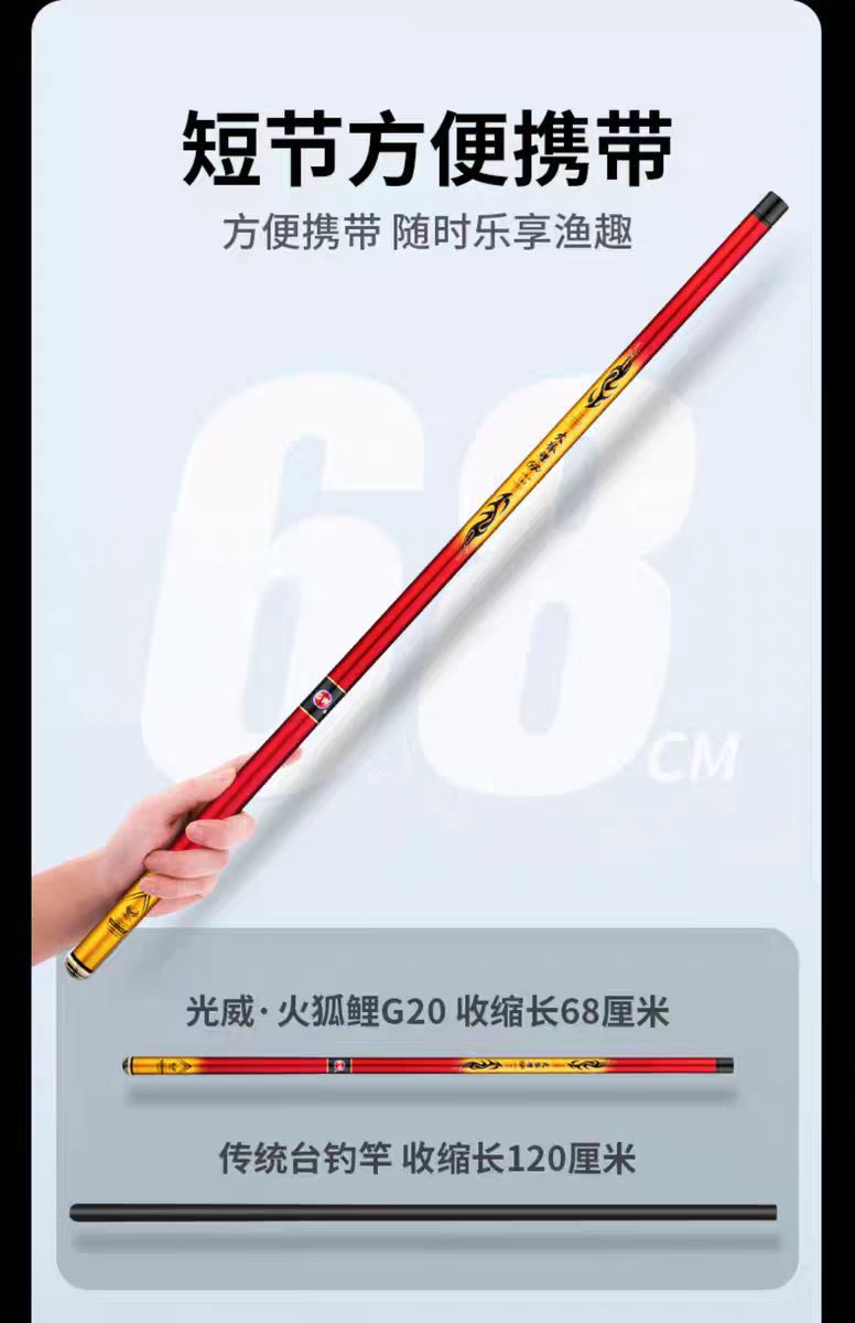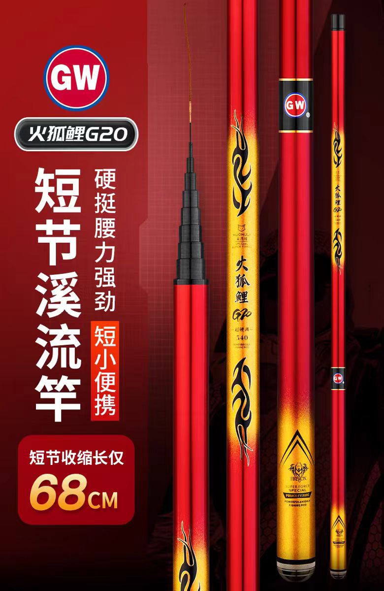 Gwangwei Fire Fox G20 Batang Aliran Pendek Portabel Karbon Memancing Super Ringan Super Keras Batang Tangan