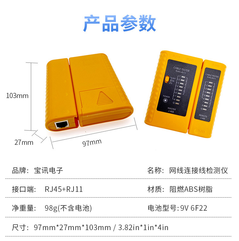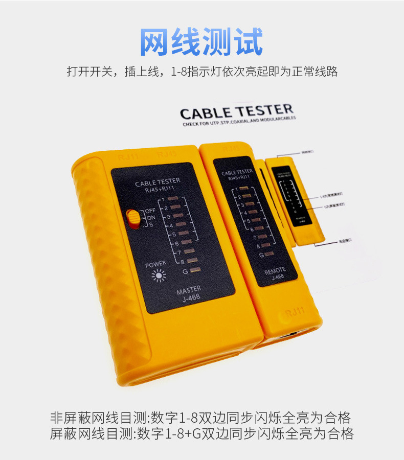 Penguji kabel jaringan multifungsi, penguji kabel jaringan profesional, pengujian jalur telepon, sinyal broadband on/off, instrumen pengujian jaringan